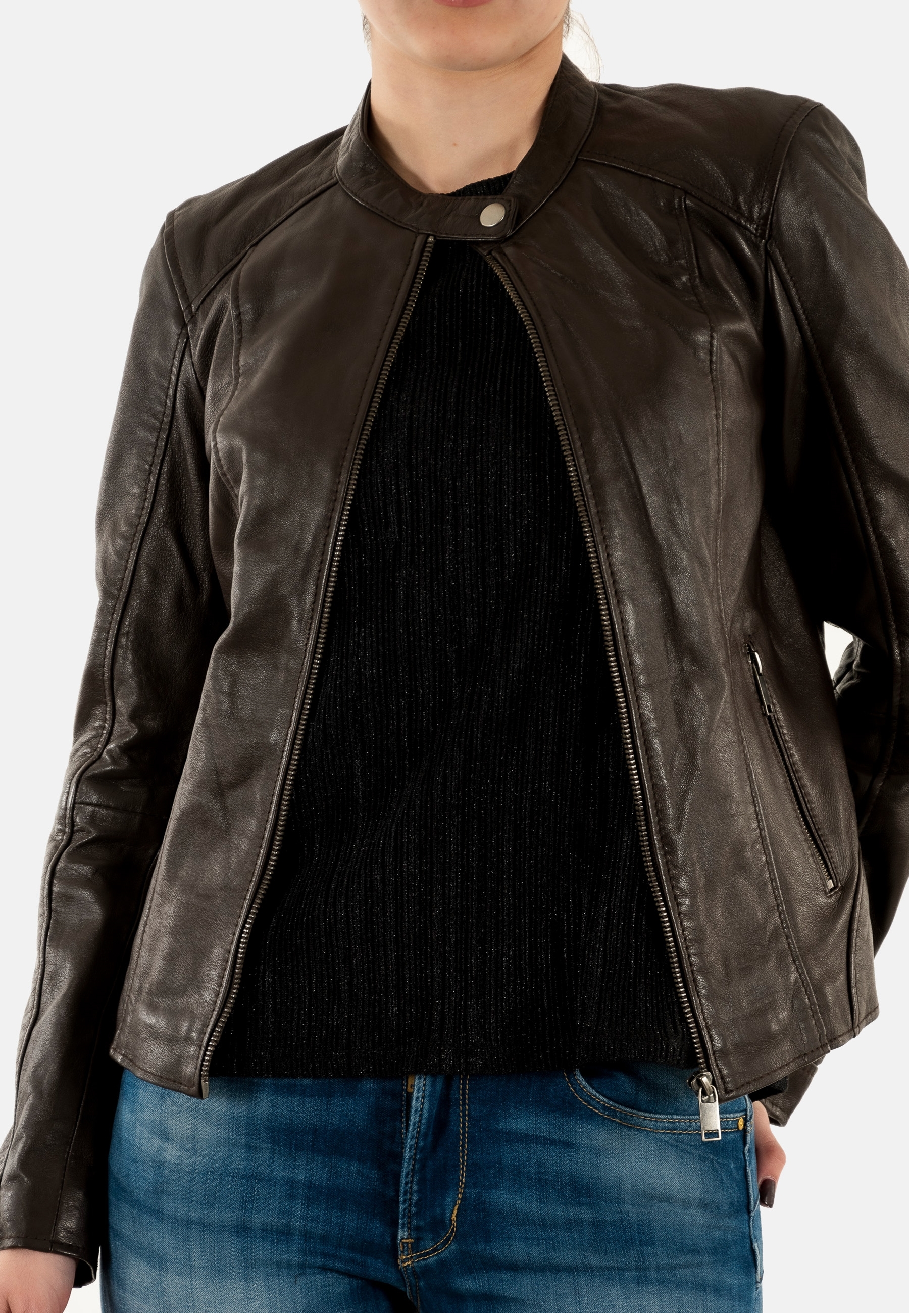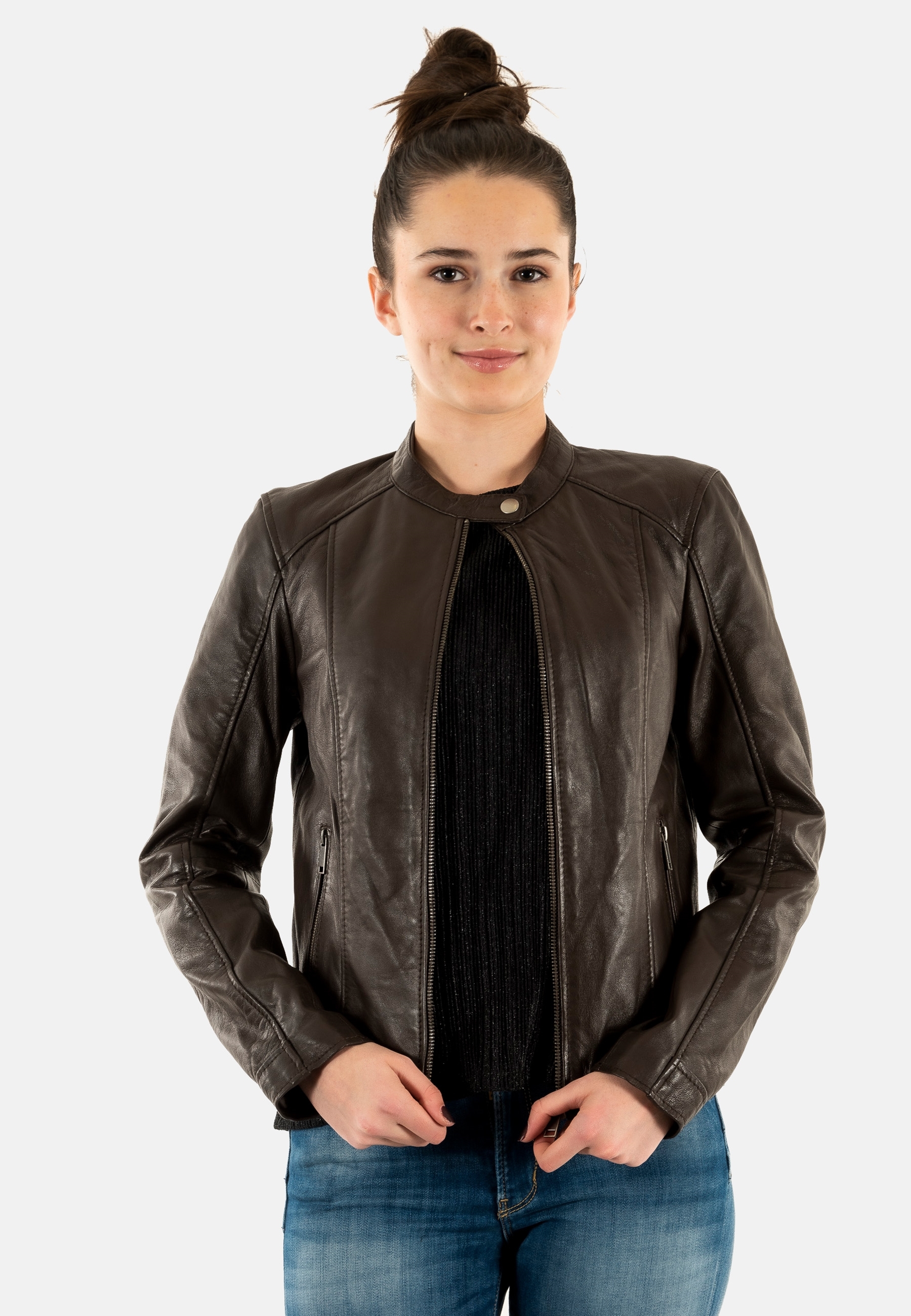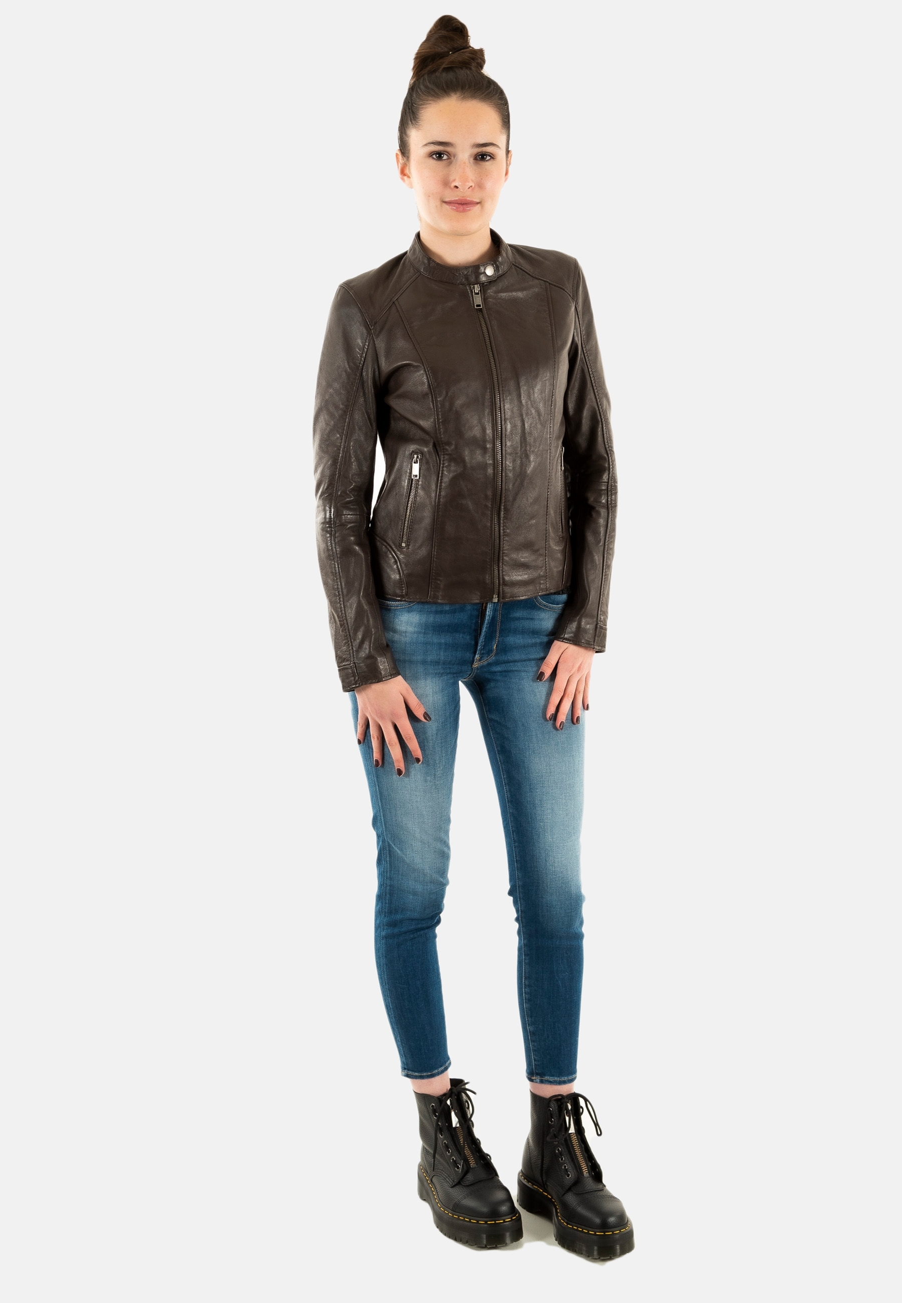 Blousons cuir portman porvaleriana dark brown