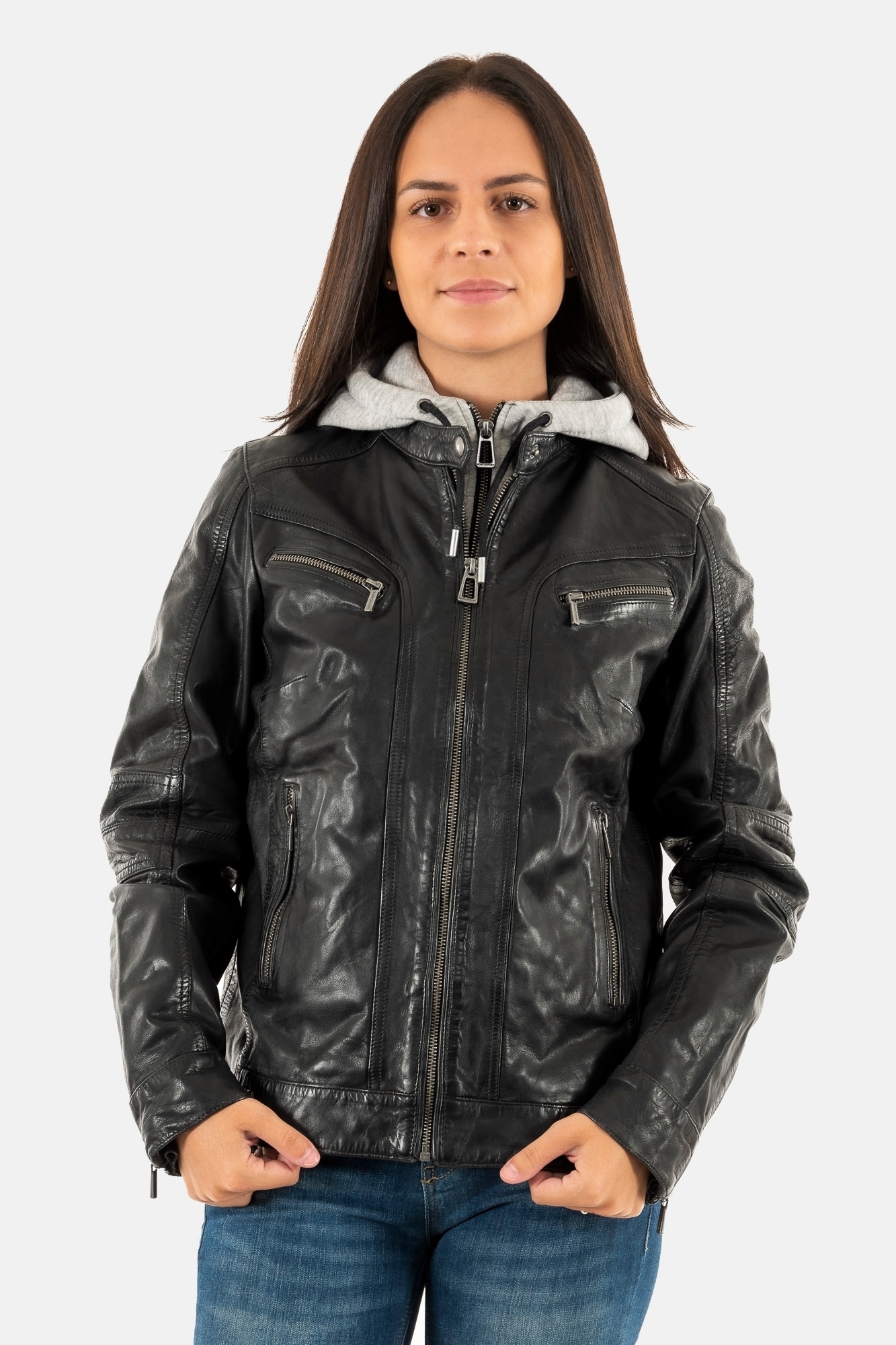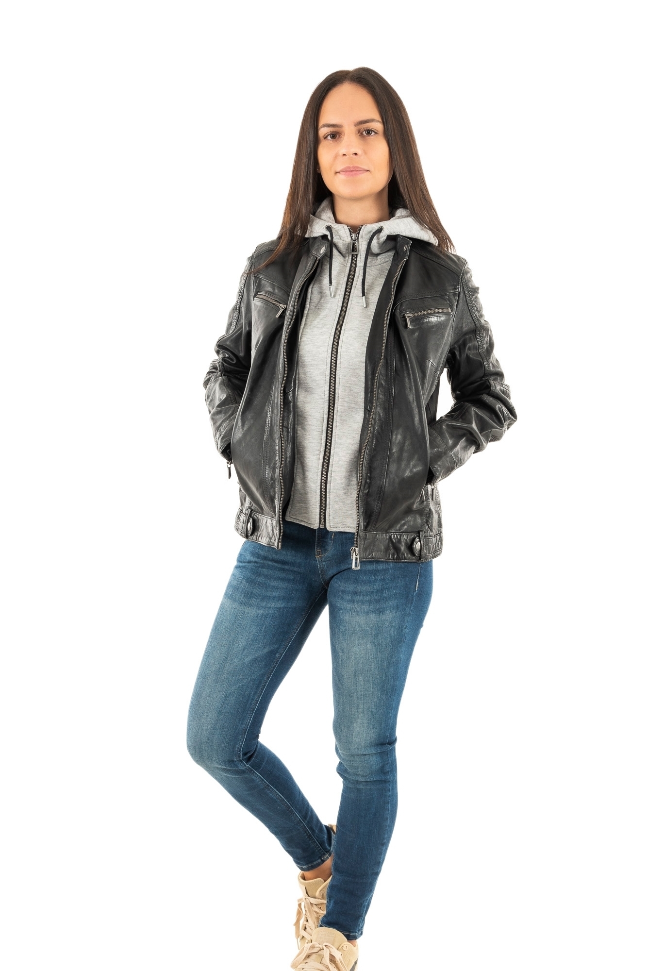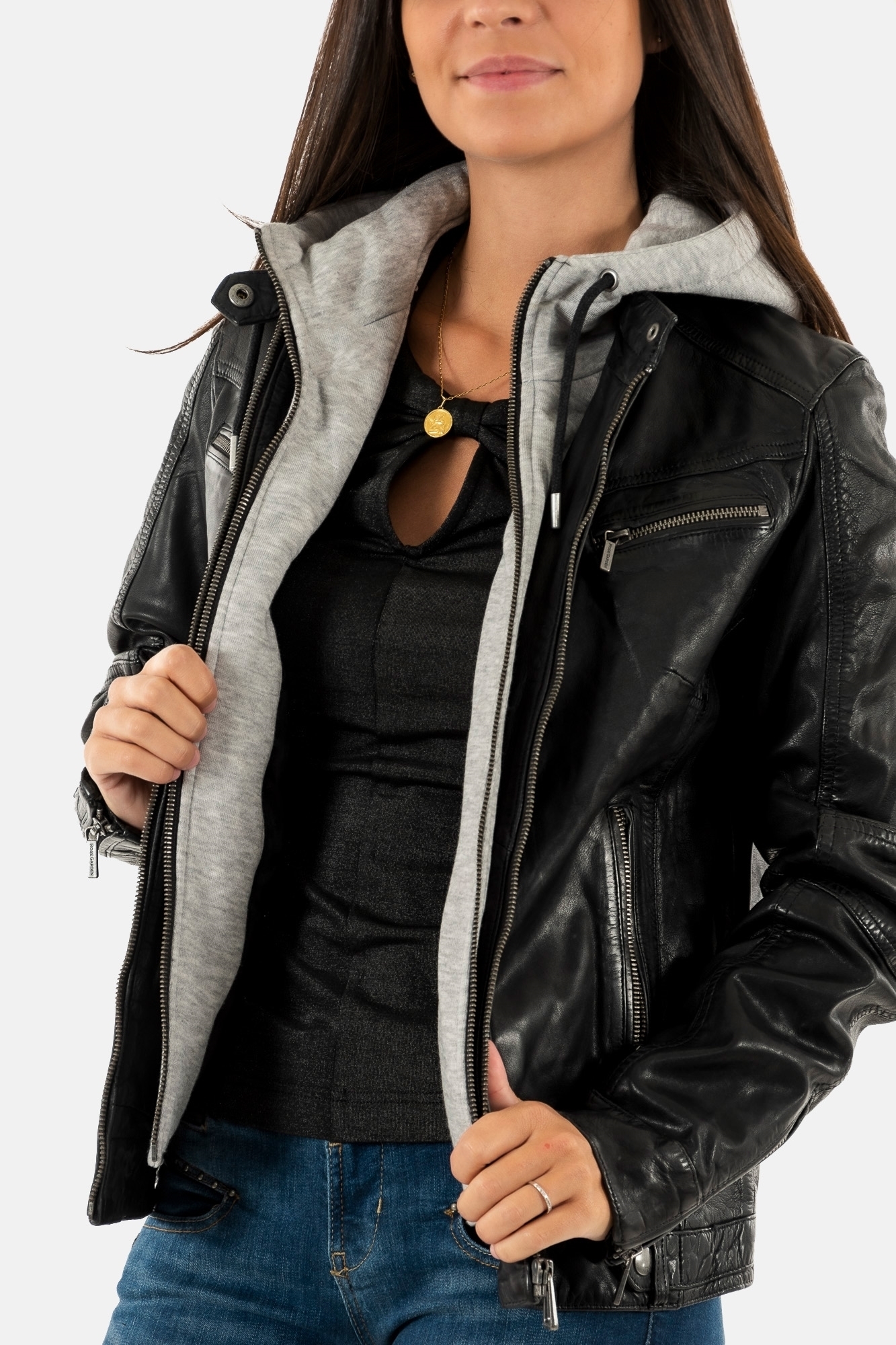 Blousons cuir rose garden silene hood sheep aosta black