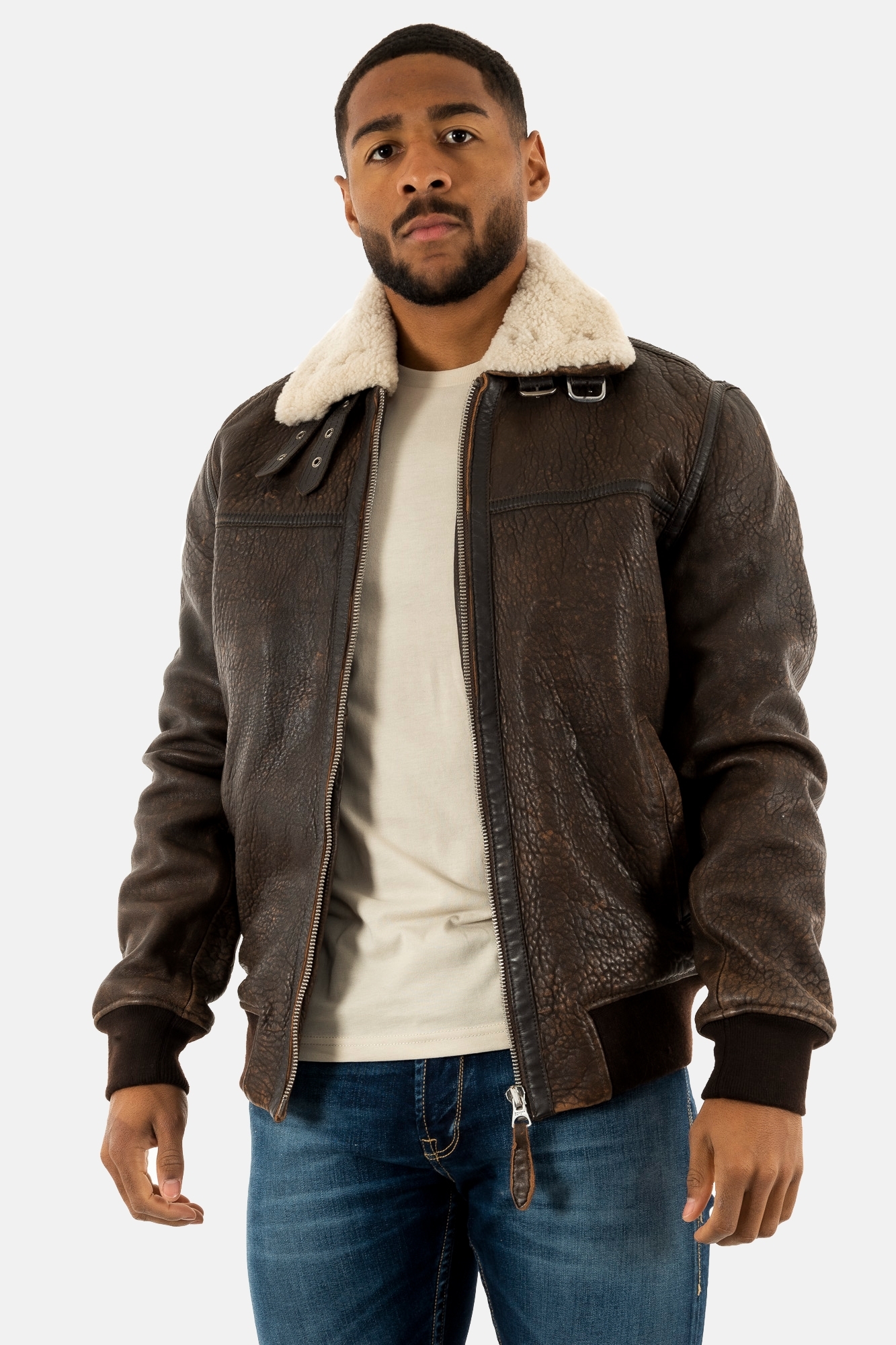 Blousons cuir schott lcbombardier brown