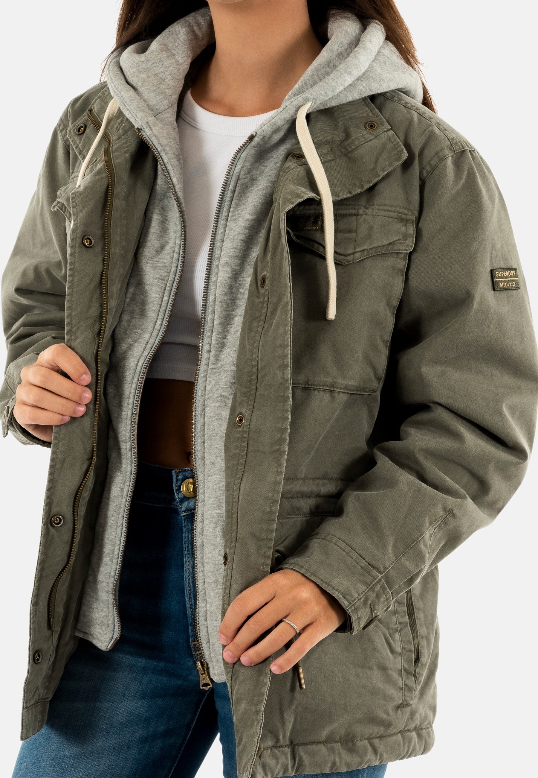 Blousons et vestes superdry jersey hood borg military 8tq chive green