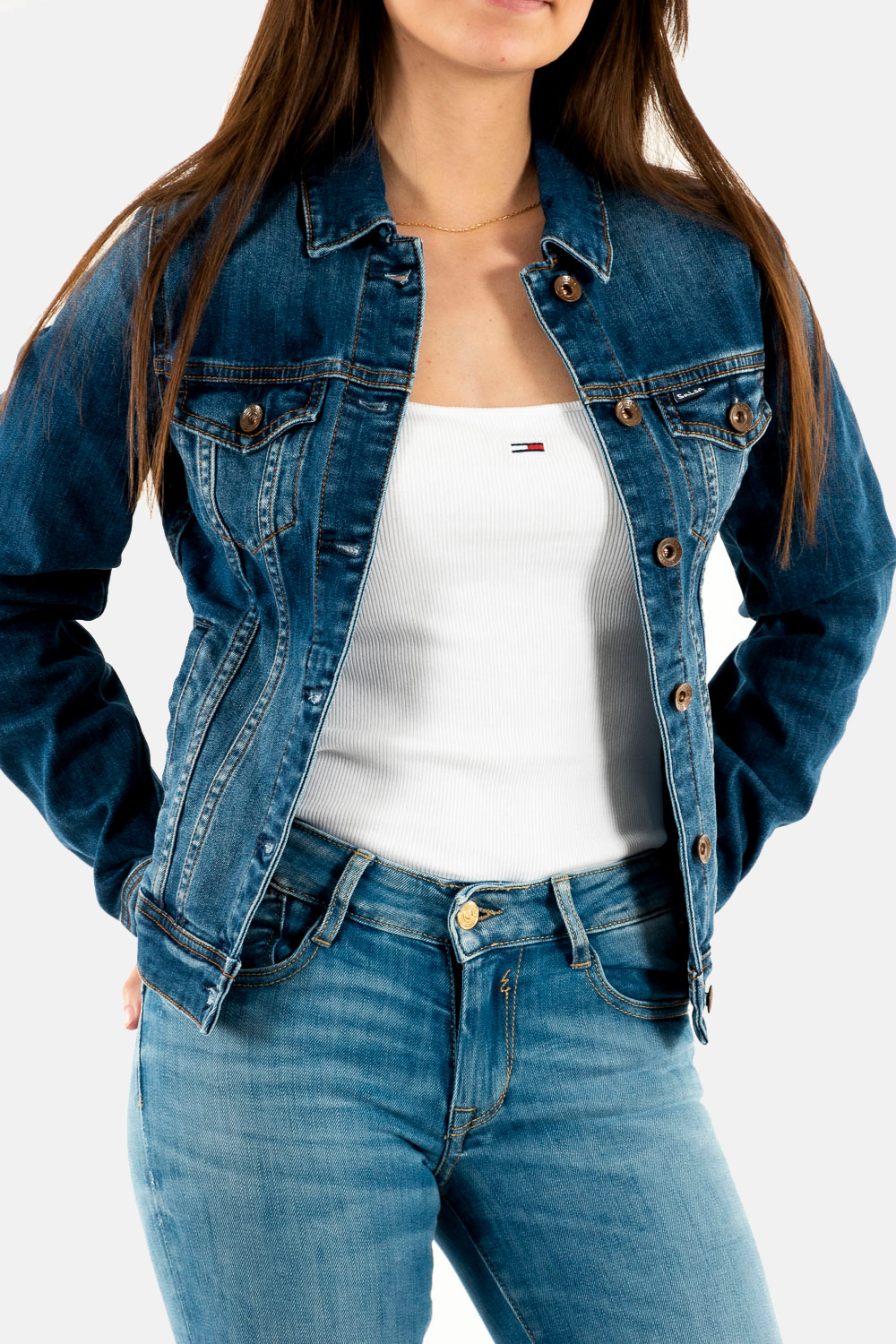 Blousons jeans salsa orange blusãƒo denim bãsico 8504
