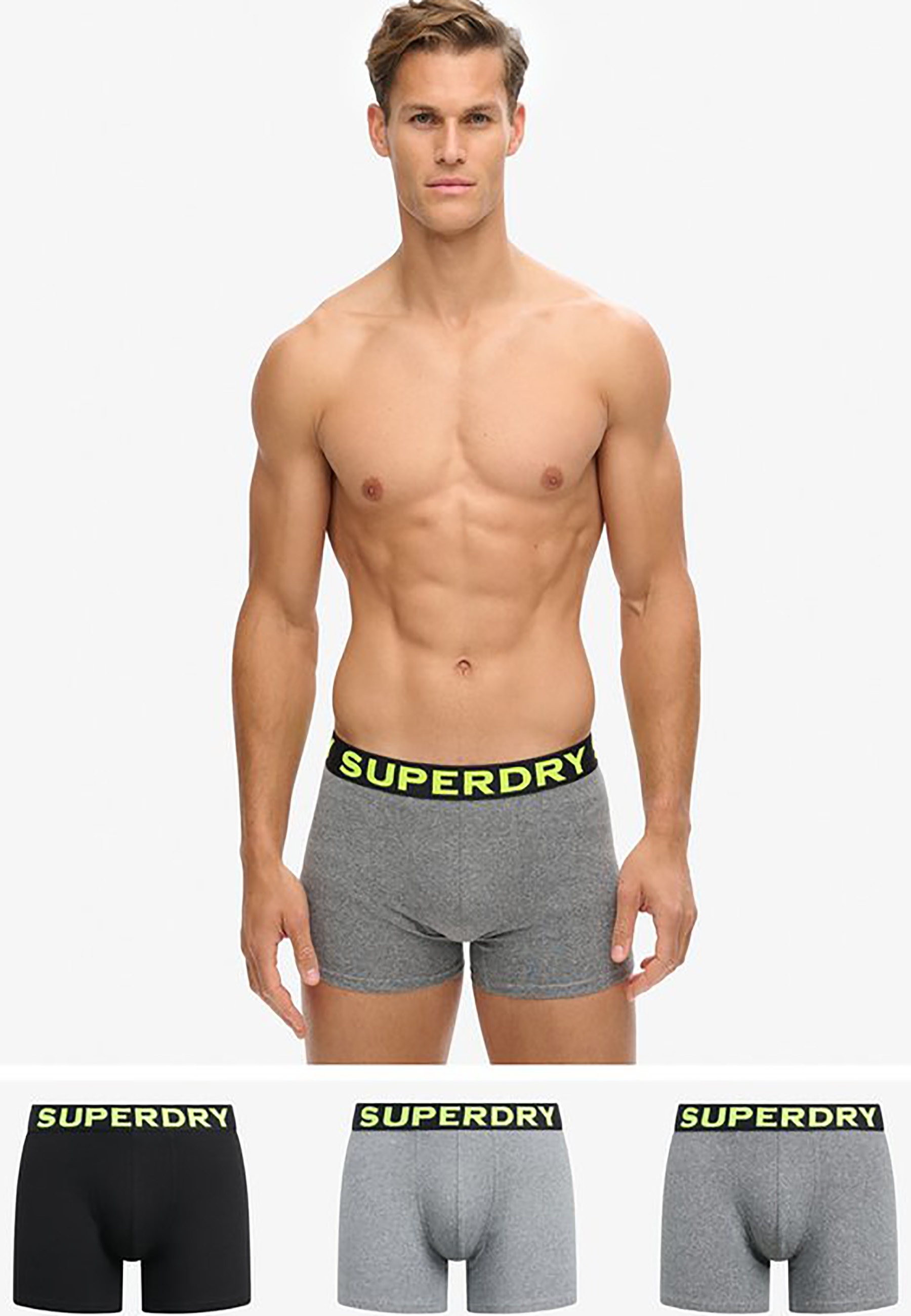 Calecons et slips superdry boxer triple pack b2l ath grey feeder/blk stripe/blk