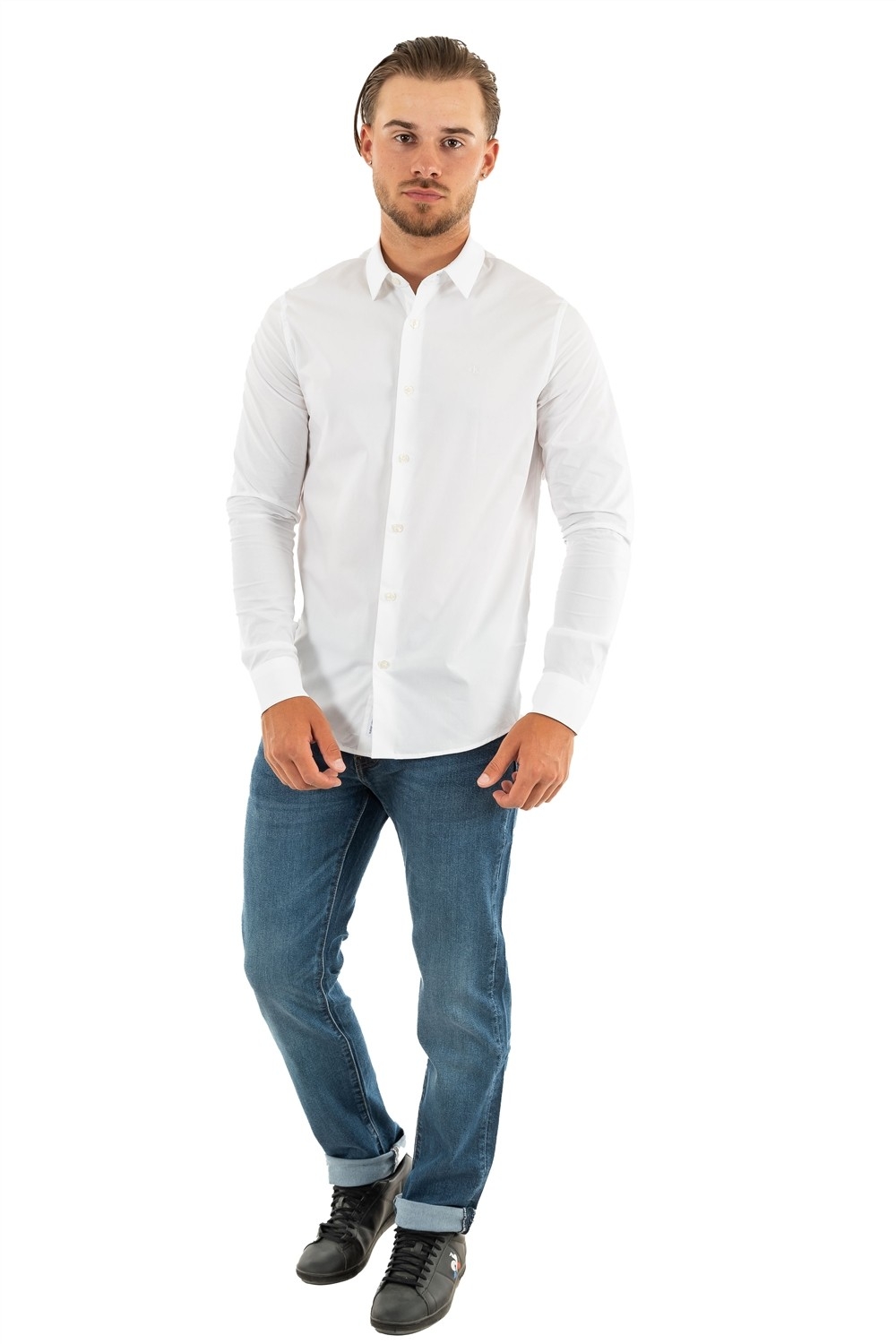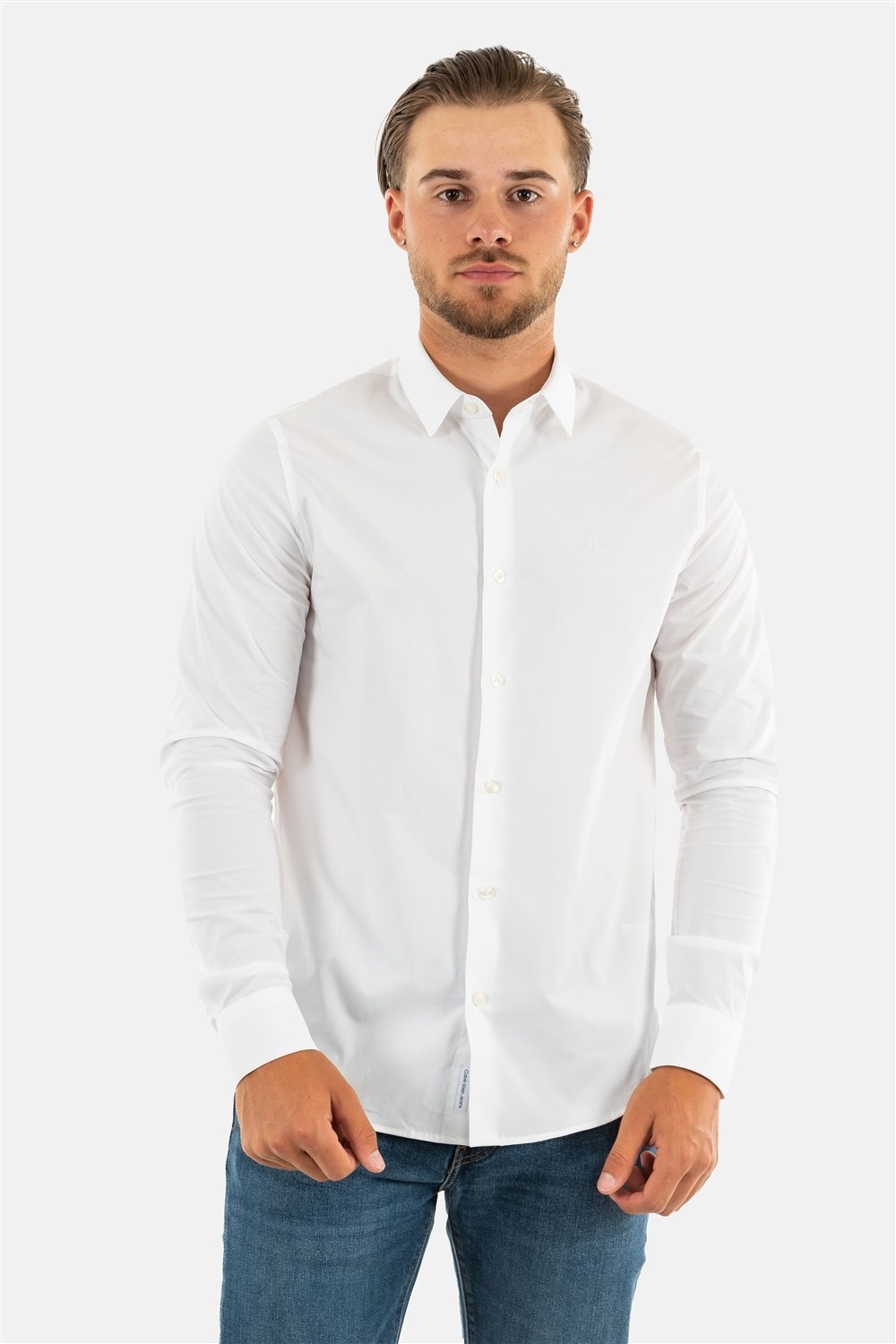chemise calvin klein jeans chest logo slim s blanc