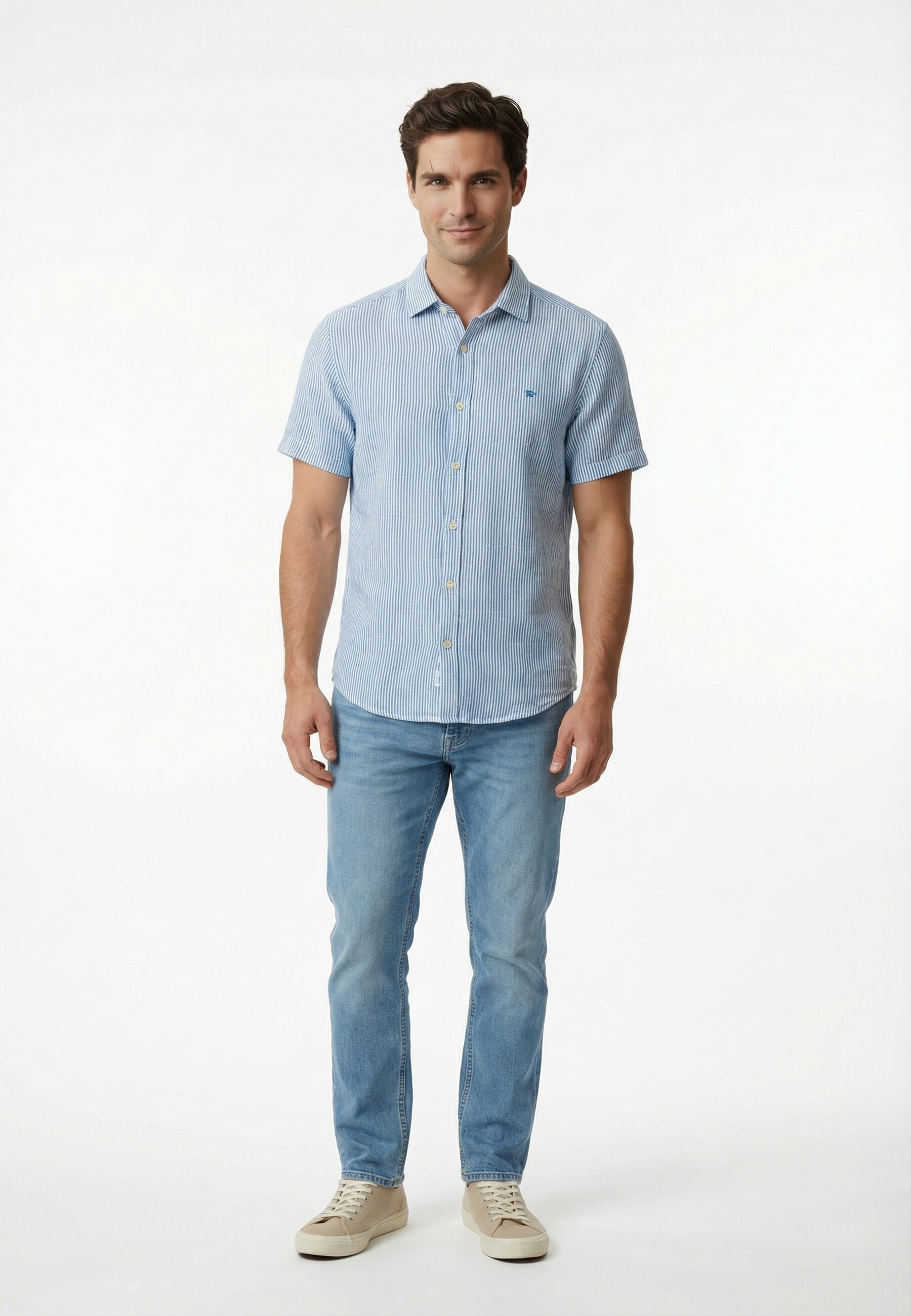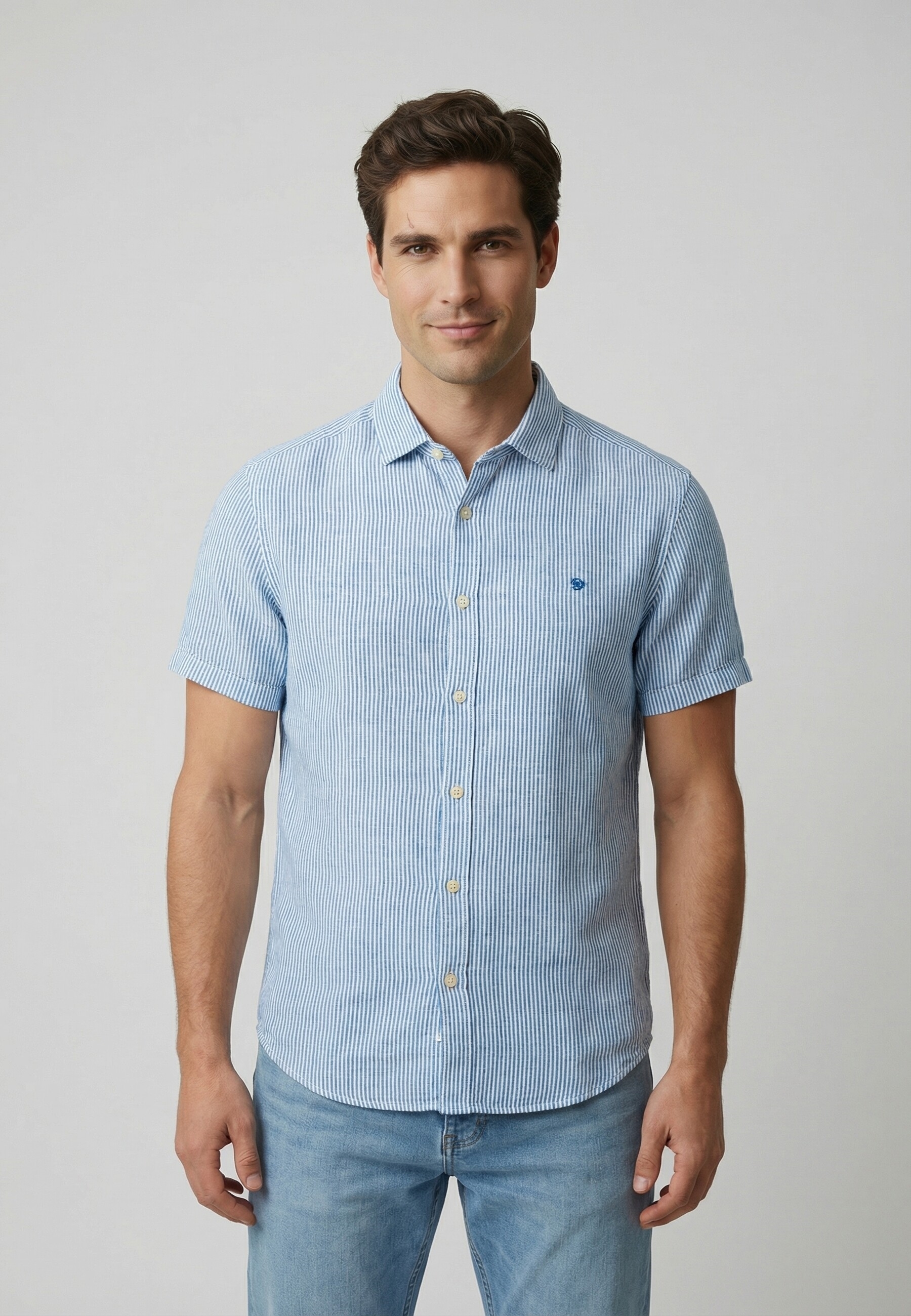 Chemise manches courtes superdry riviera j9g blue chalk stripe