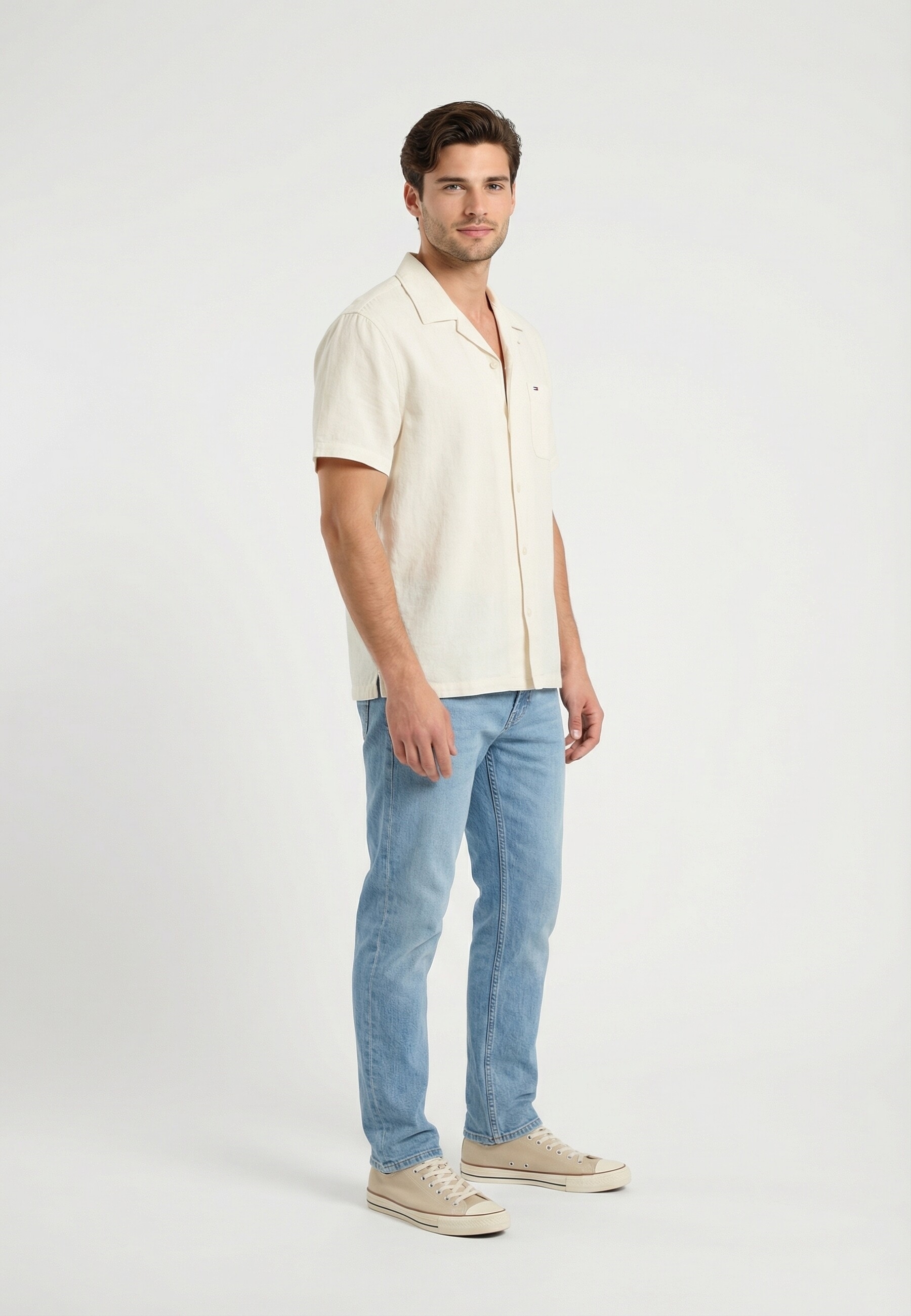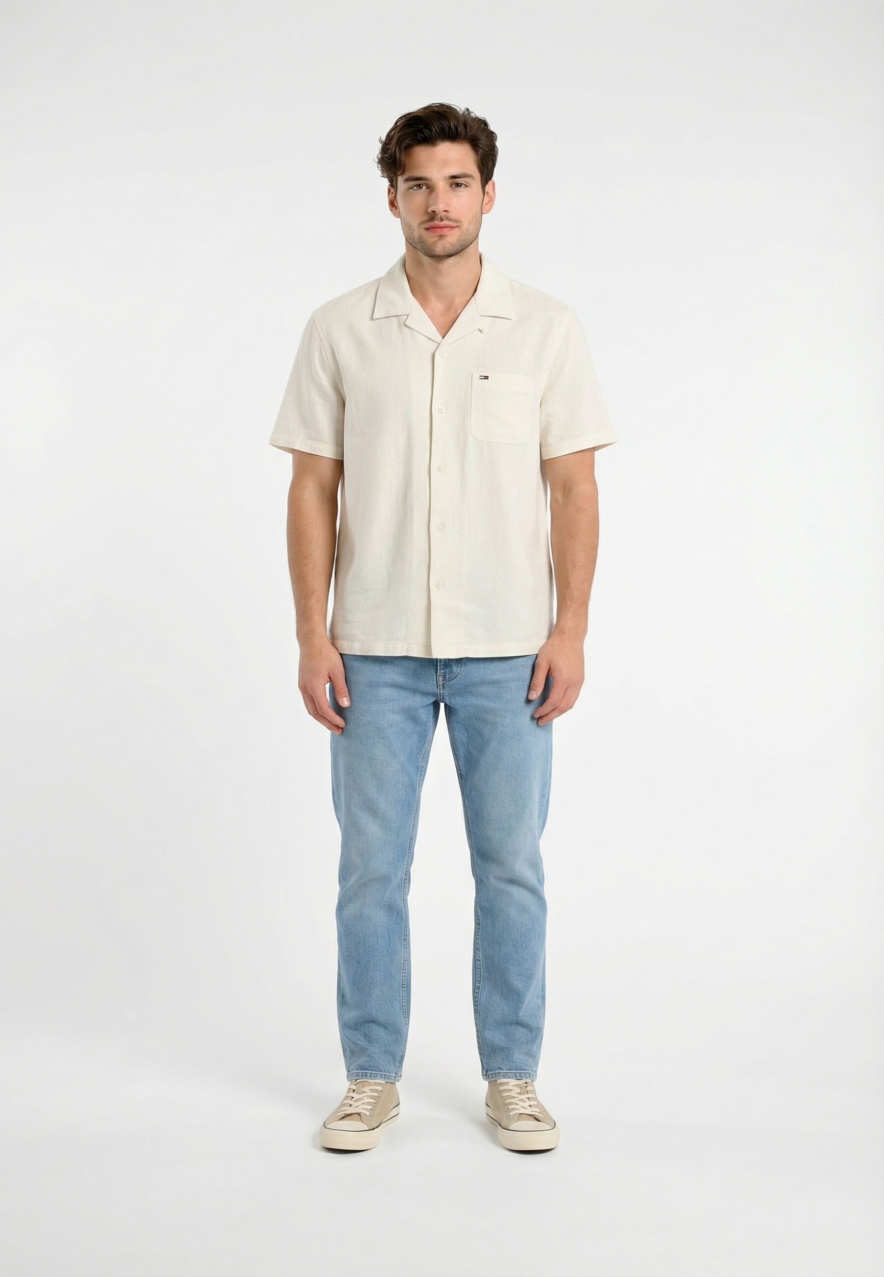 Chemise manches courtes tommy jeans reg linen blend ybl ecru