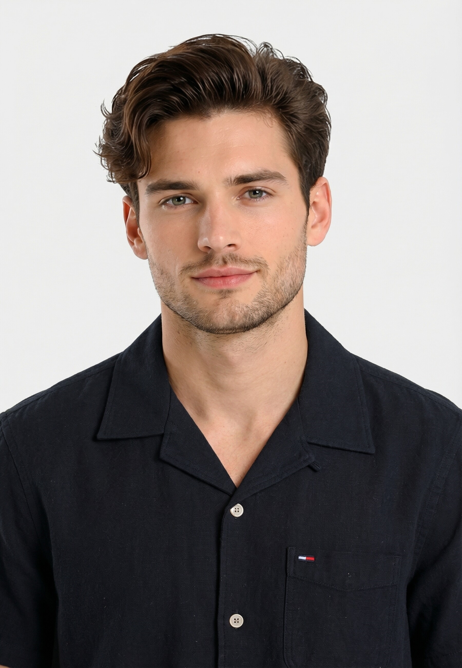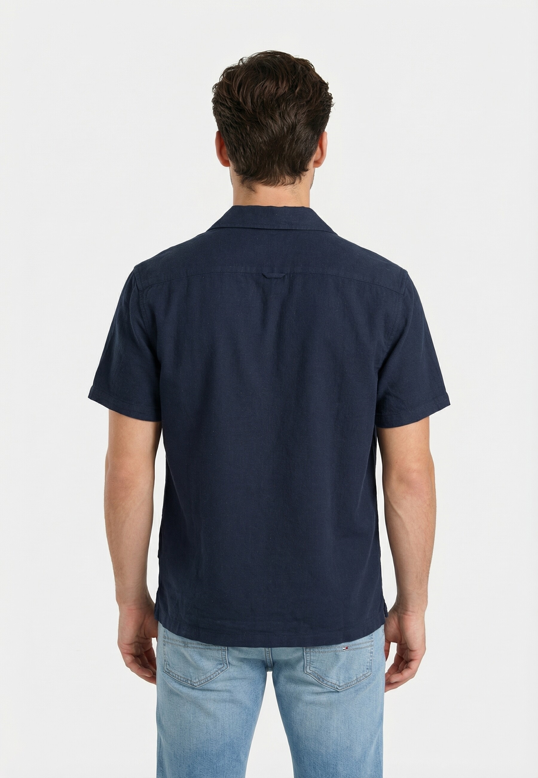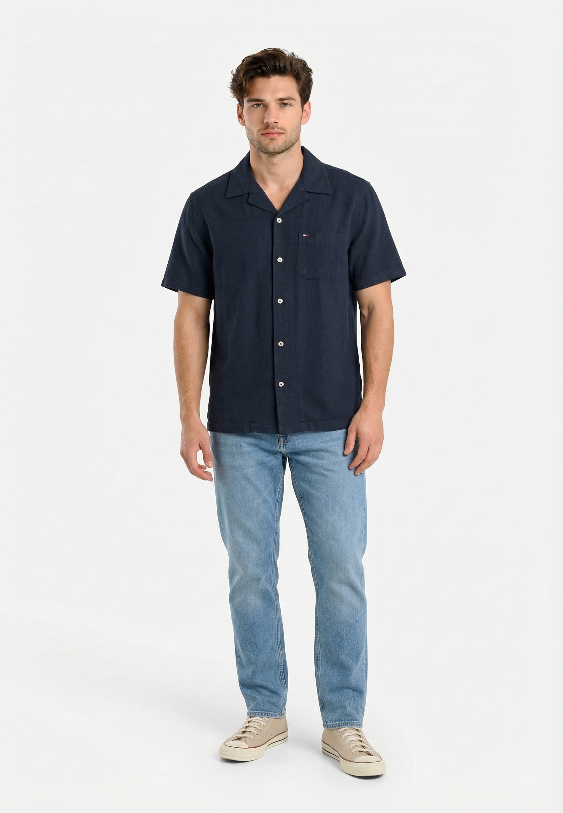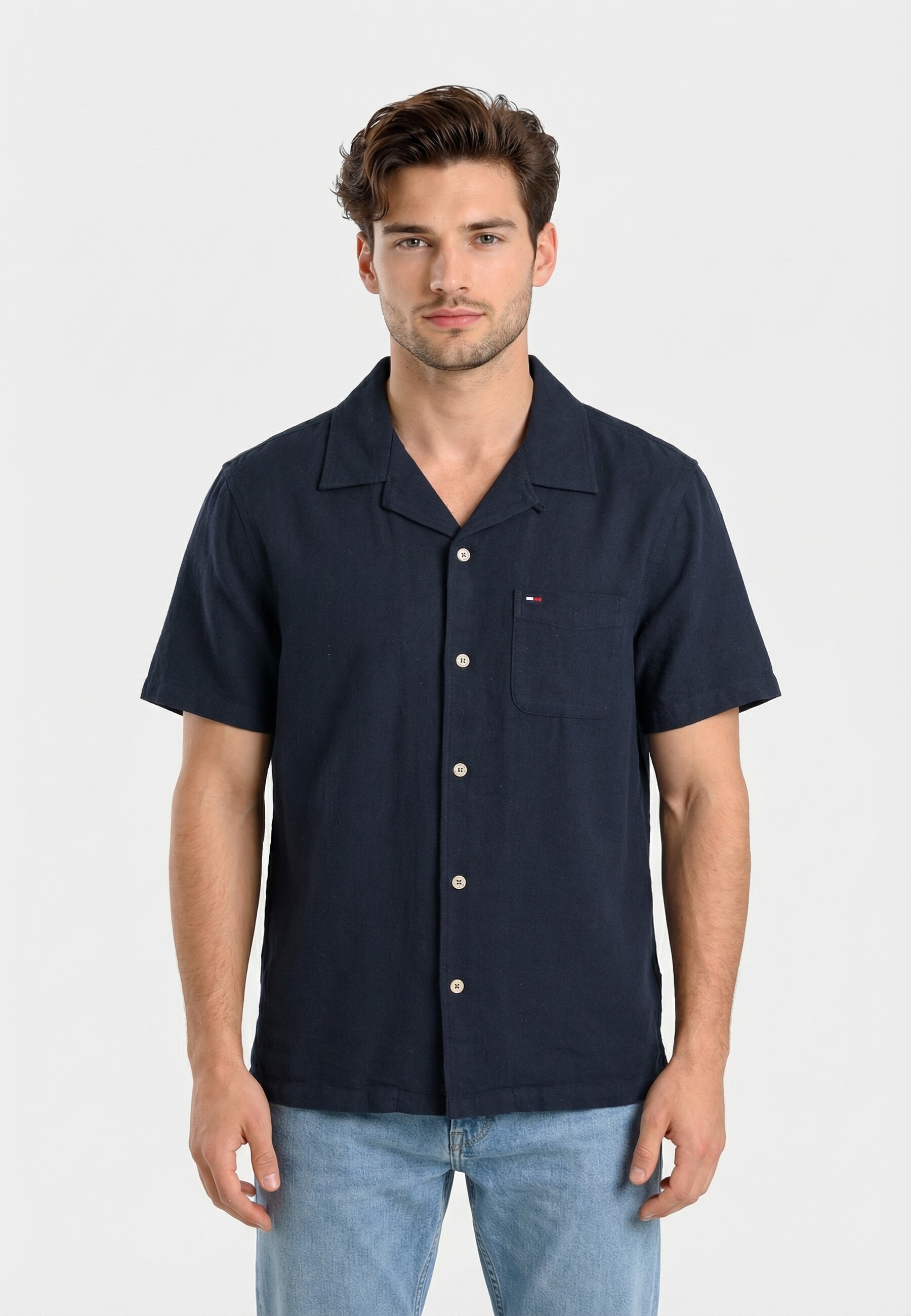Chemise manches courtes tommy jeans reg linen blend c1g dark night navy