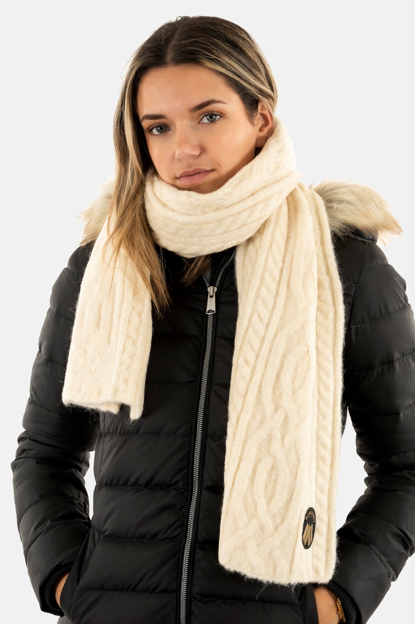 Echarpe superdry cable luxe 9vi oatmeal white