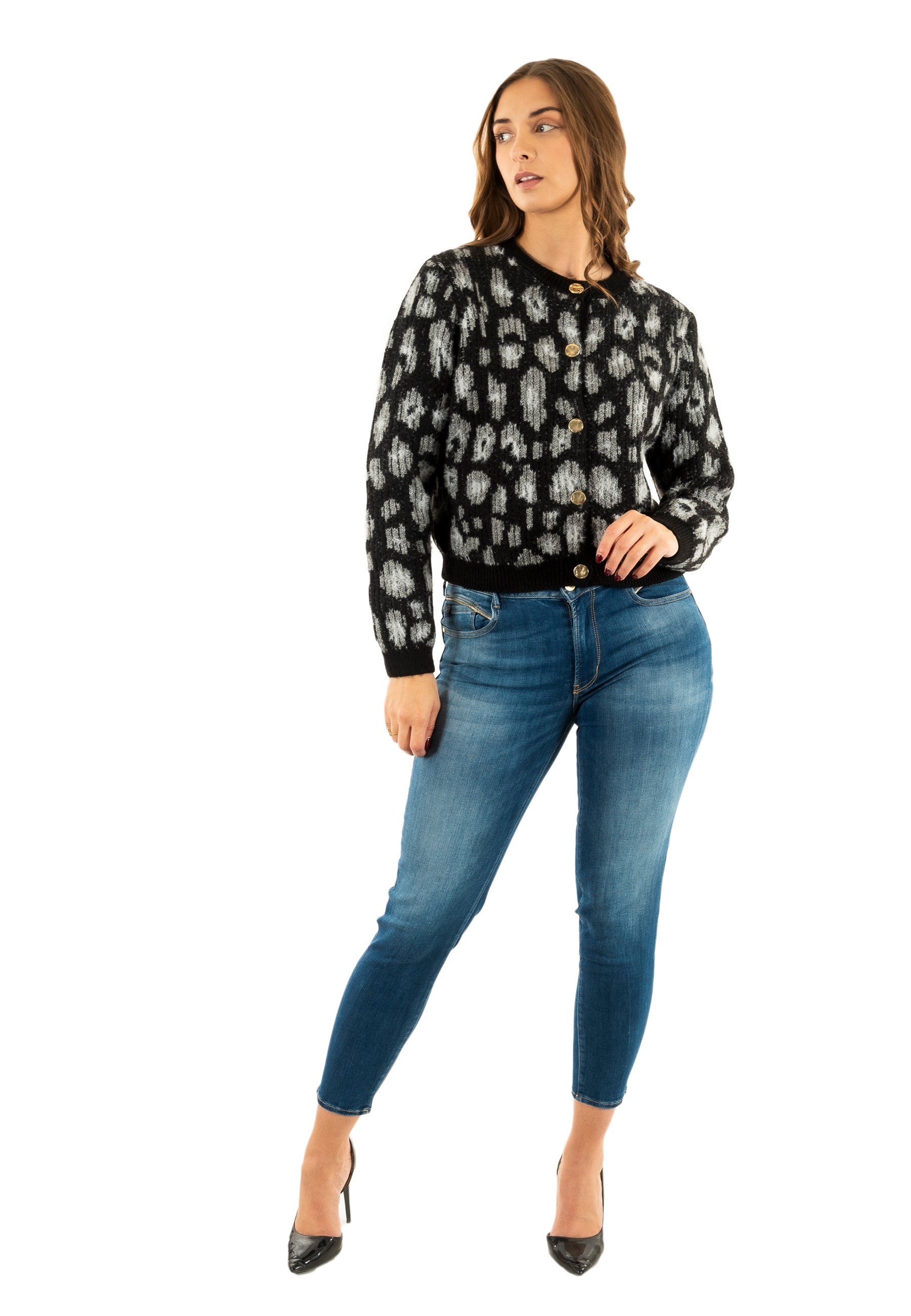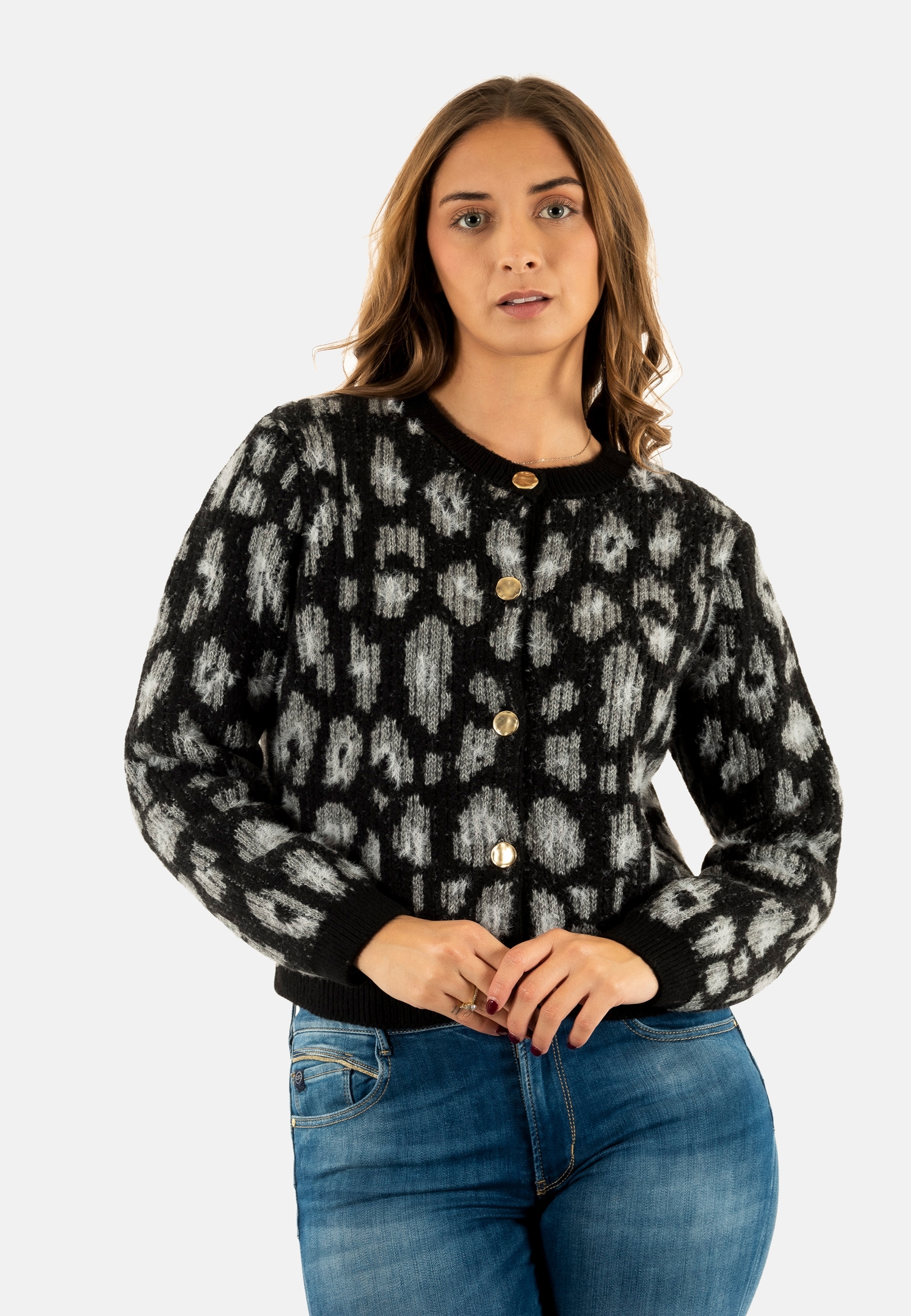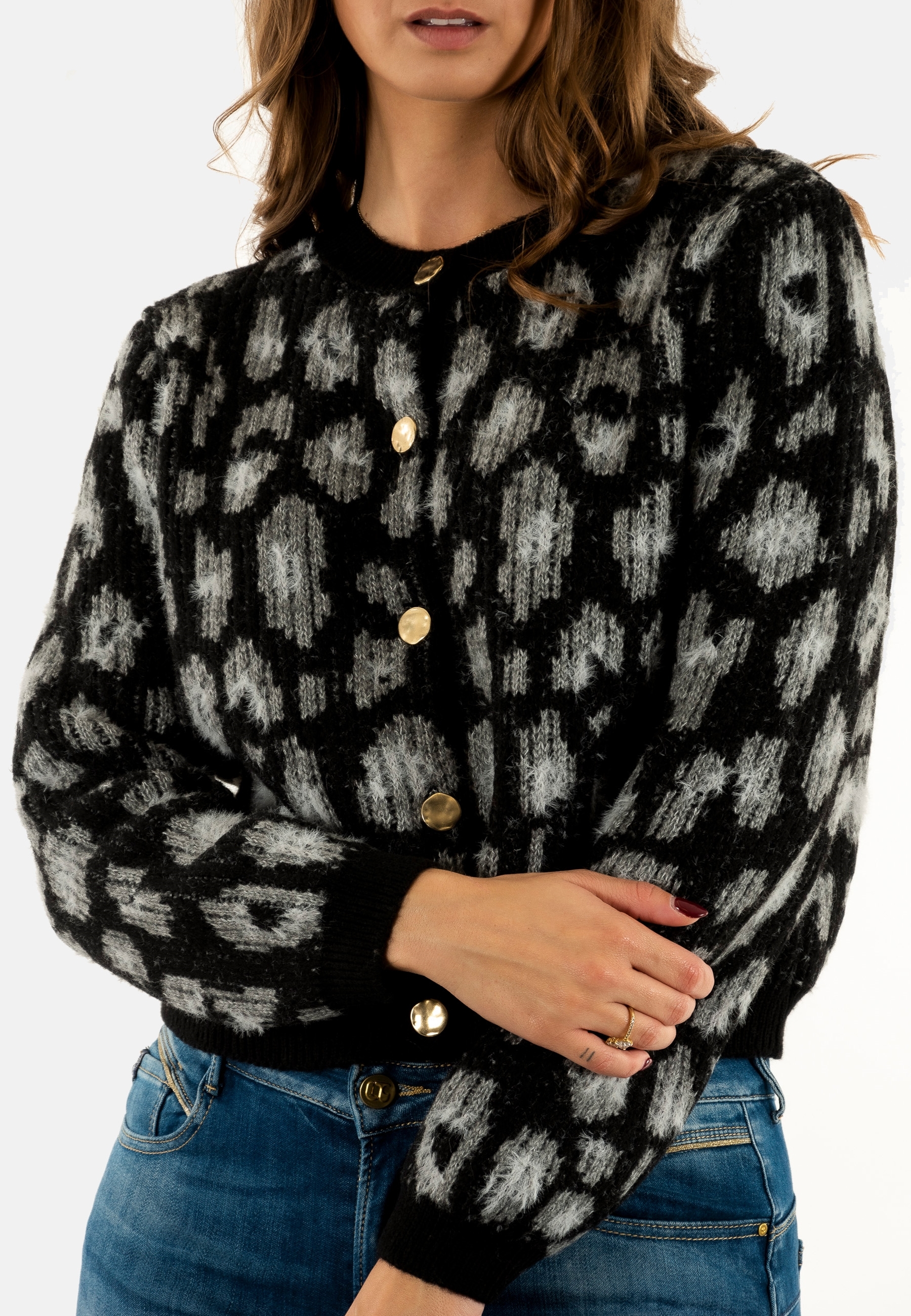 Gilets cardigans only sybille black light grey melange/quiet gray/gold button