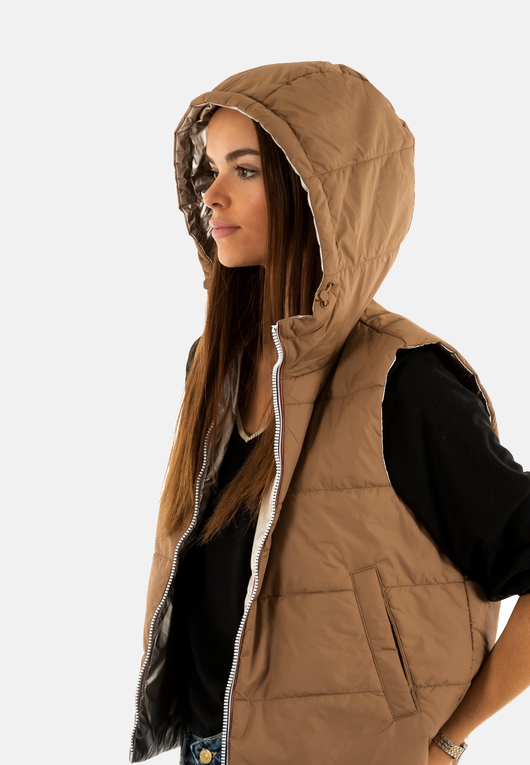 Gilets sans manche only fry reversible cocoa créme light gold