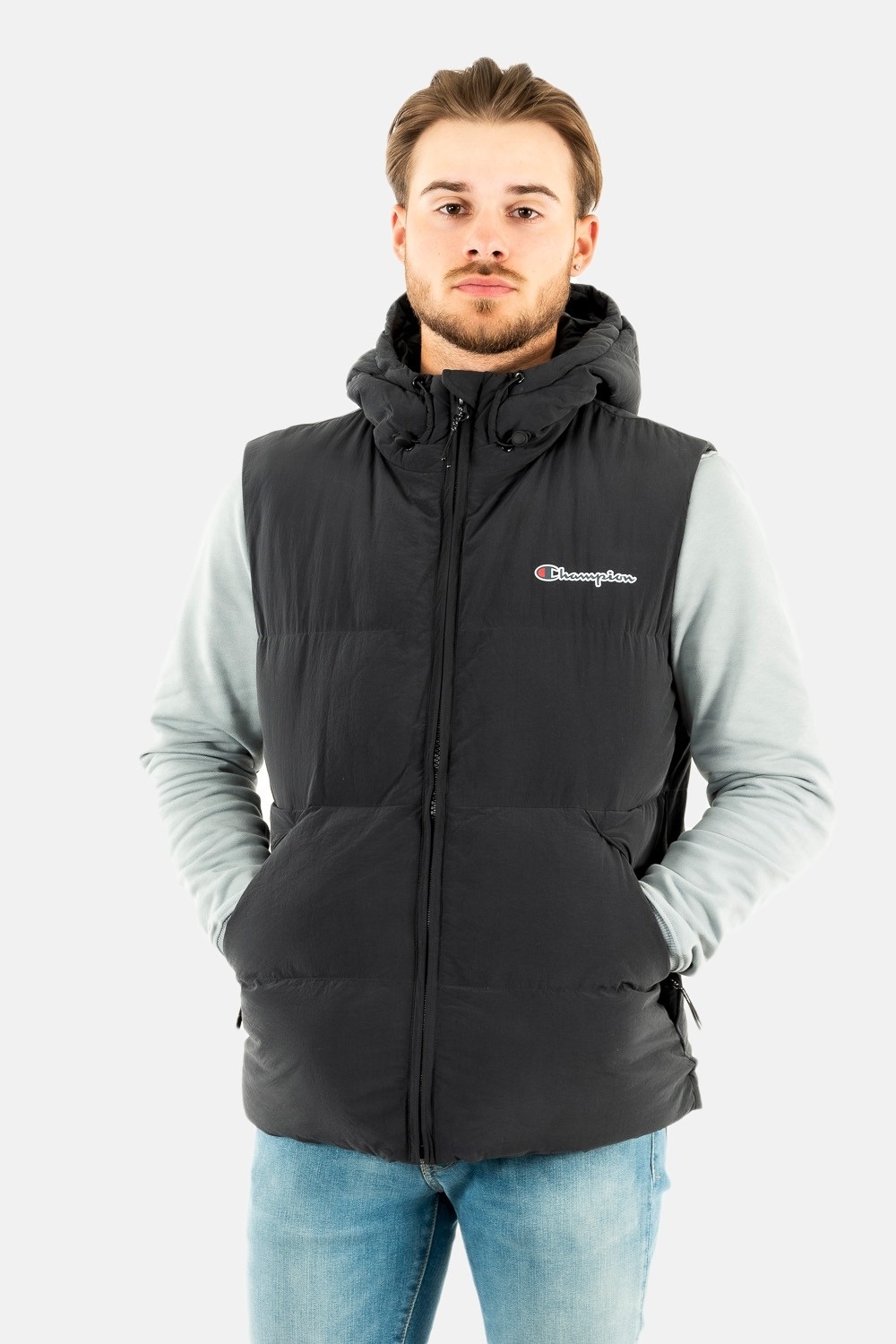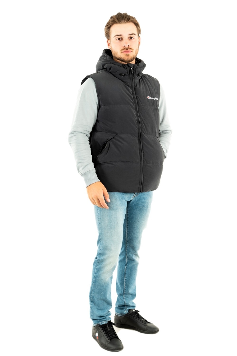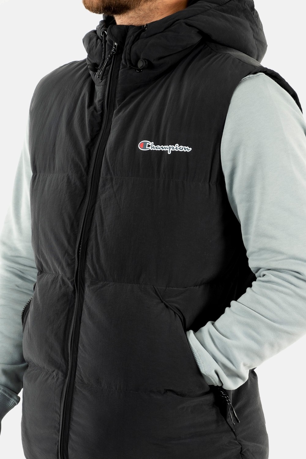 gilets ss manche champion hooded full zip noir