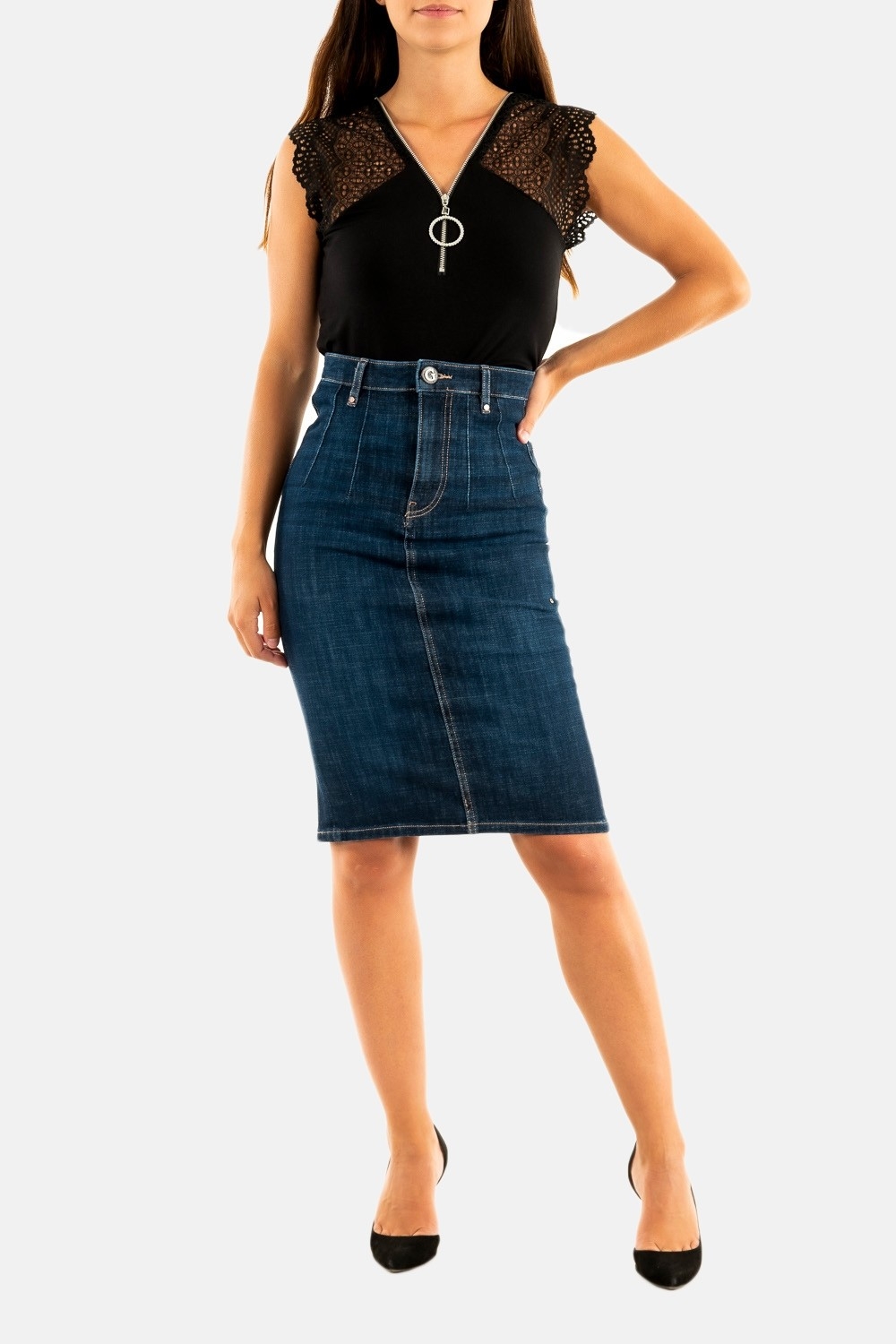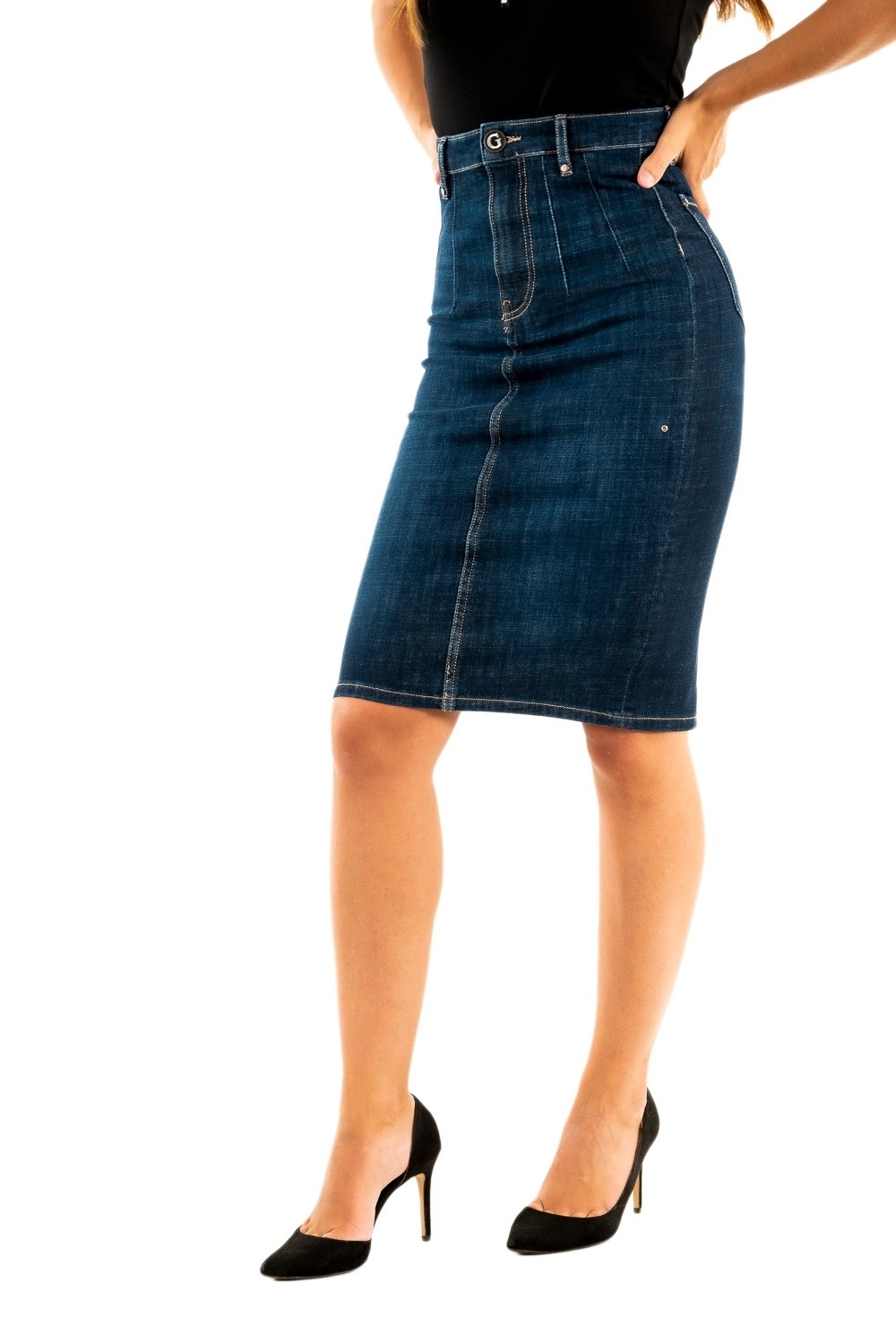 jupe guess jeans britt longuette bezi be zircon