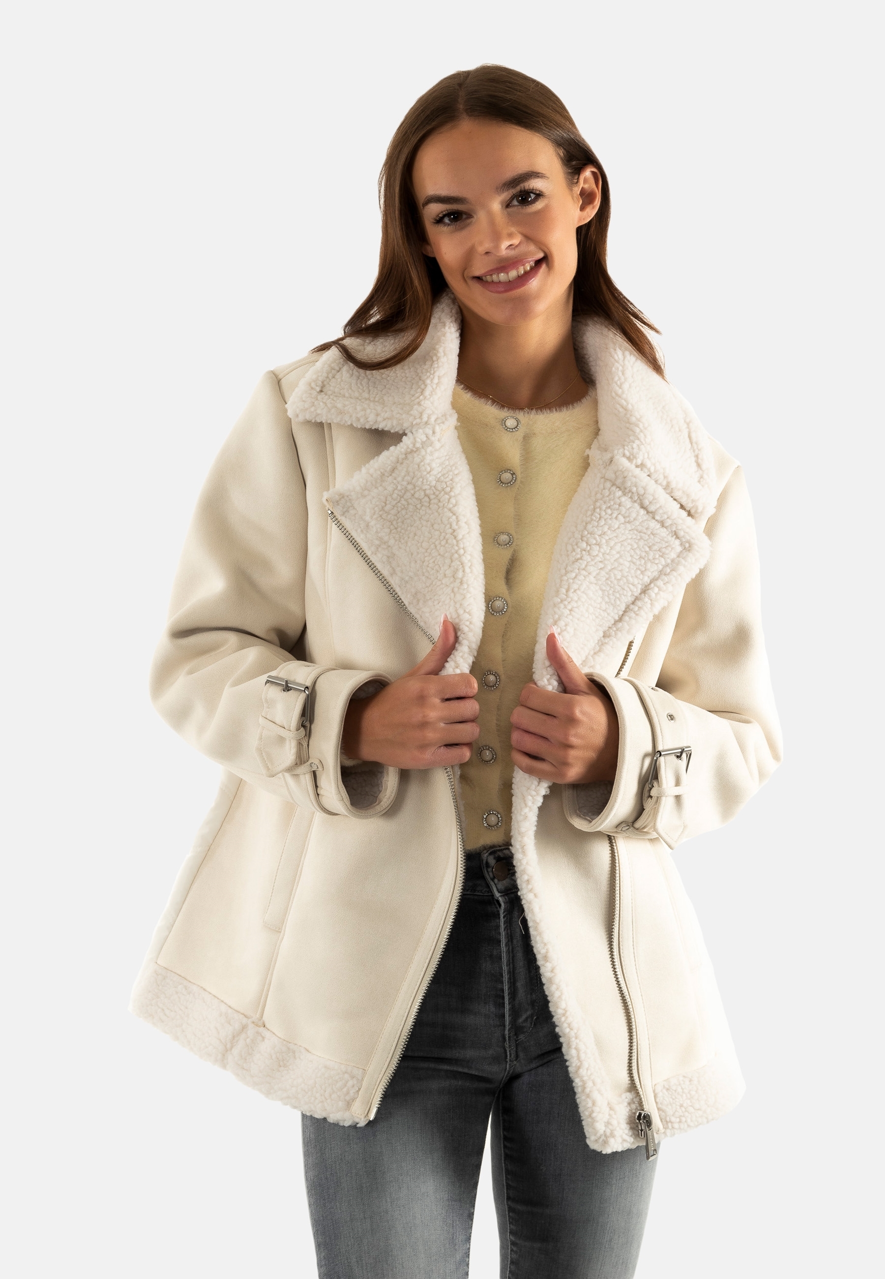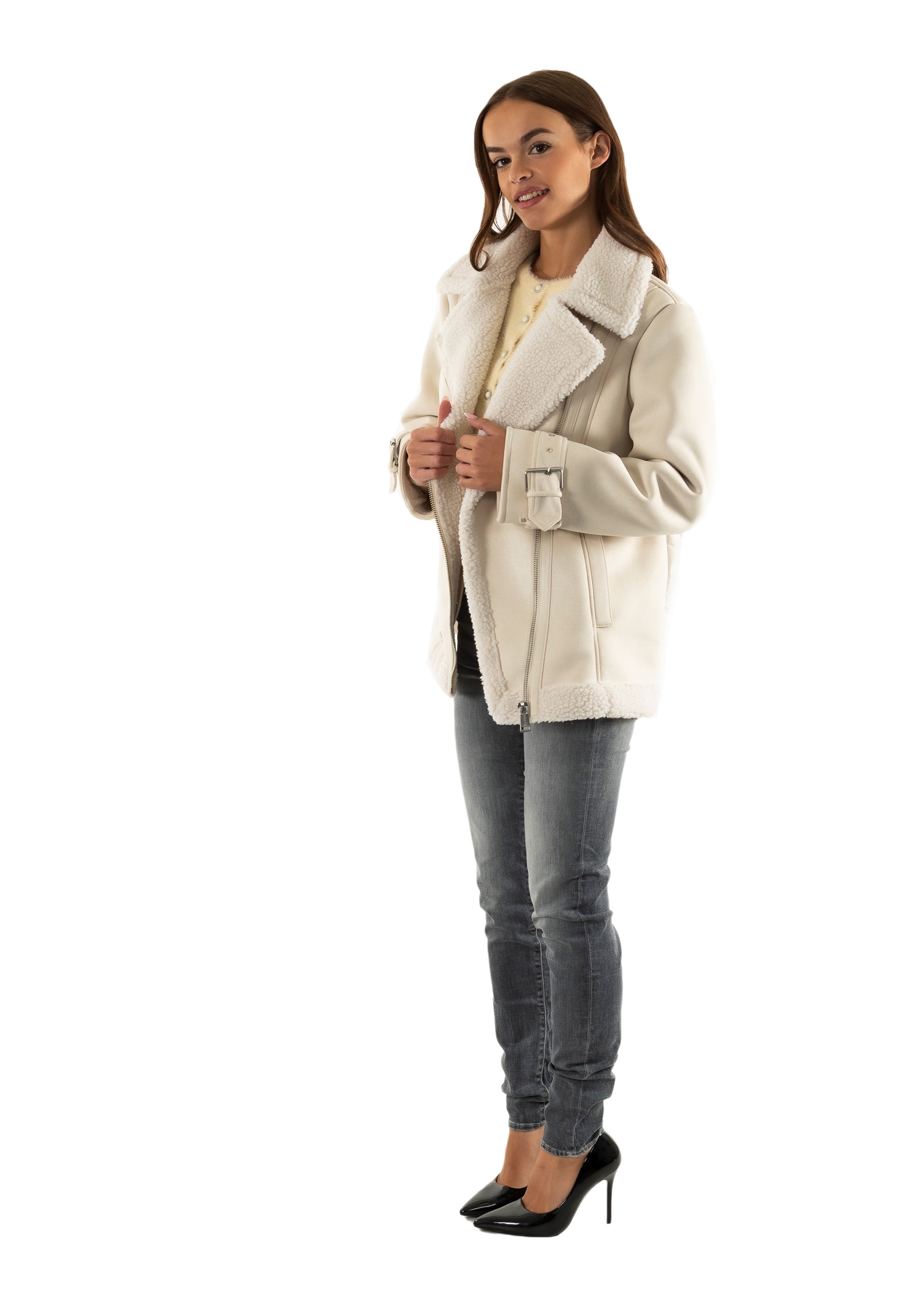 Manteaux guess jeans maristella g012 cream white