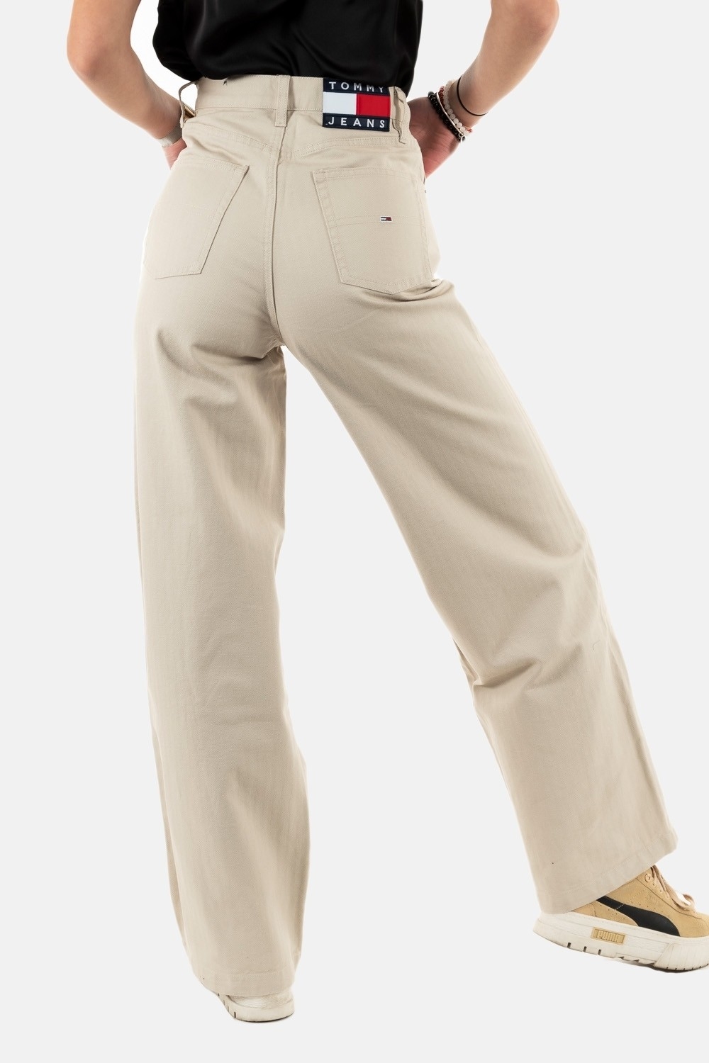 pantalons tommy jeans claire hr wide h beige
