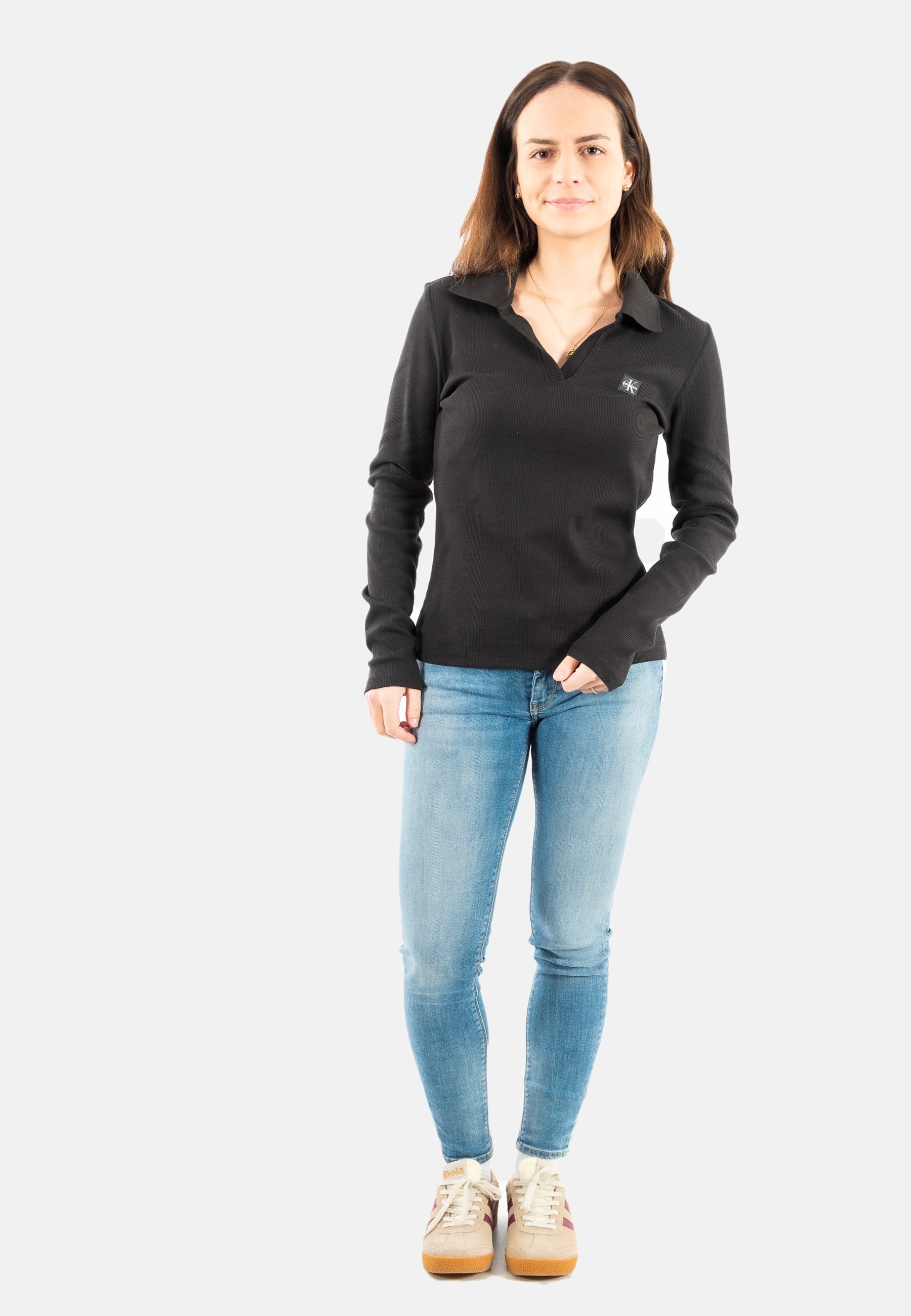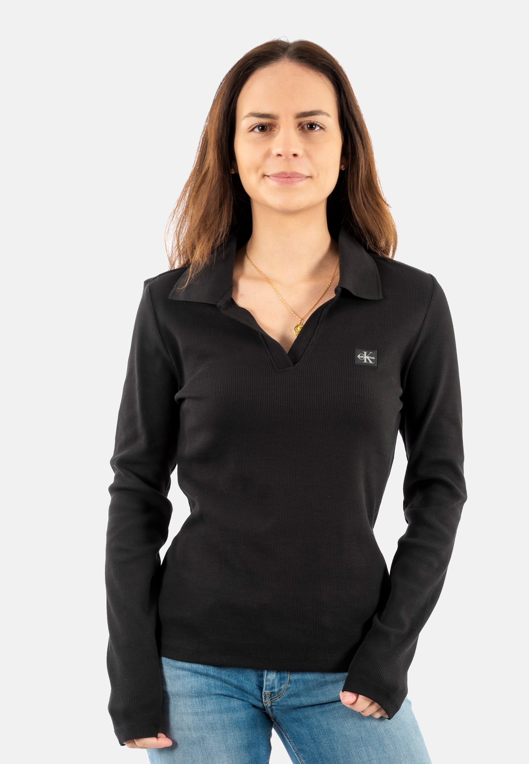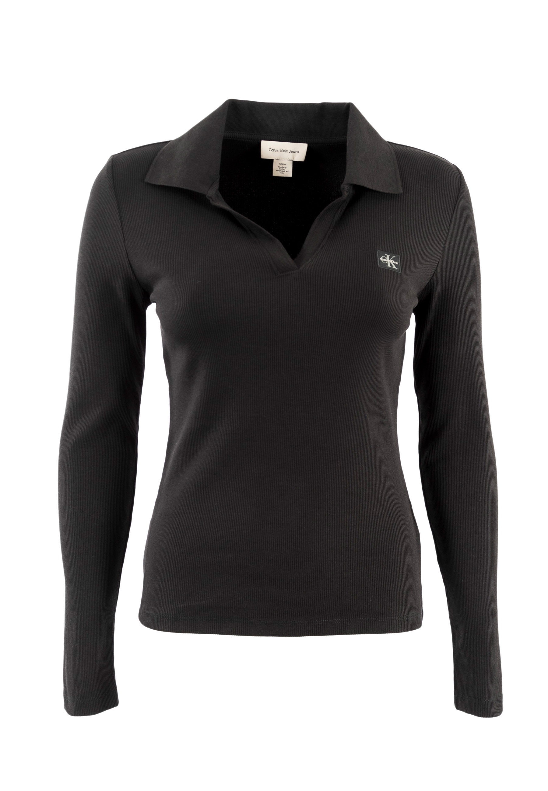 Polos manches longues calvin klein jeans woven label 2x2 r ub1 black