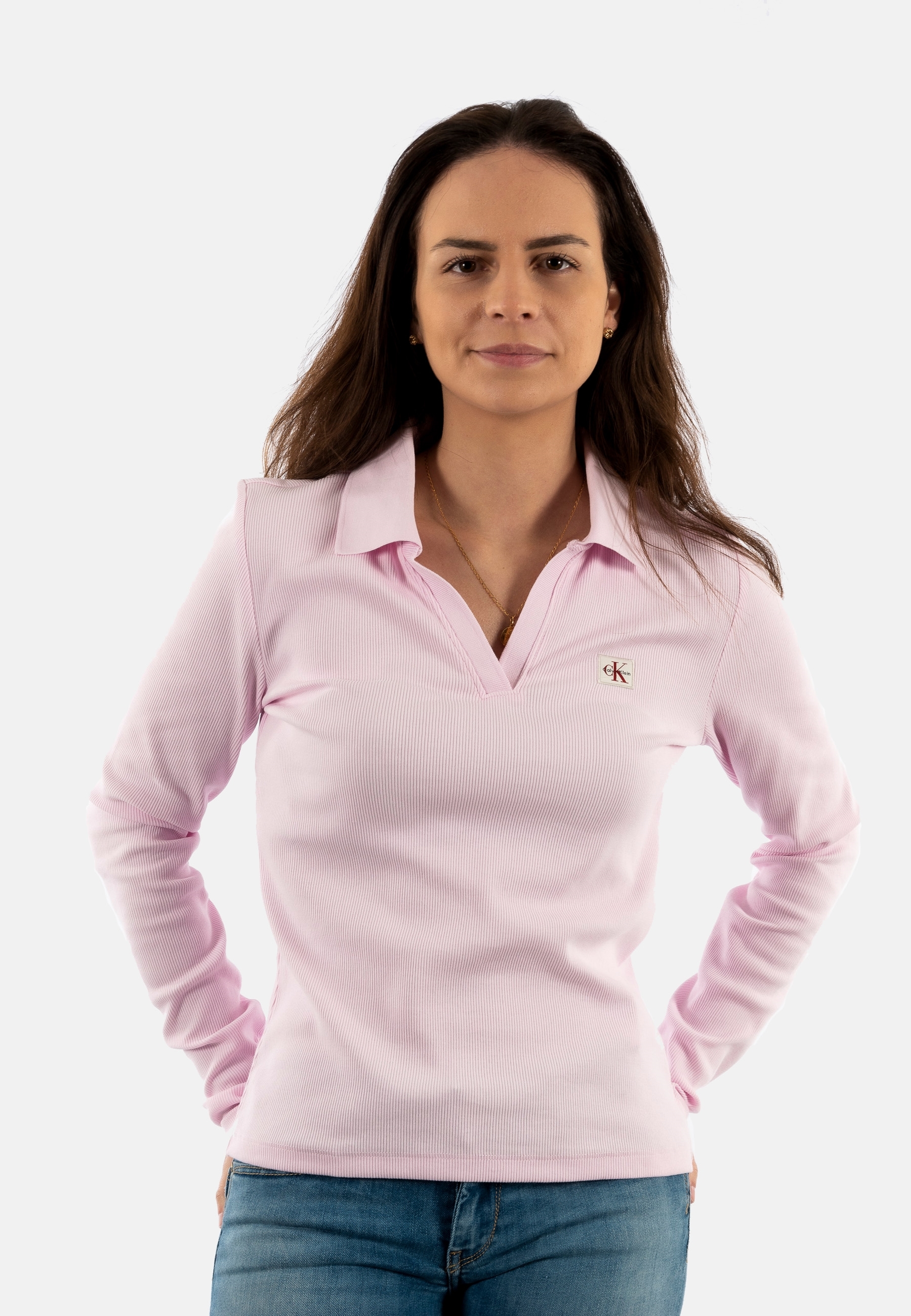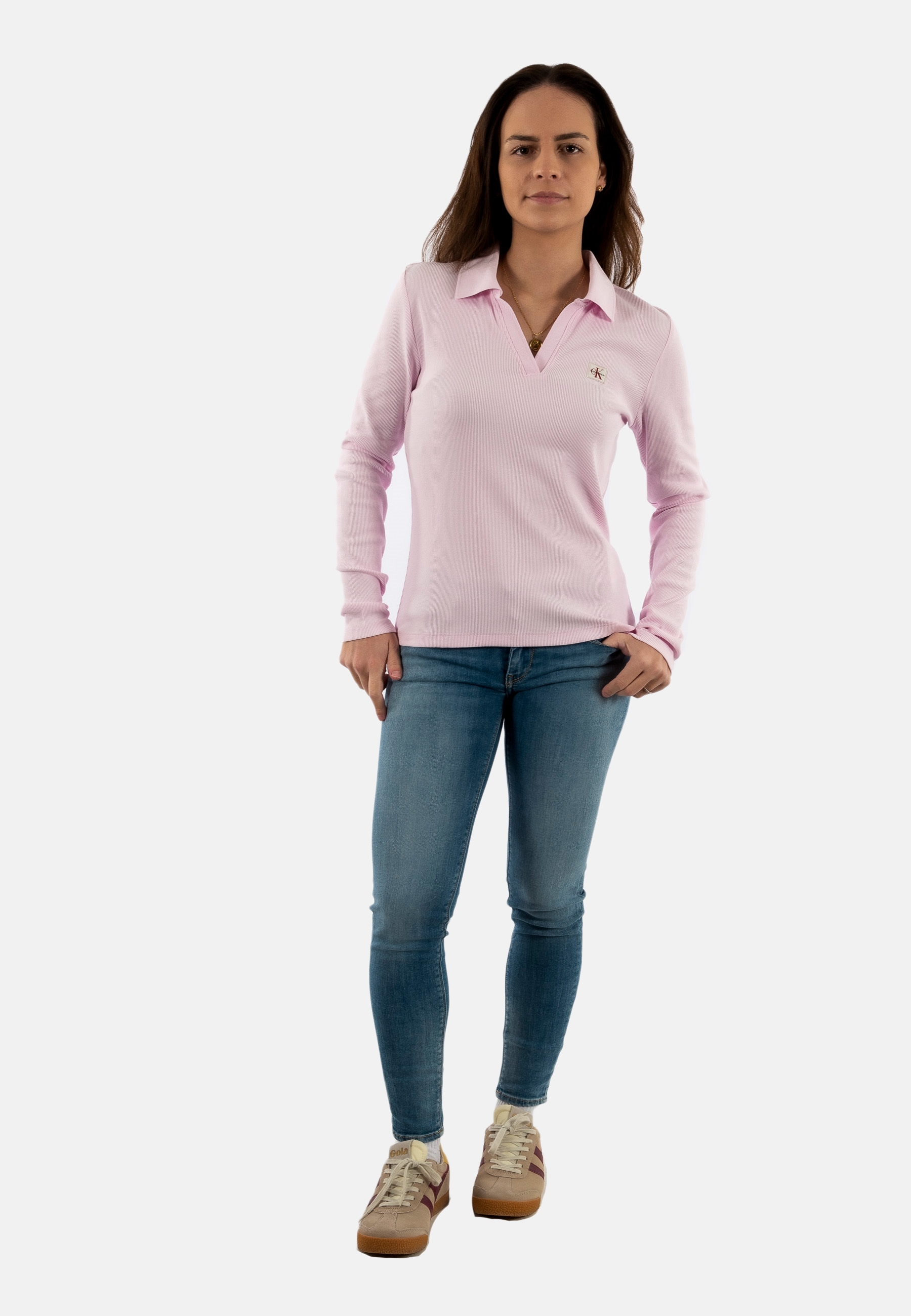Polos manches longues calvin klein jeans woven label 2x2 r tn9 pearly pink