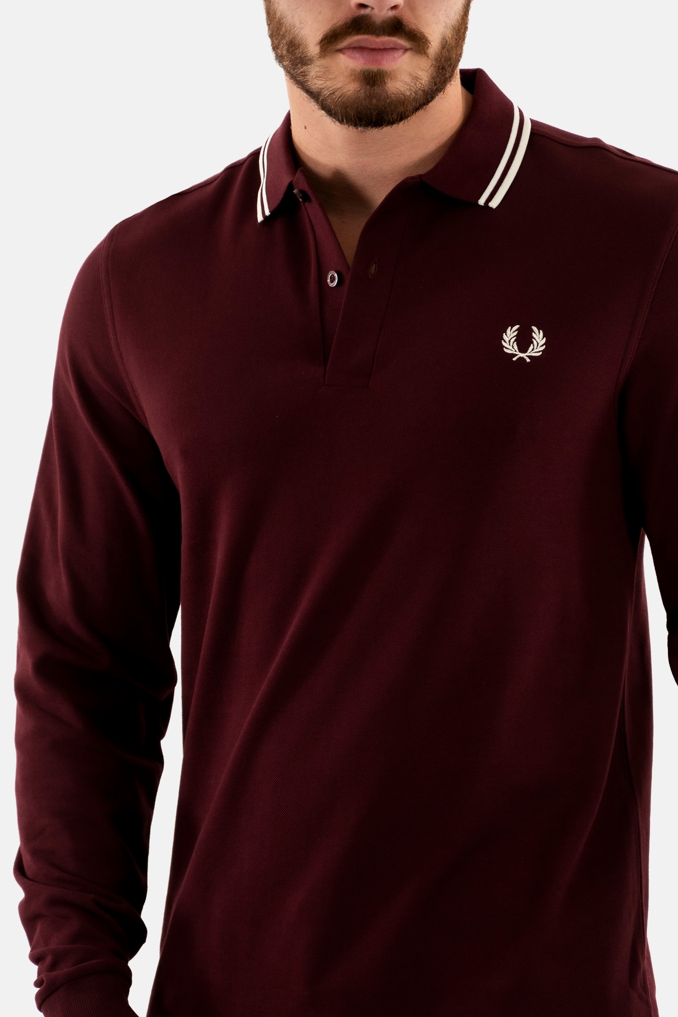 Polos manches longues fred perry m3636 597 ox blood / ecru / ecru