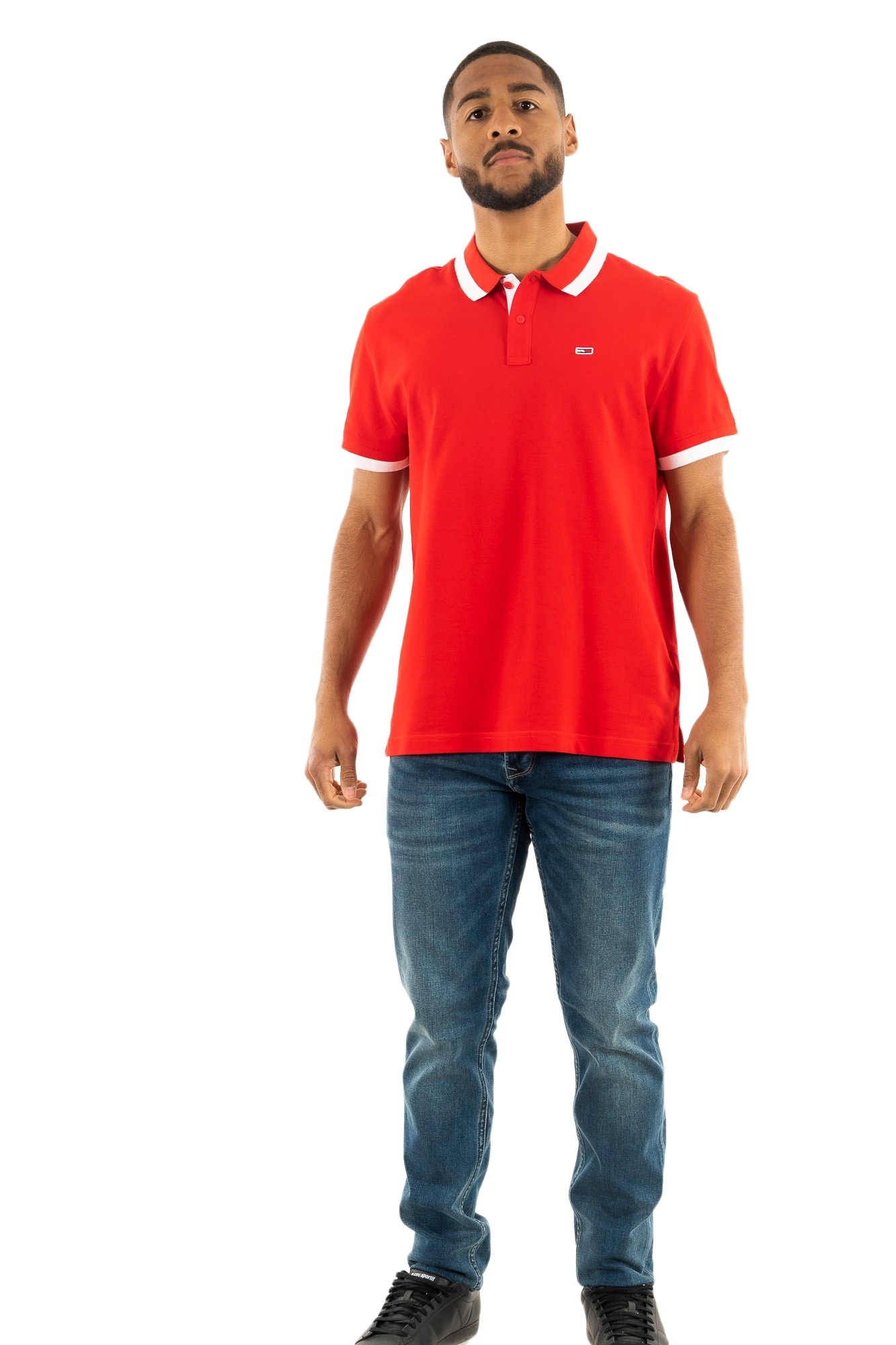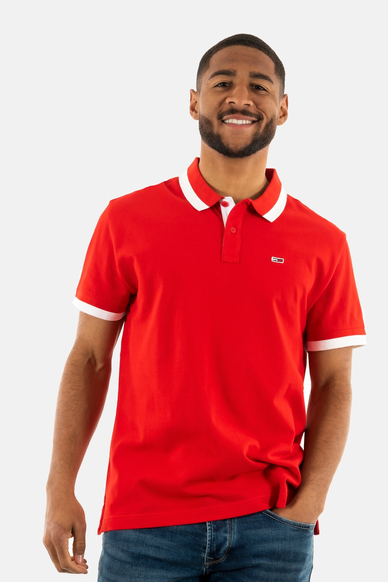 Polos tommy jeans reg solid tipped xnl deep crimson