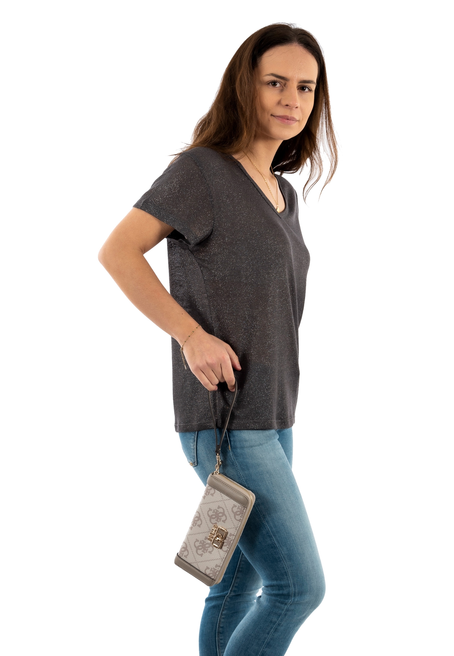 Portefeuille guess jeans karnilla logo slg lrg zip arnd dark taupe logo