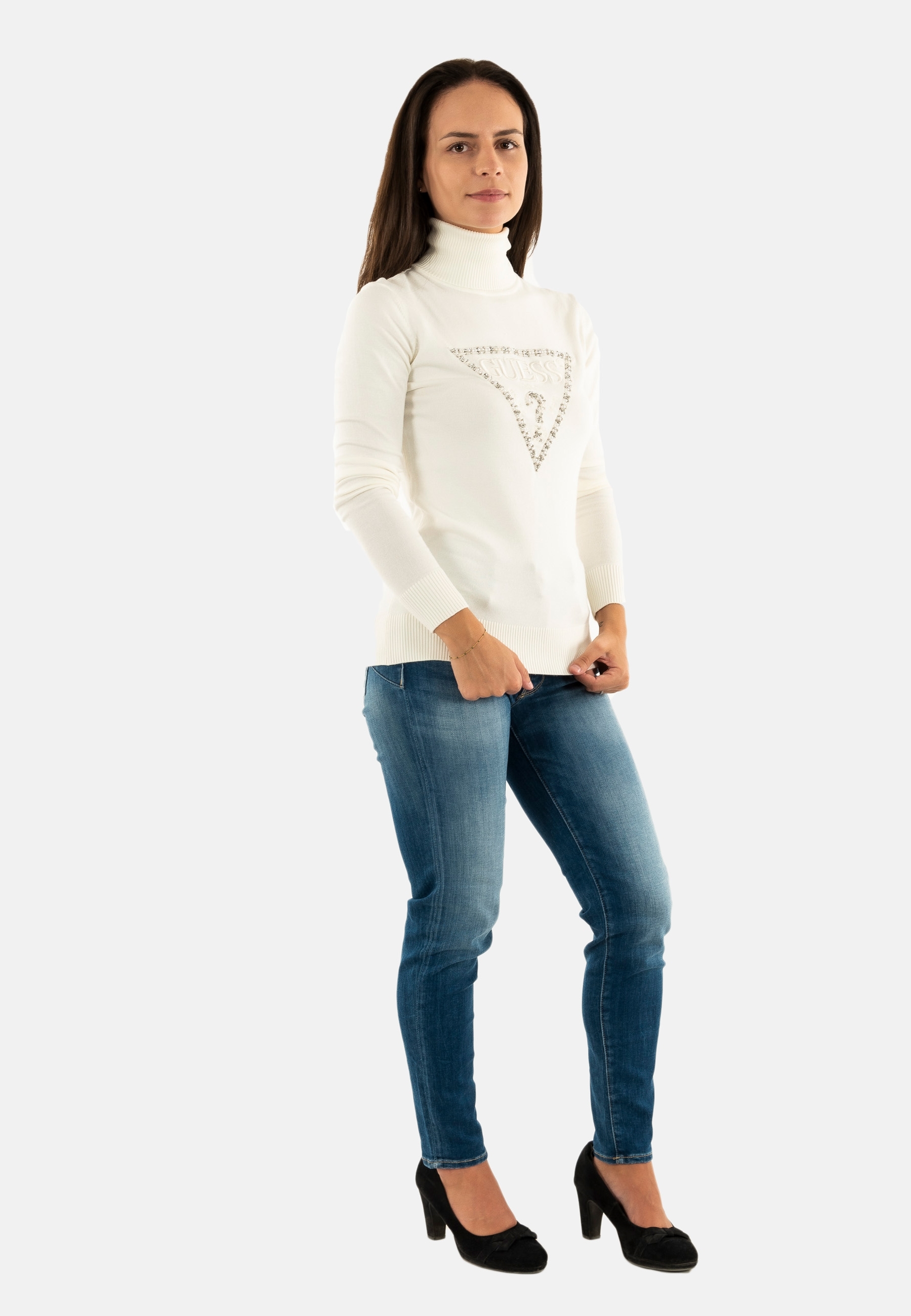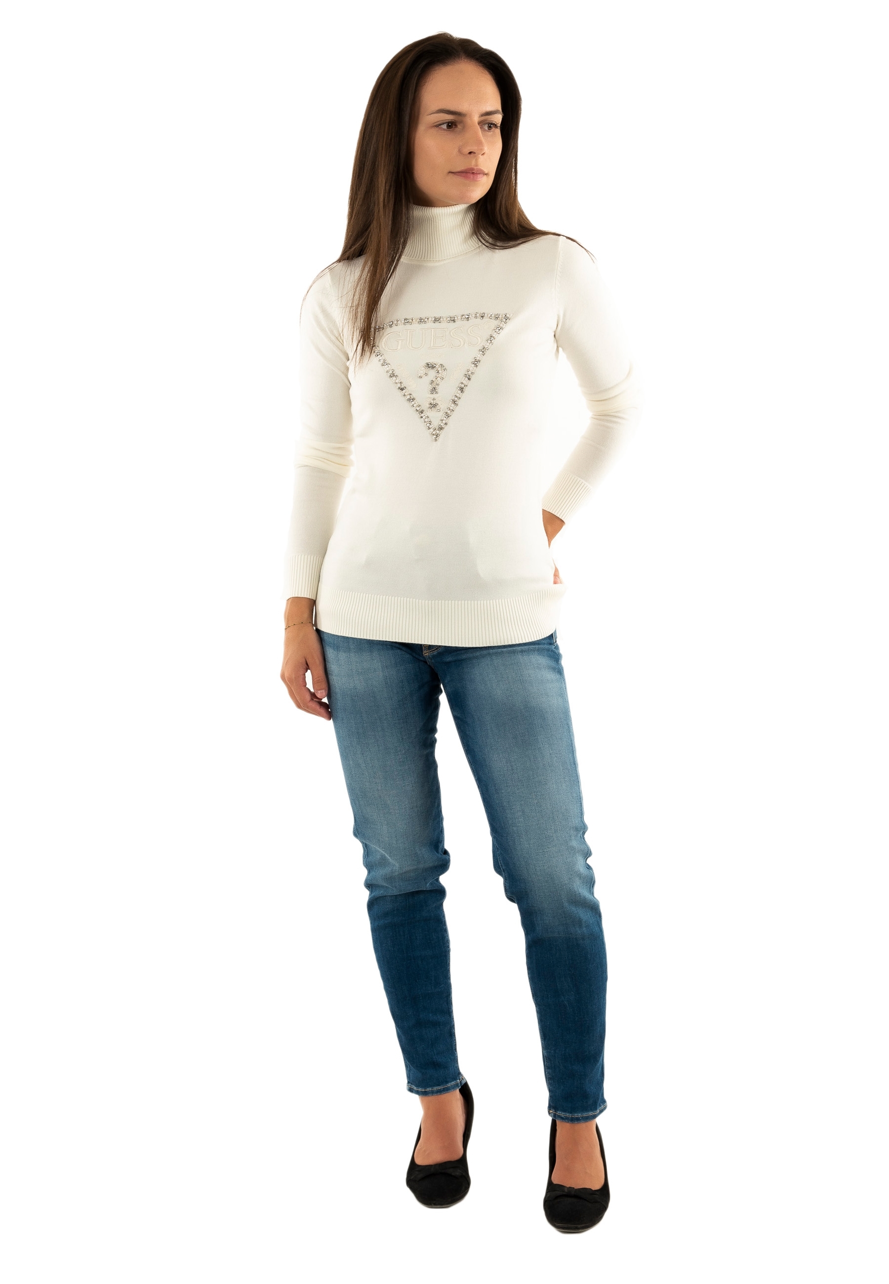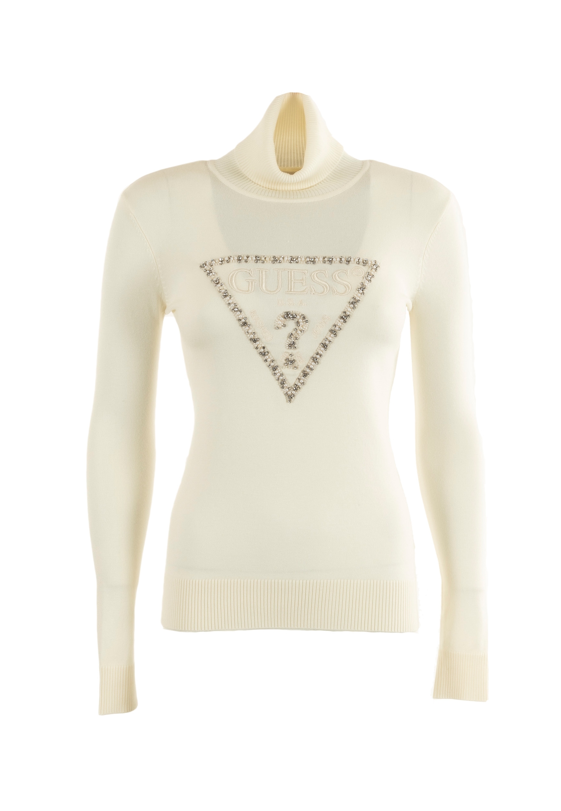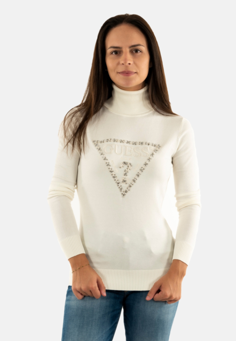 Pull hiver guess jeans melanie triangle g012 cream white