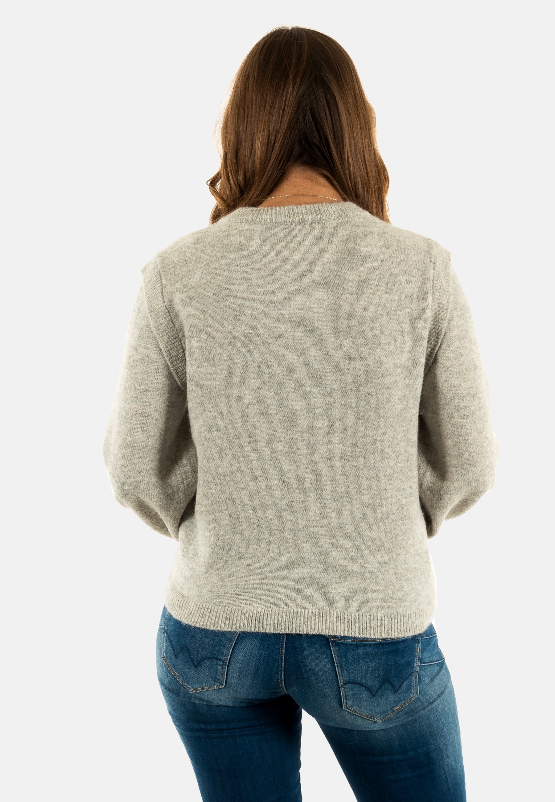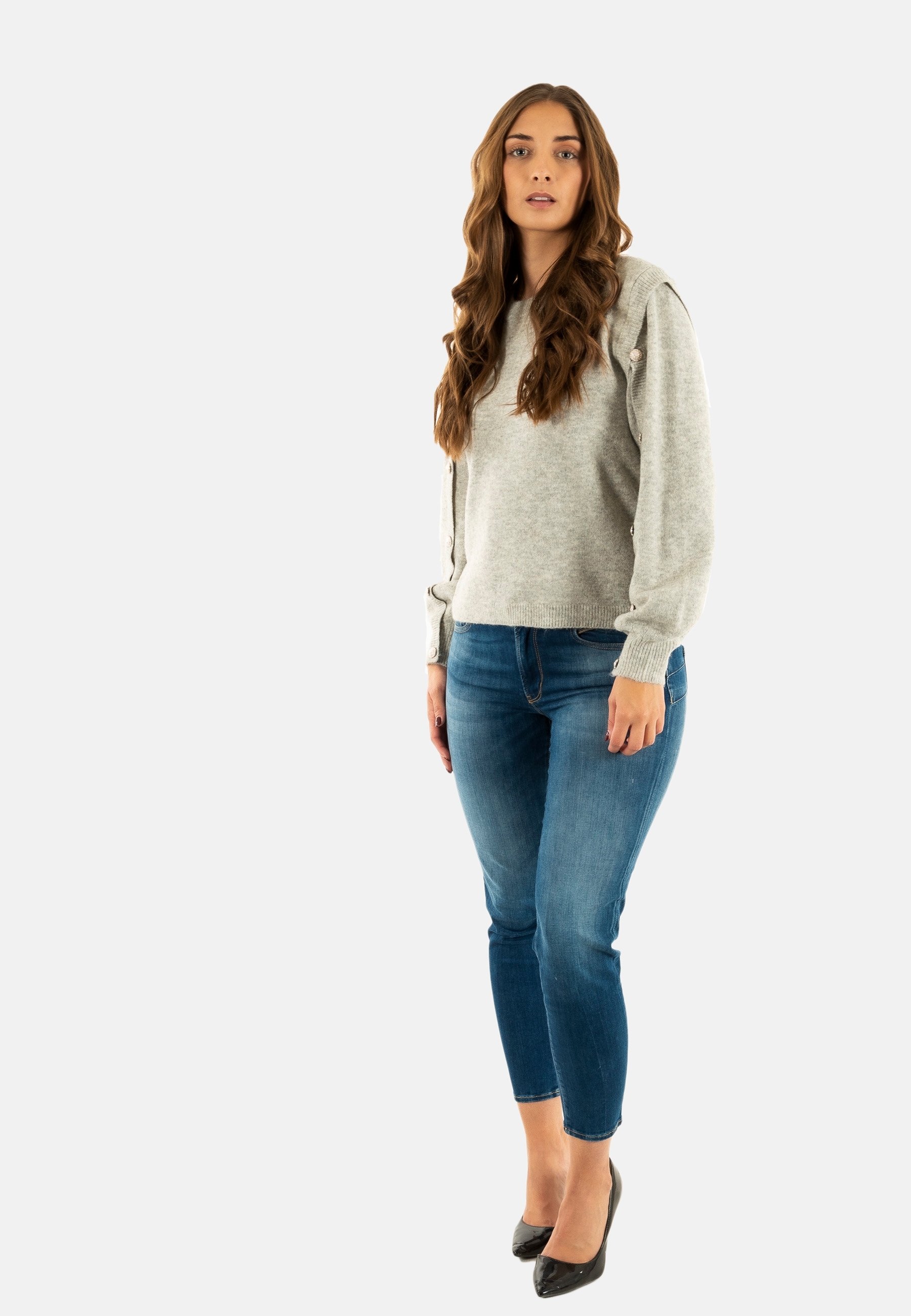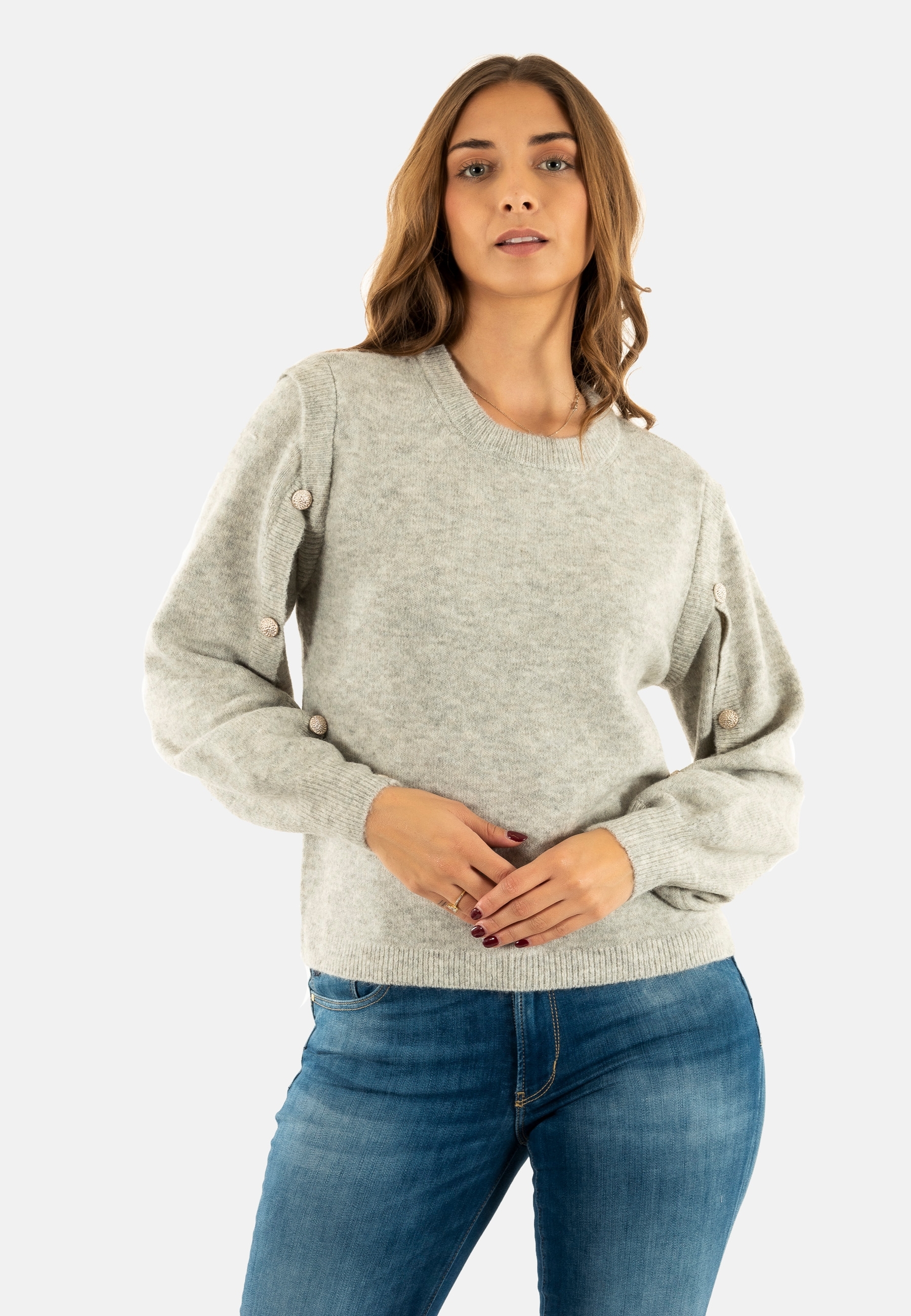 Pull hiver only rene light grey melange gold button