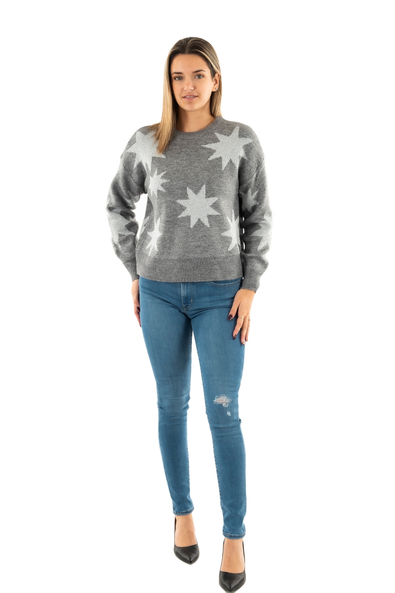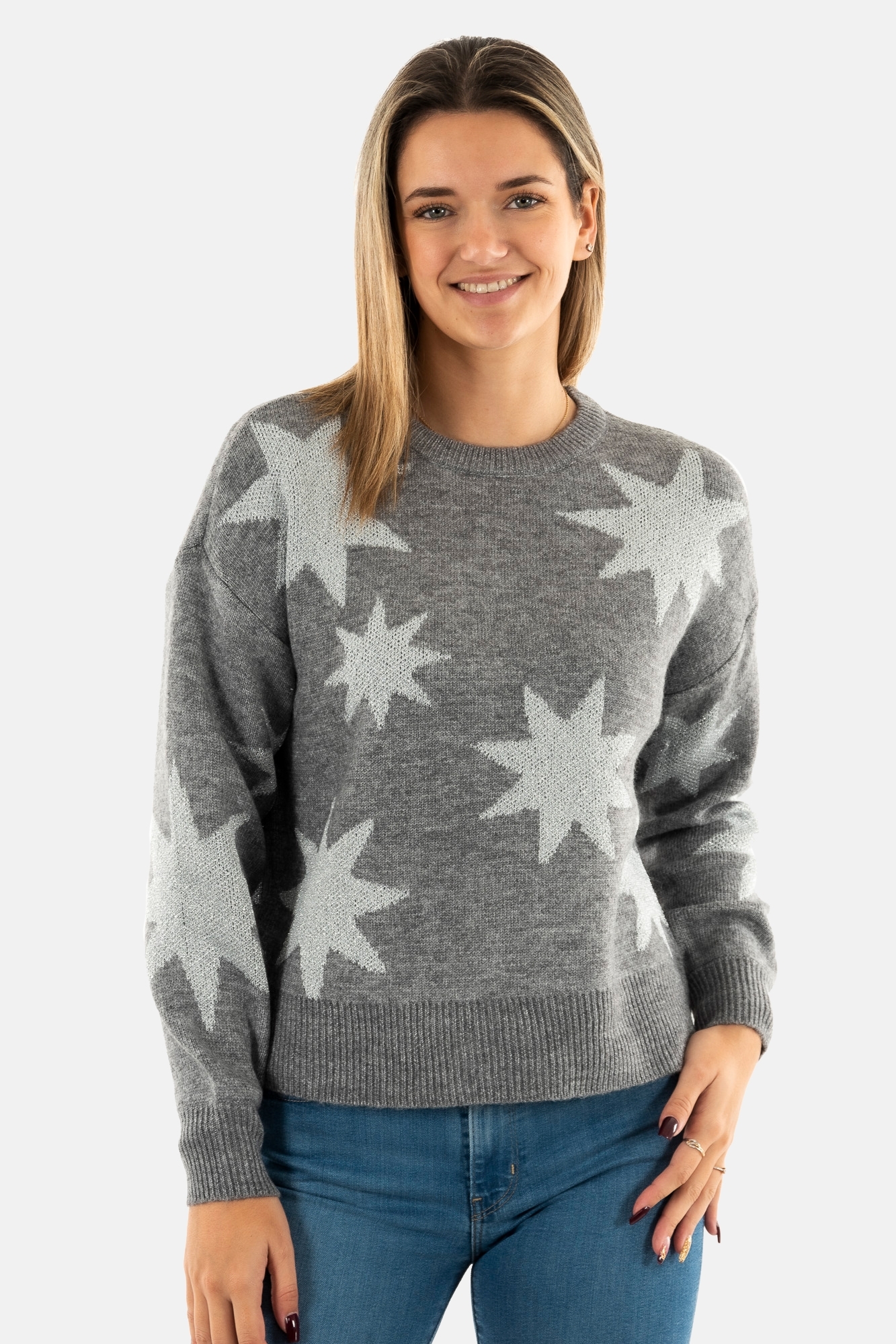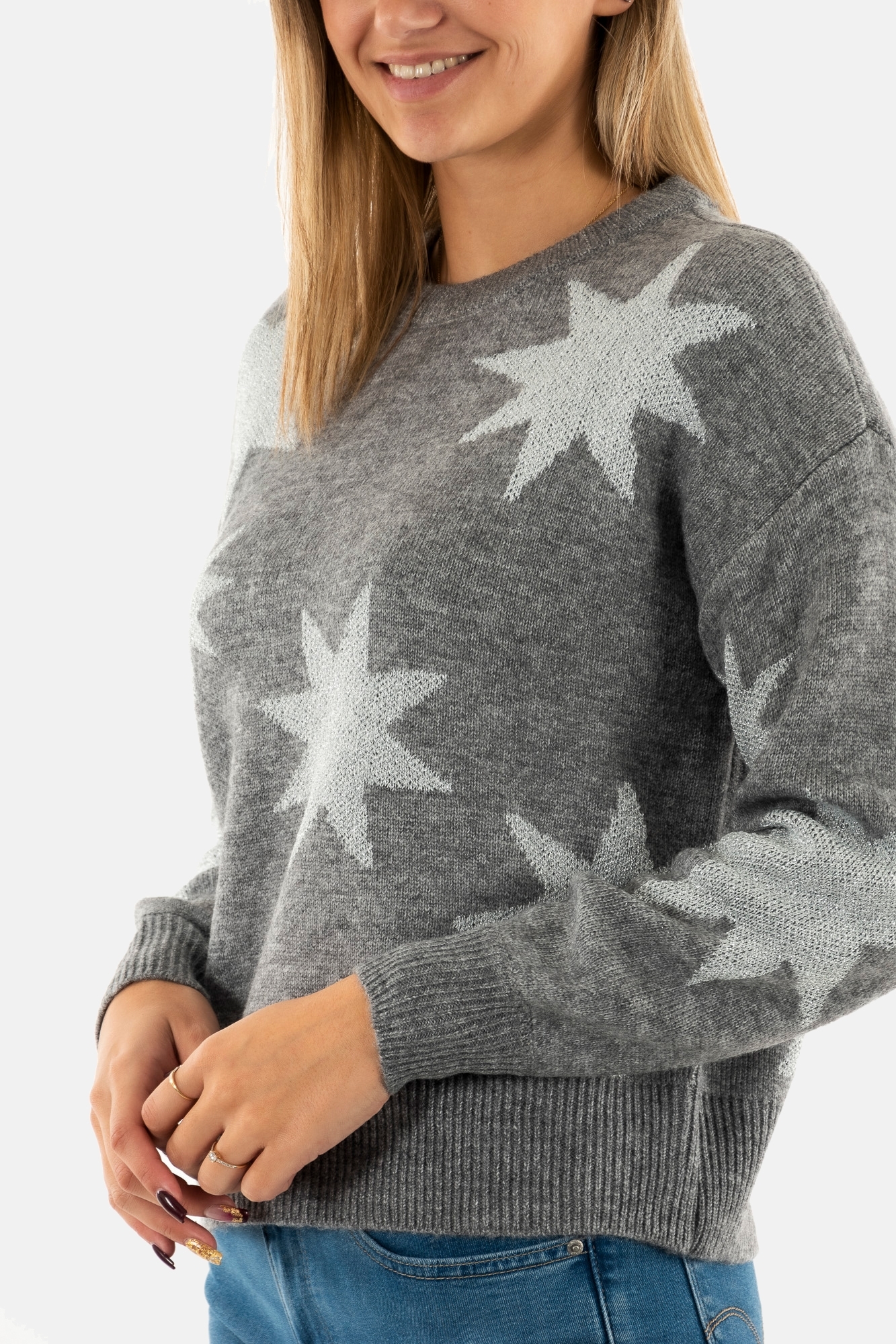 Pull hiver only rosie medium grey melange silver glitter