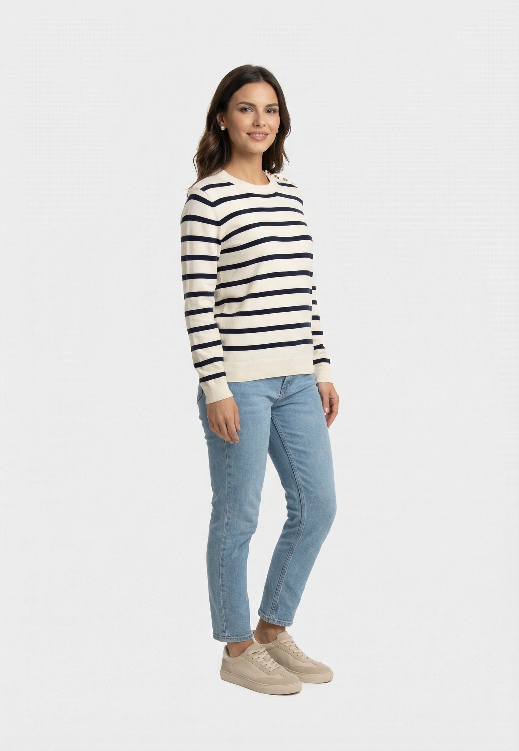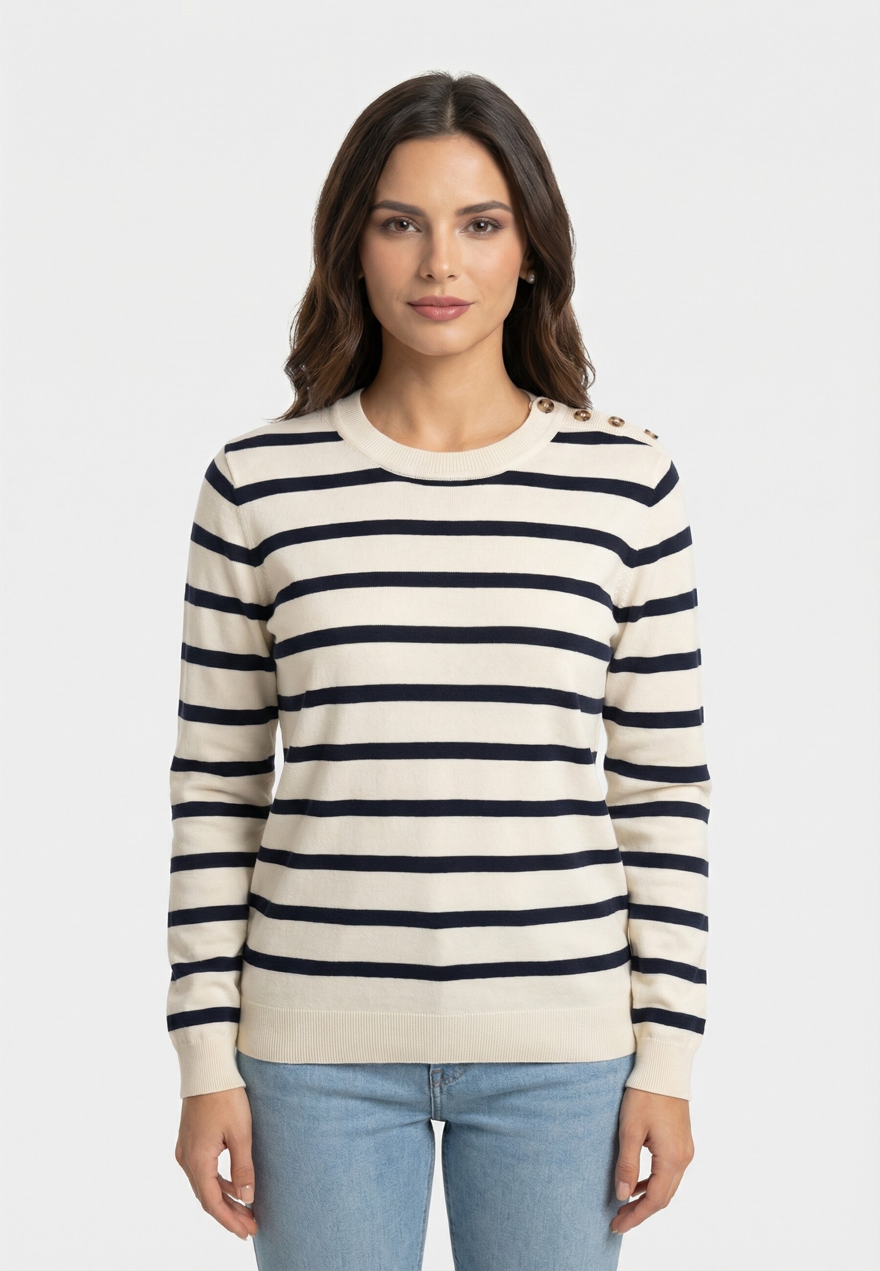 Pull leger superdry lw essential k3b cream richest navy stripe