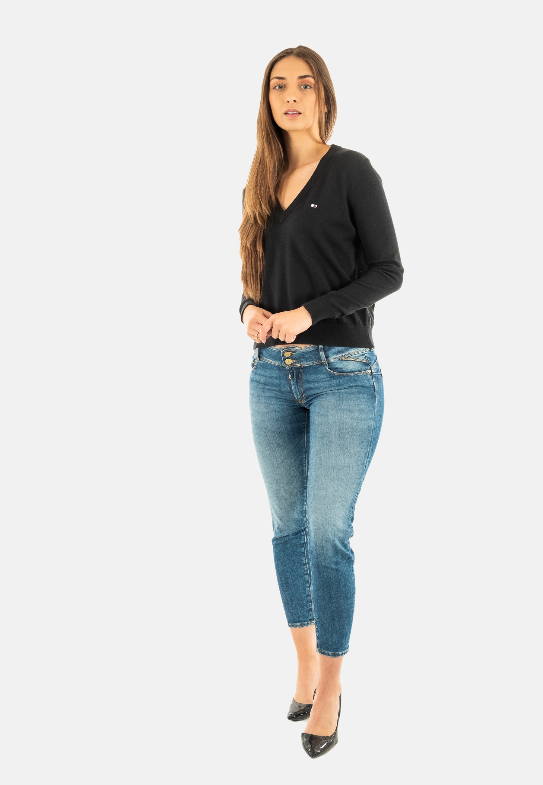 Pull leger tommy jeans essential vneck bds black