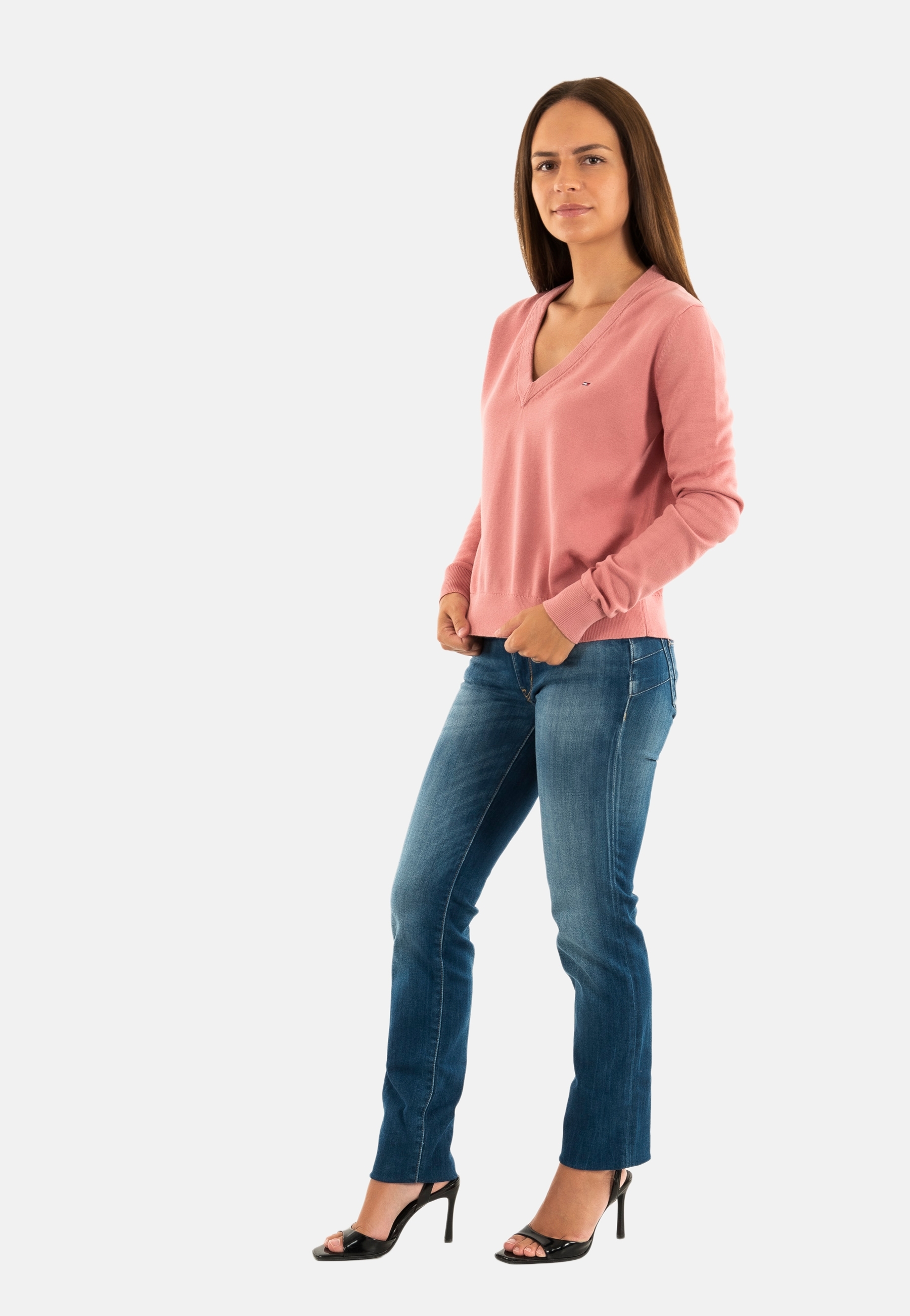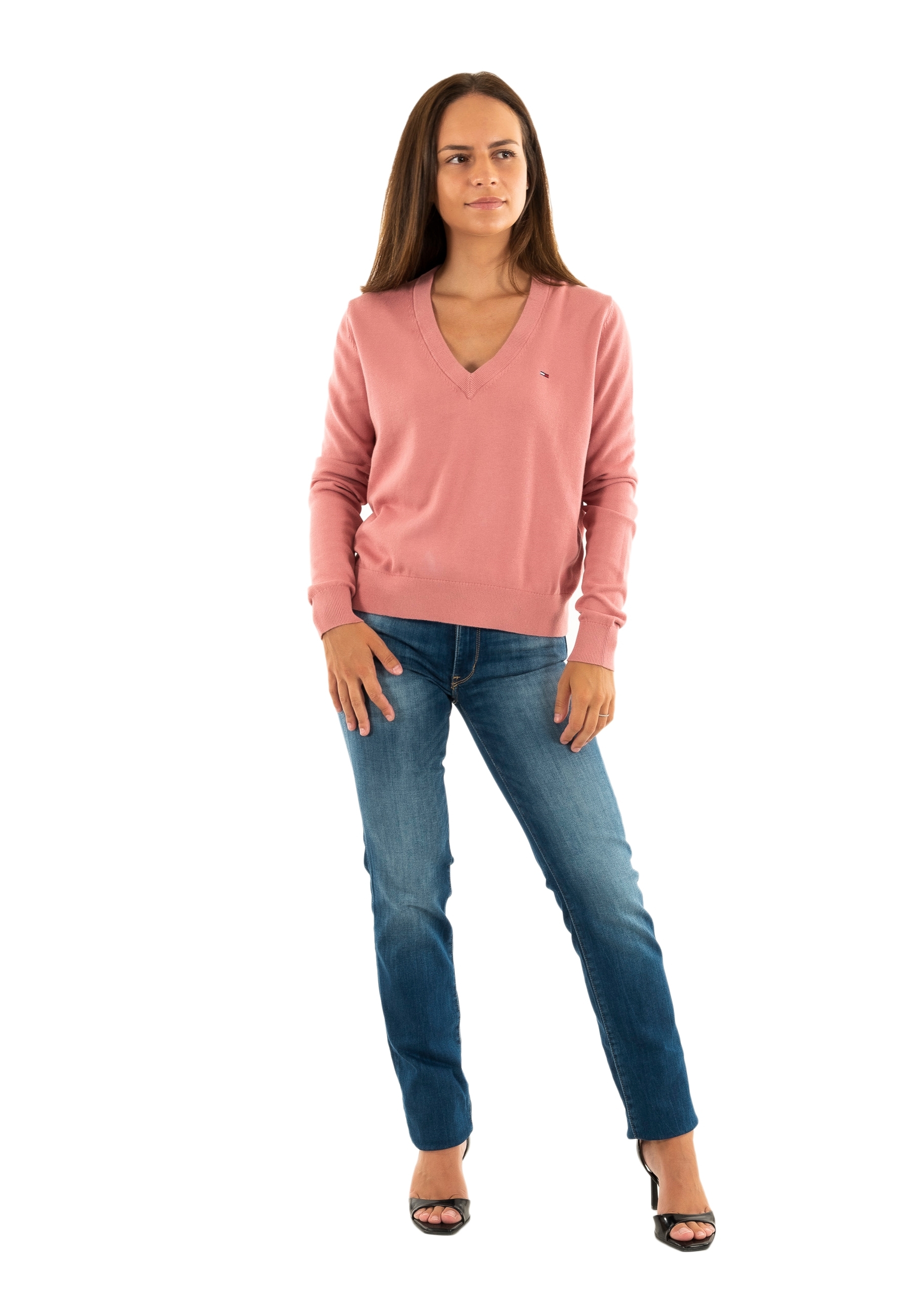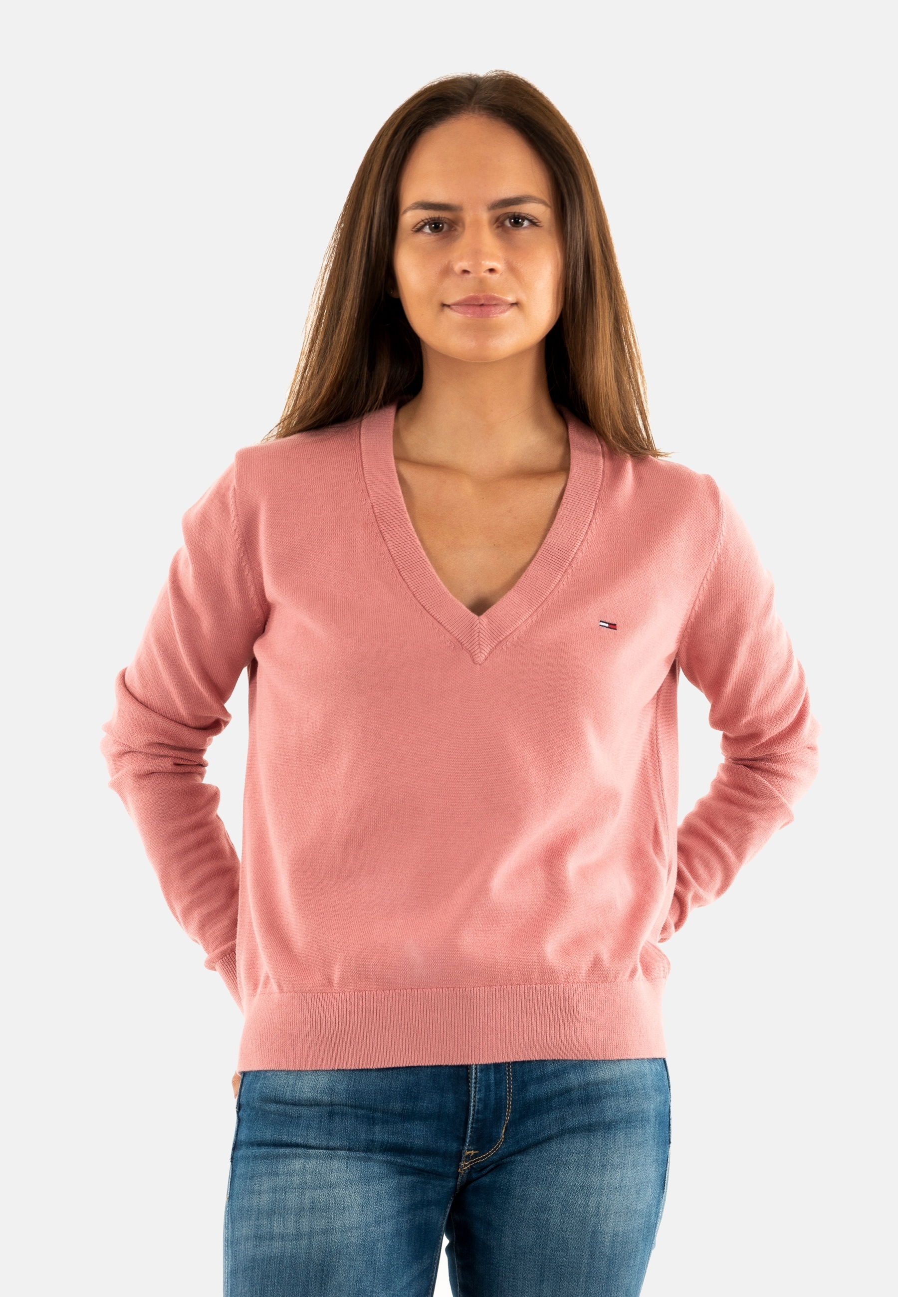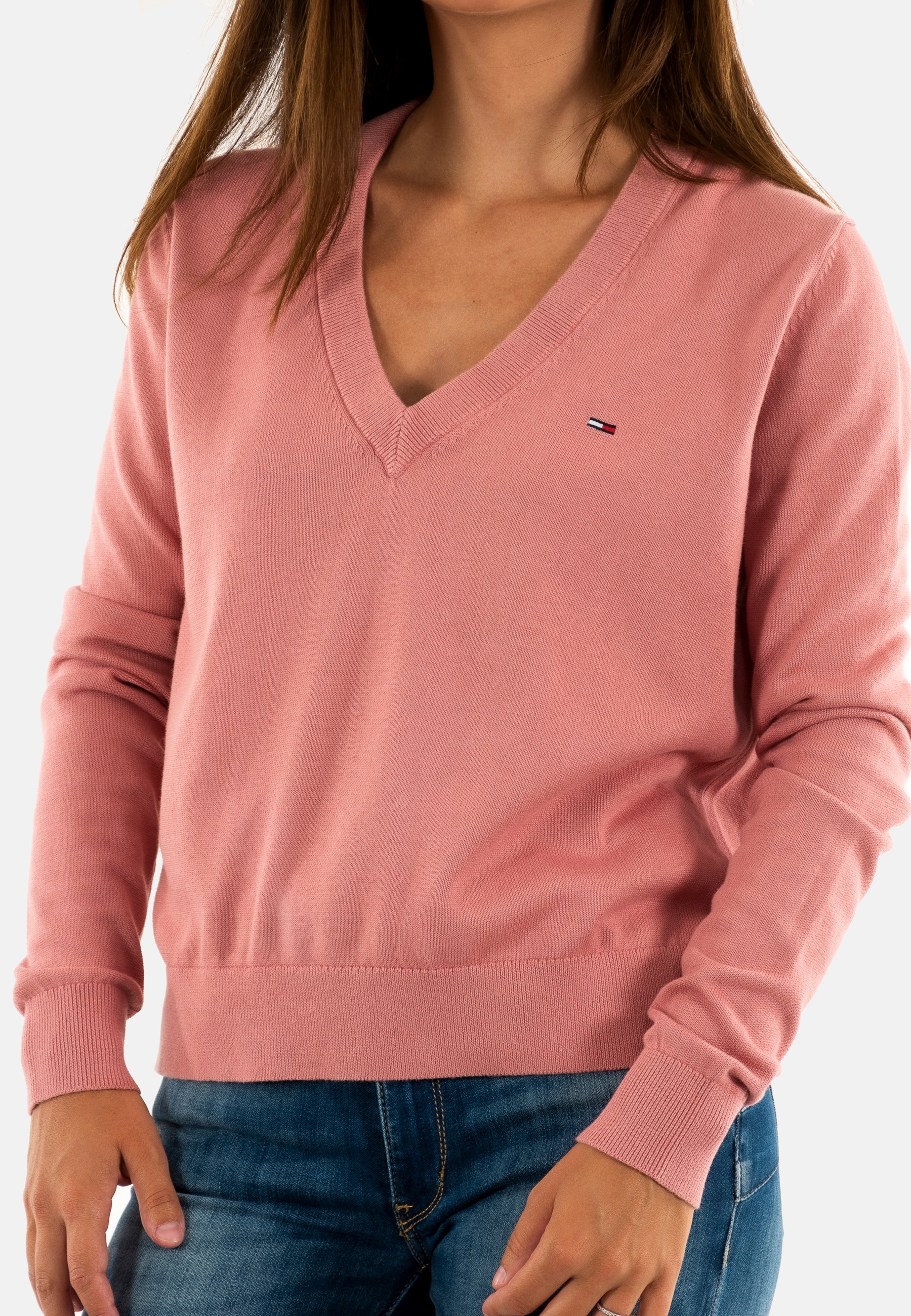Pull leger tommy jeans essential vneck ti0 tahiti berry