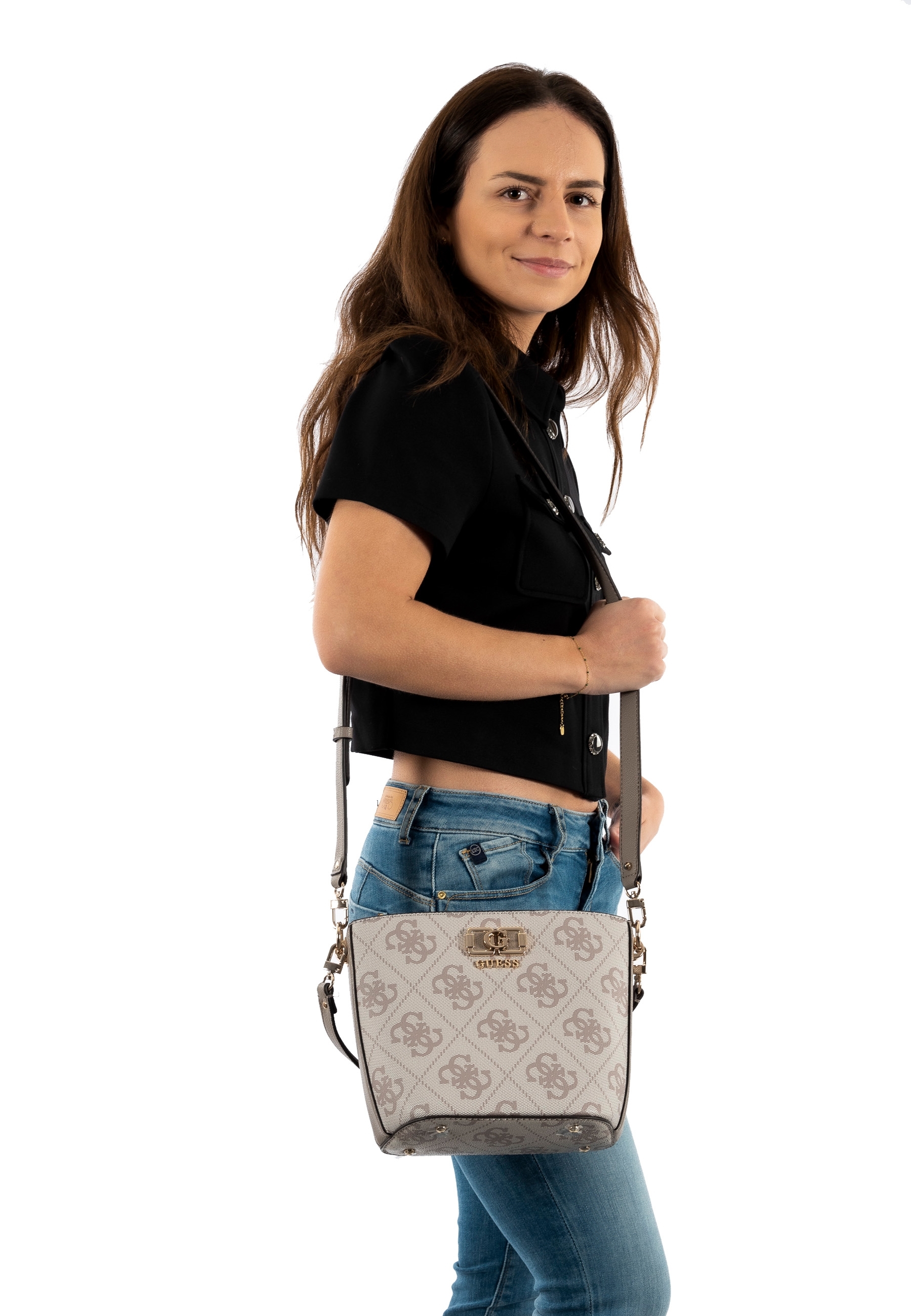 Sacs à main guess jeans karnilla logo bucket dark taupe logo