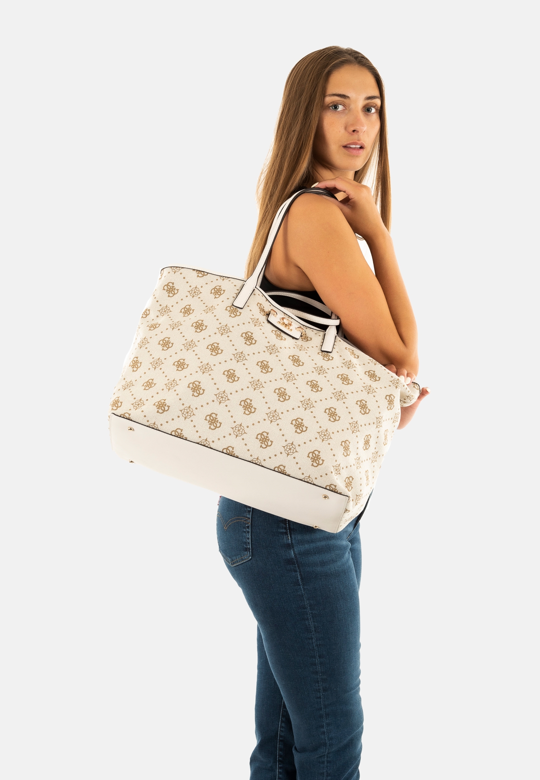 Sacs à main guess jeans neda large 2 in 1 tote off white logo