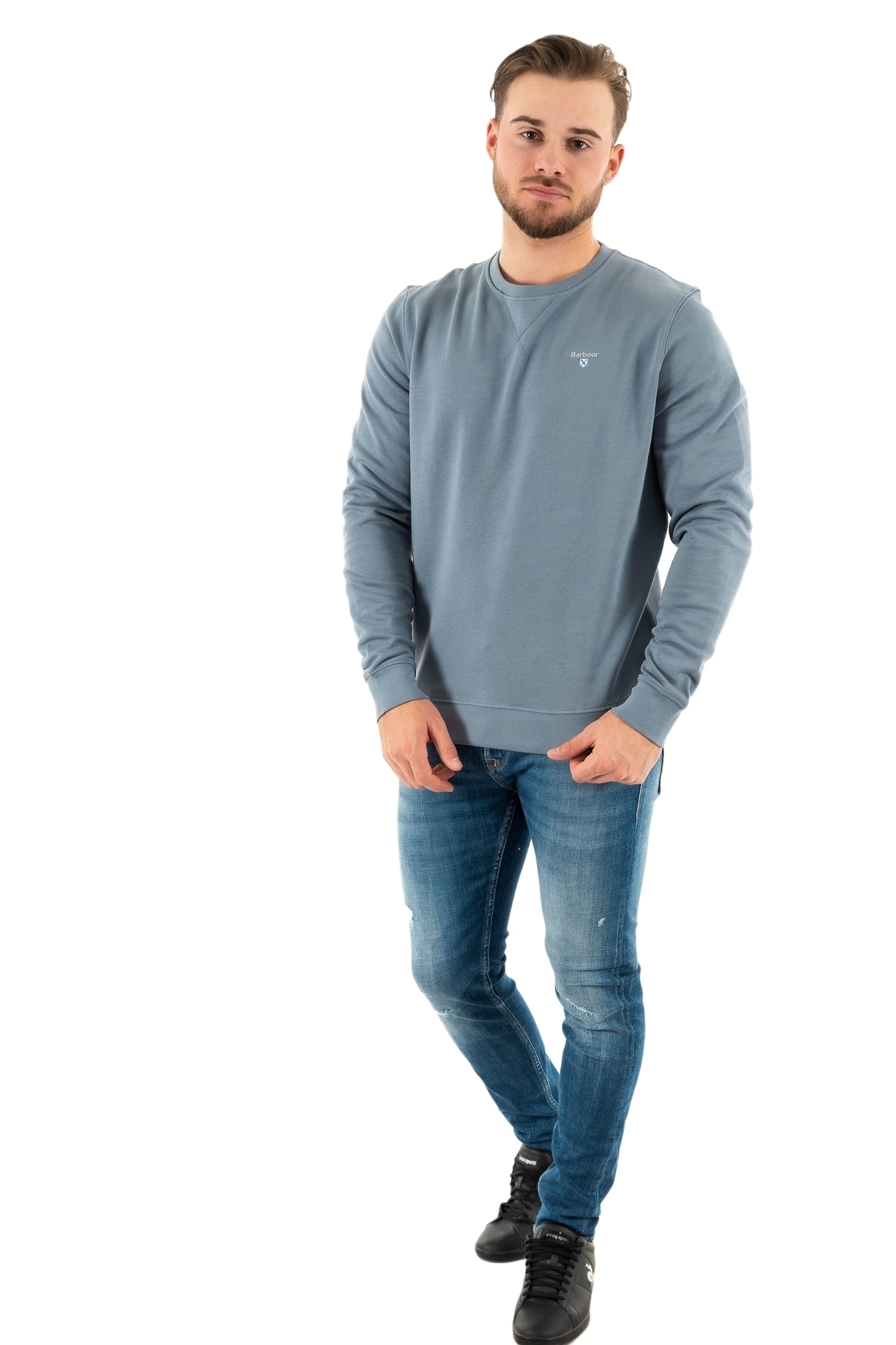sweat barbour ridsdale crew bl45 washed blue