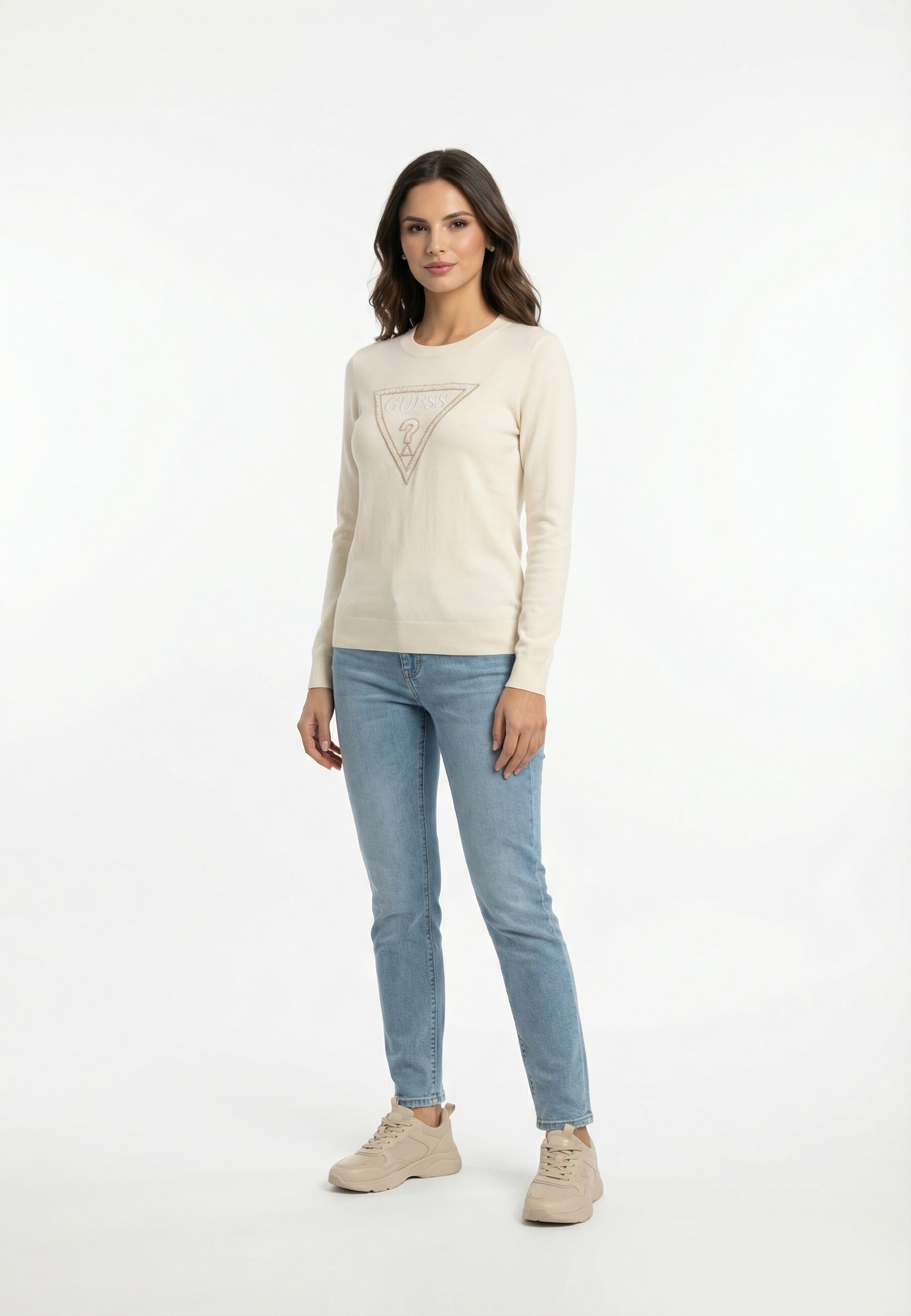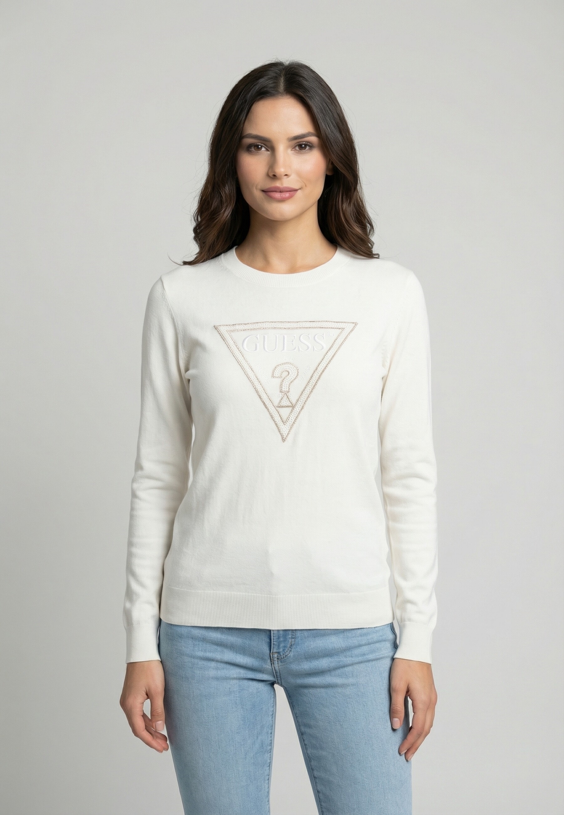 Le pull col rond avec logo triangle pour femme de la marque Guess, modèle Macie, incarne l'élégance moderne tout en offrant un confort inégalé. Conçu pour les femmes qui recherchent à la fois style et fonctionnalité, ce pull est un incontournable de votre garde-robe.