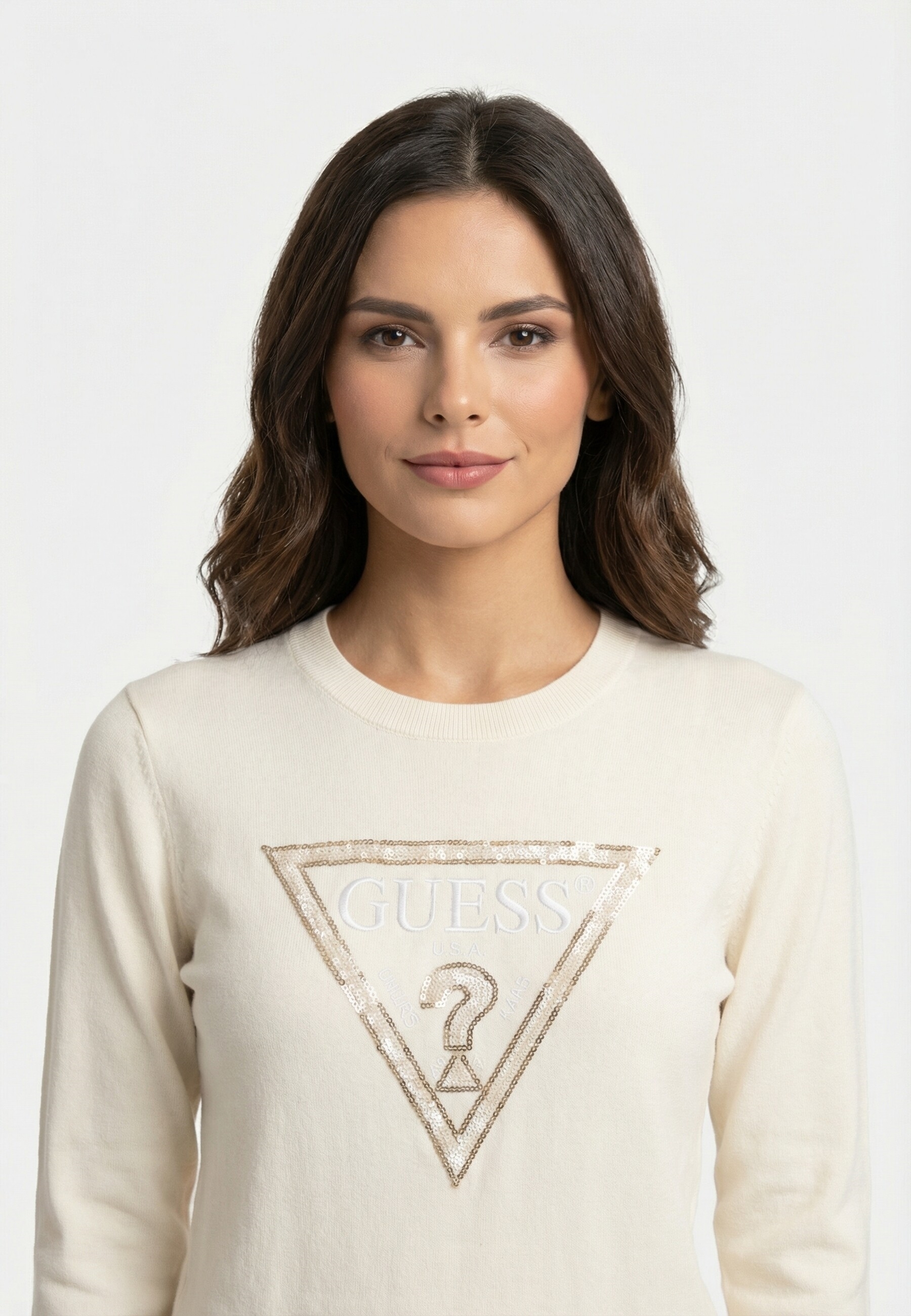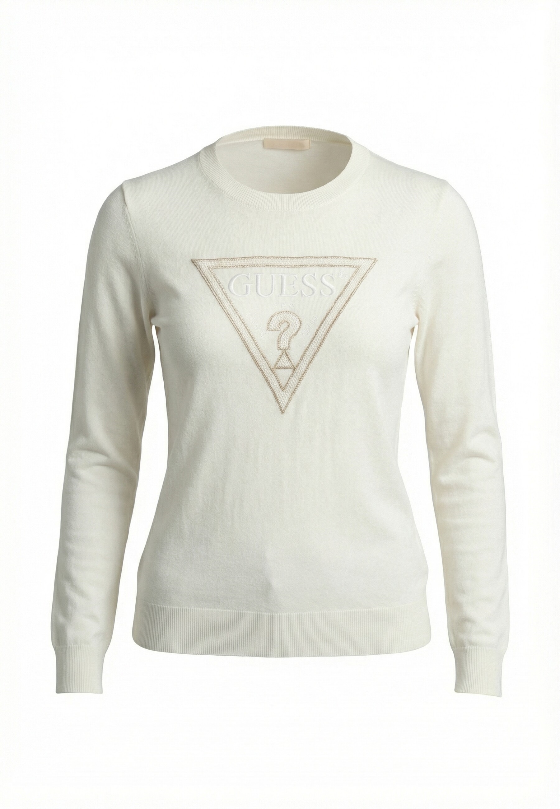 Le logo triangle emblématique de Guess vient se poser délicatement sur le pull, apportant une touche de sophistication tout en affirmant votre style. Ce détail ajoute non seulement du caractère à la pièce, mais témoigne également de l'authenticité de la marque.