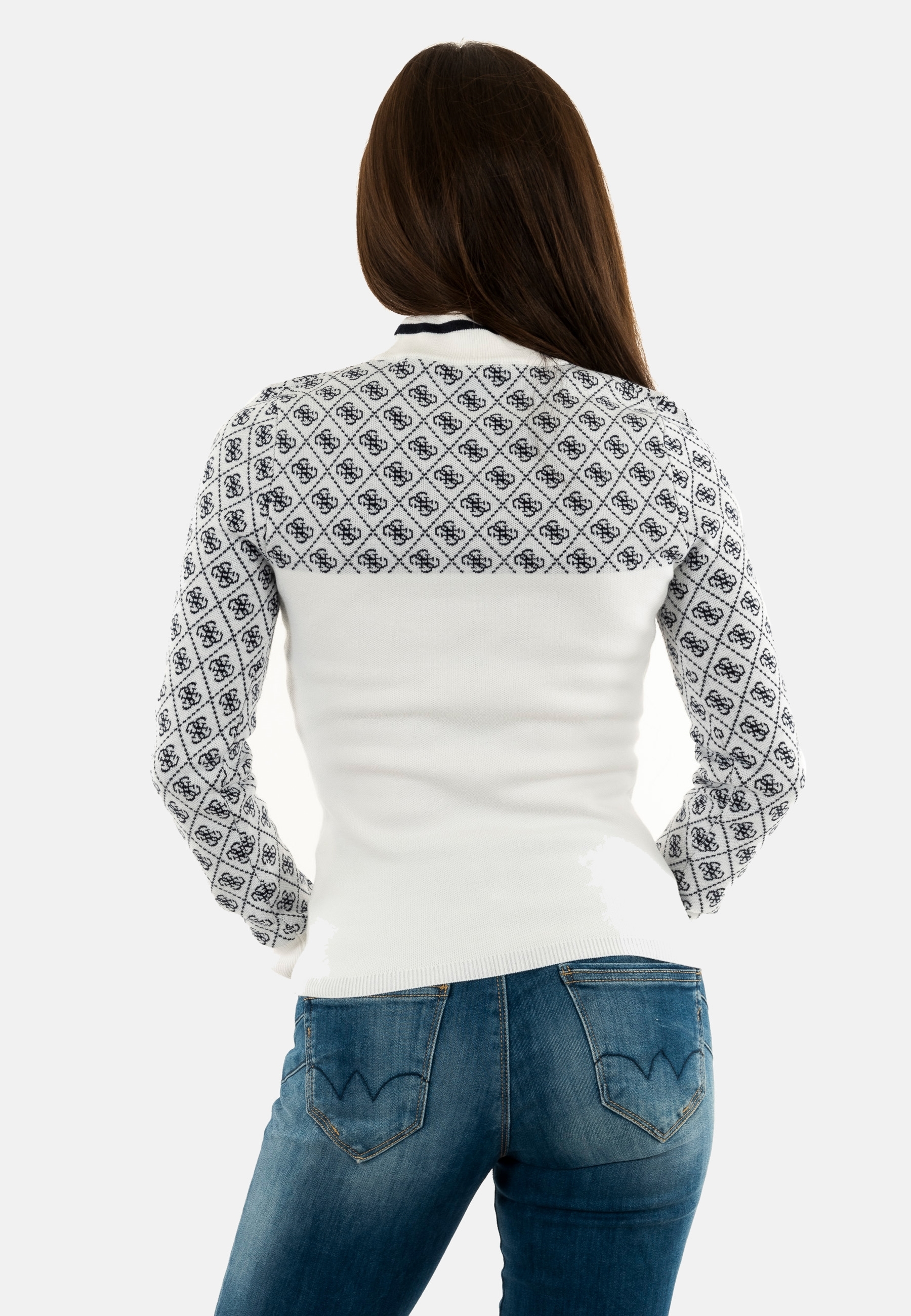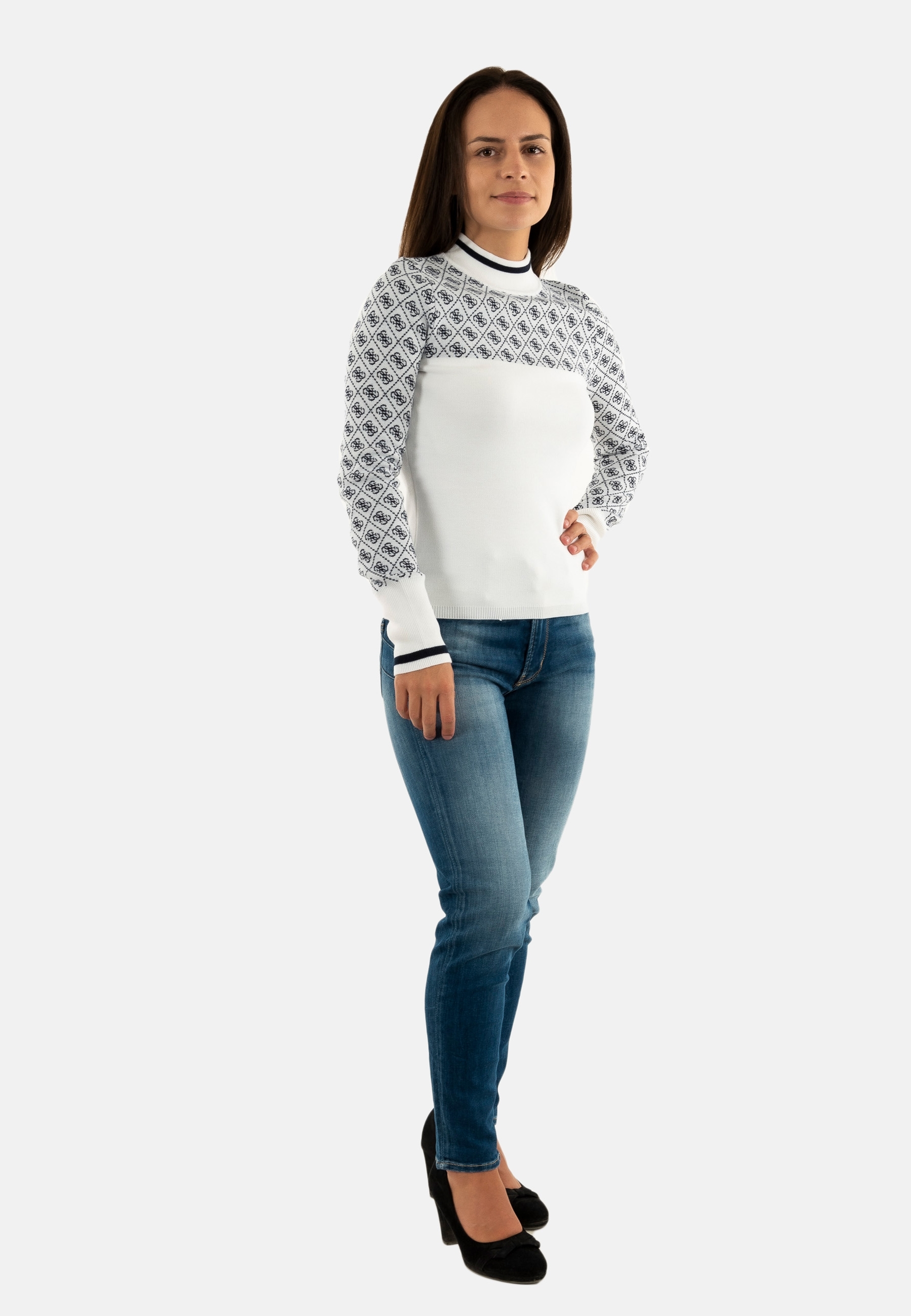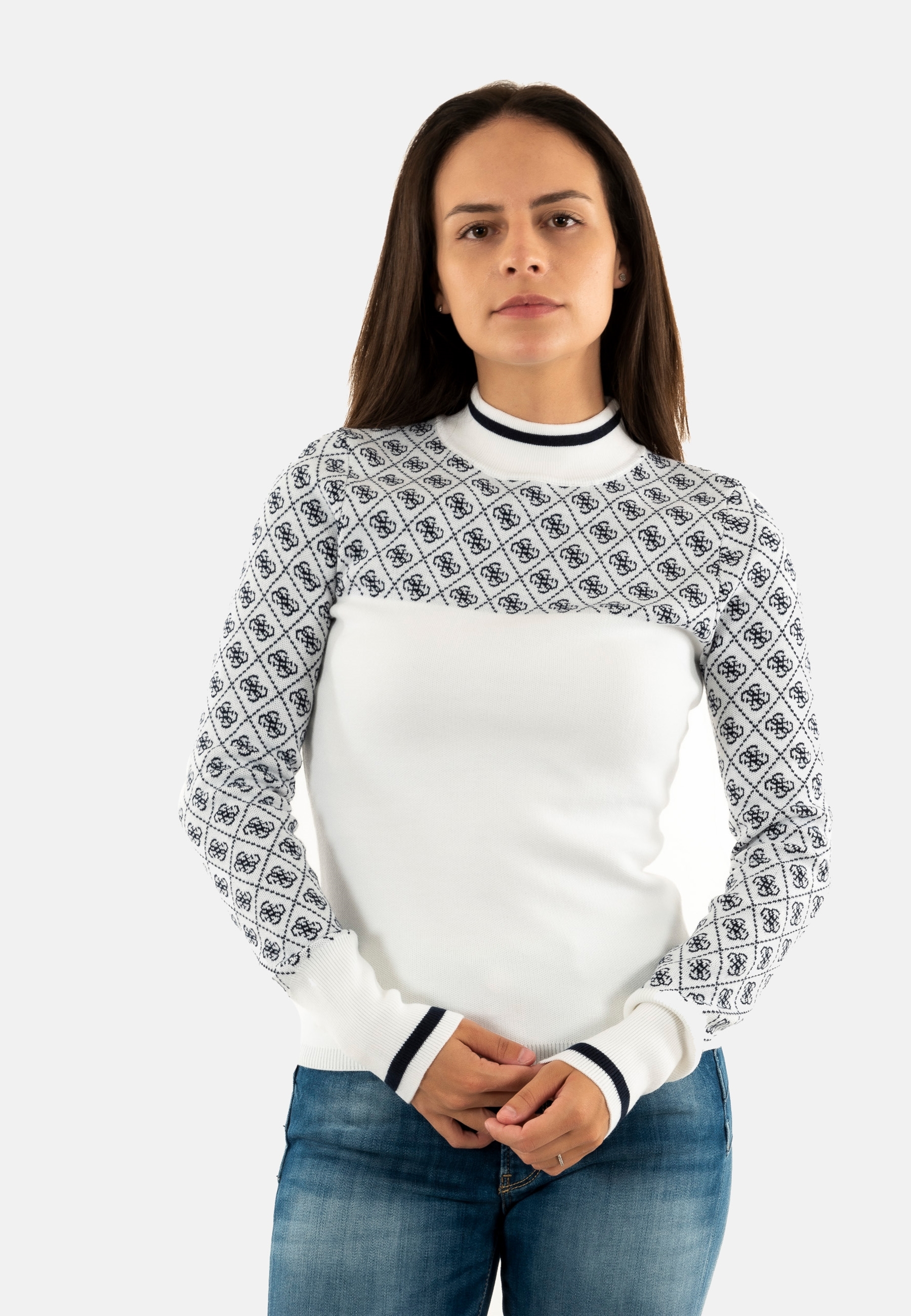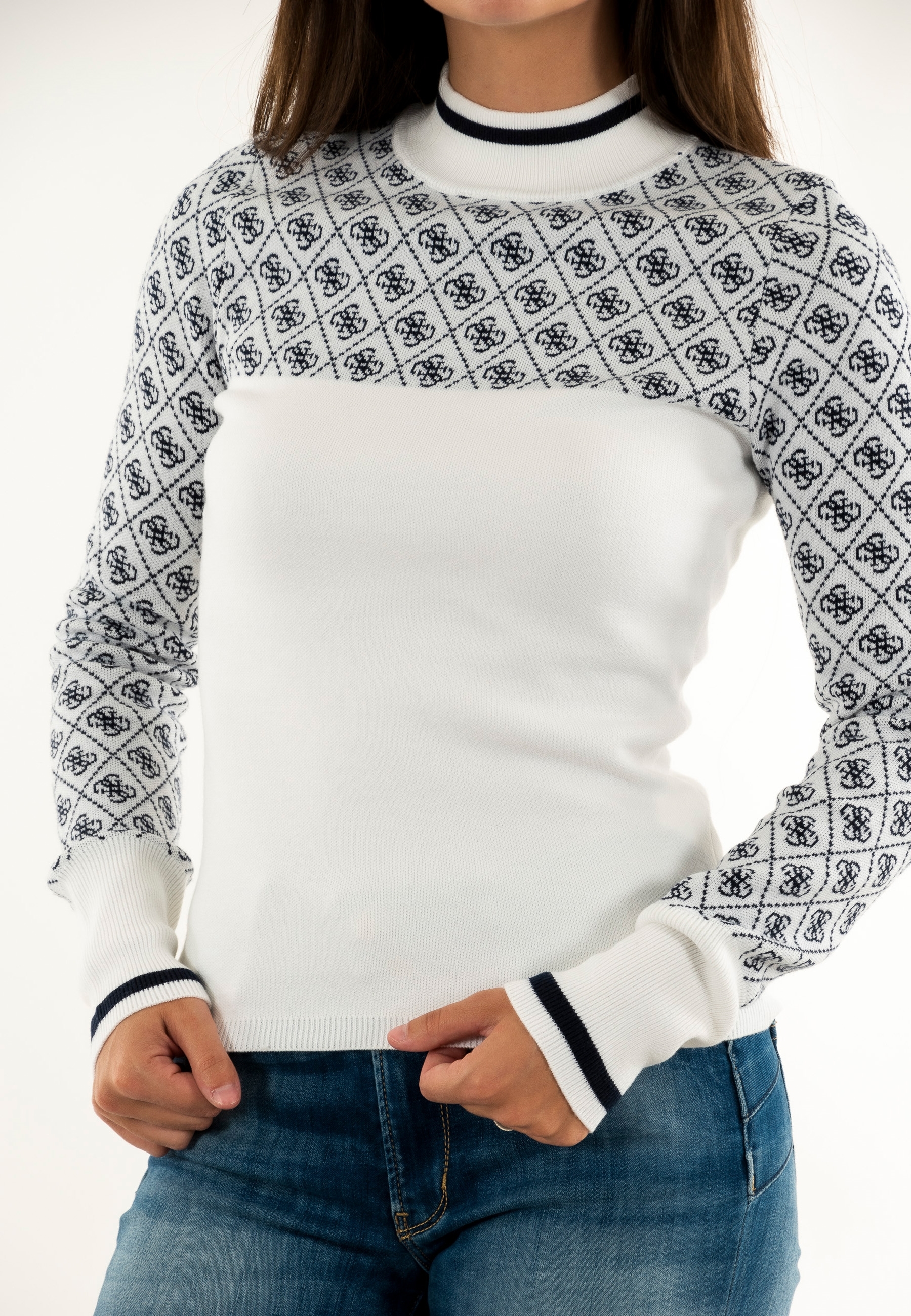 Sweat guess jeans mock neck aubrey f0yu 4g cream and blue