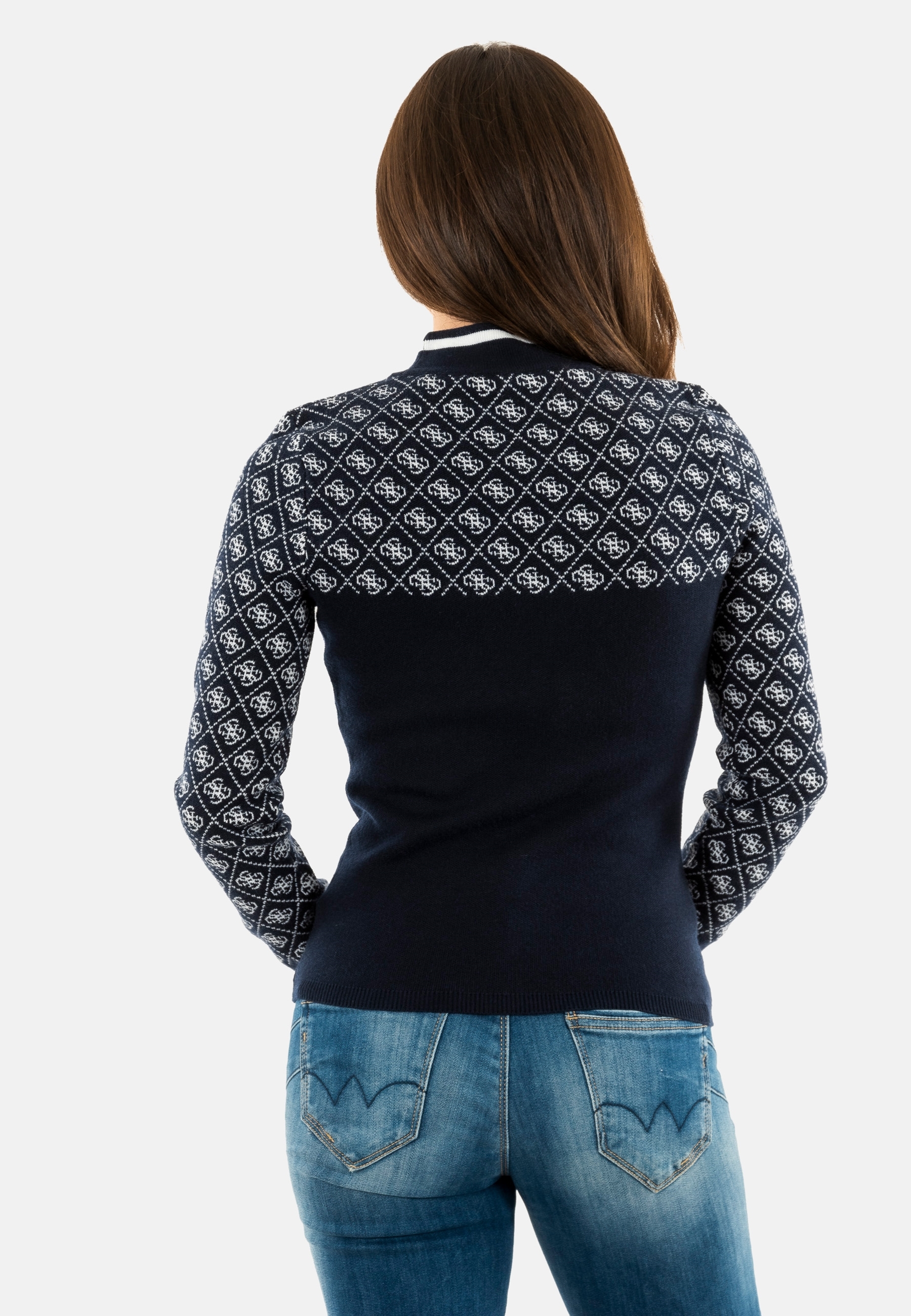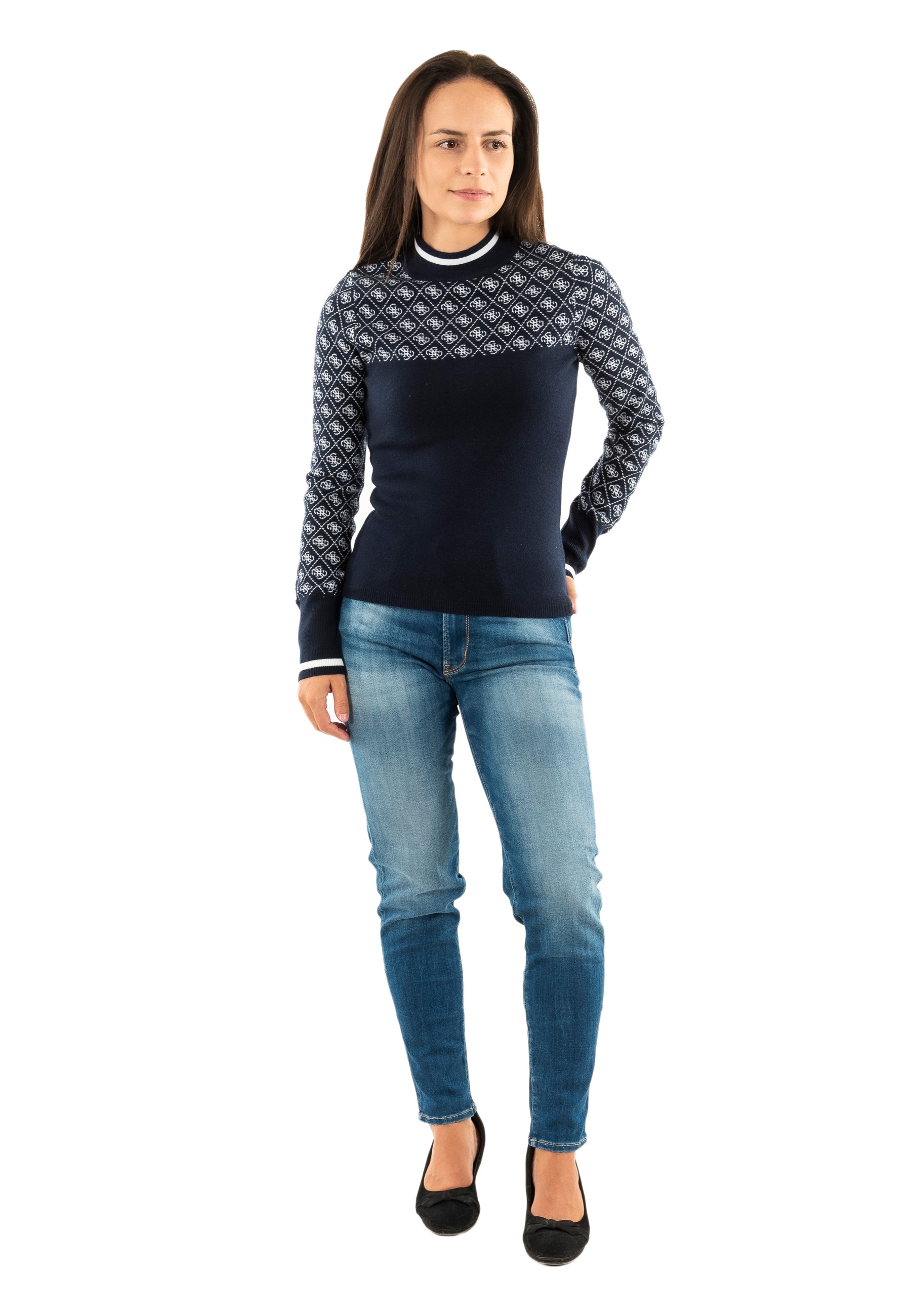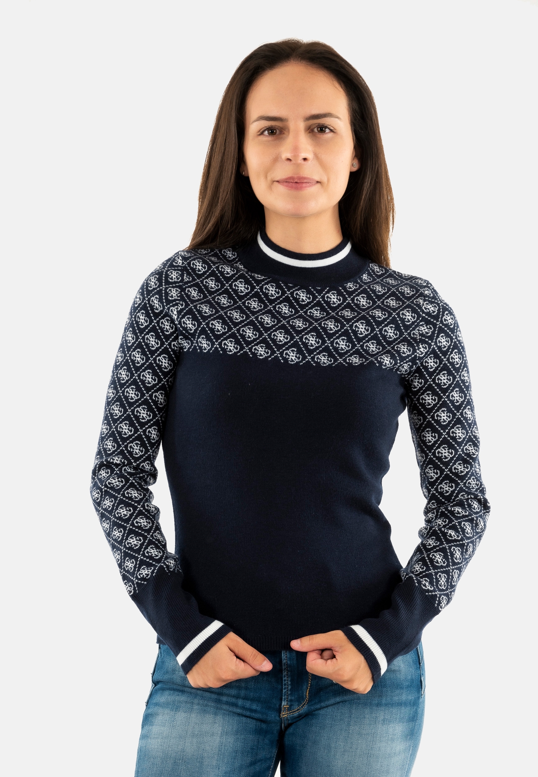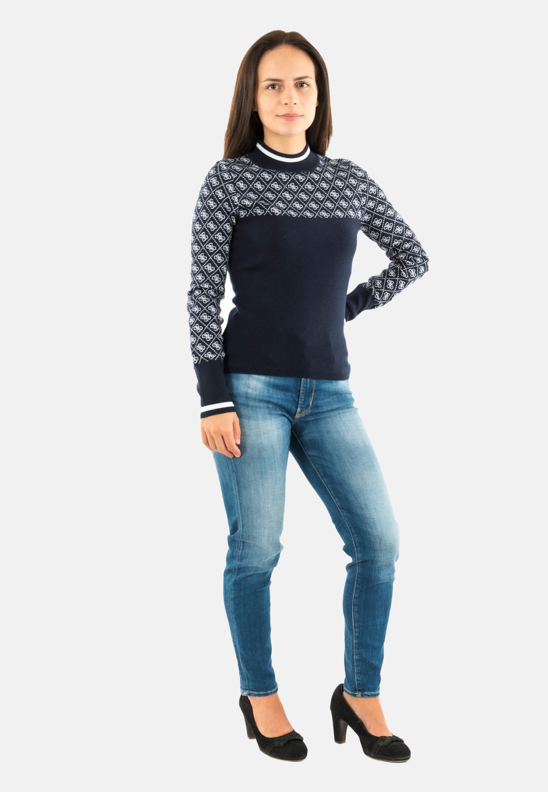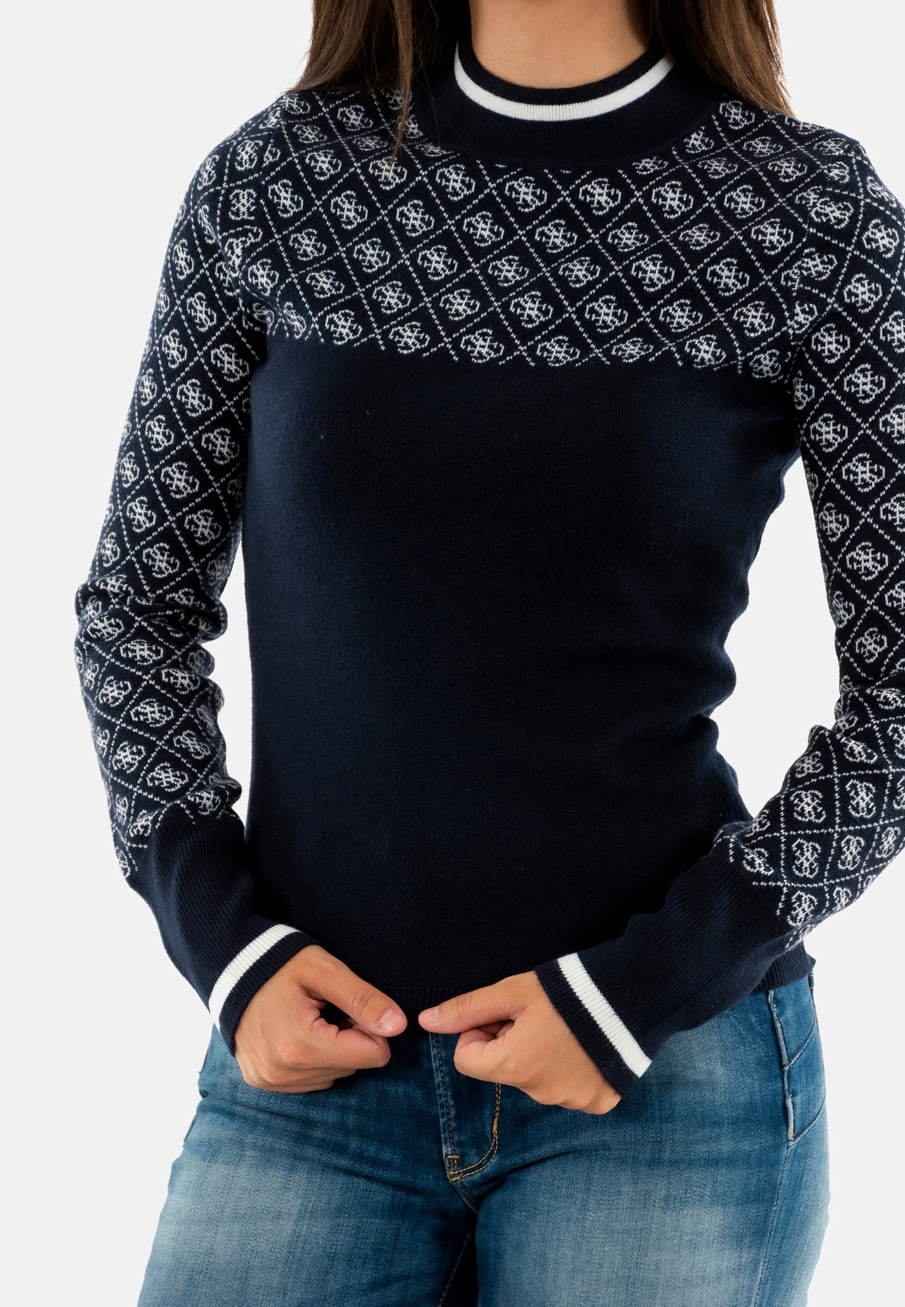 Sweat guess jeans mock neck aubrey fbdi 4g blue and cream