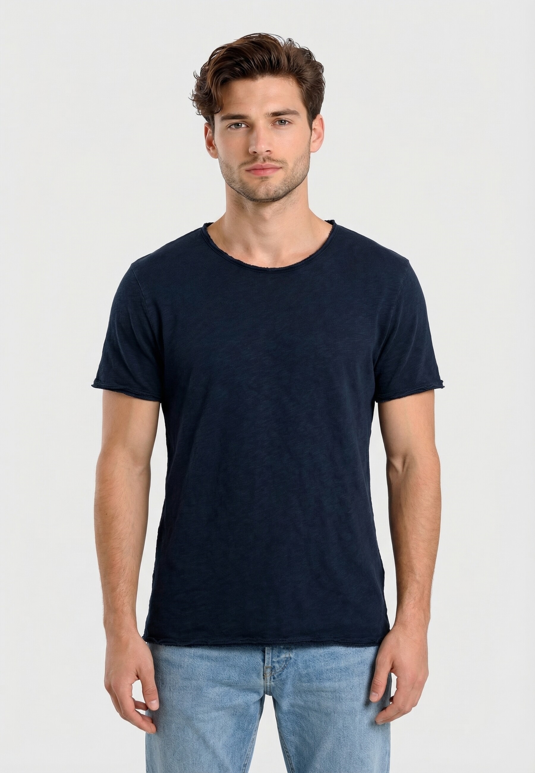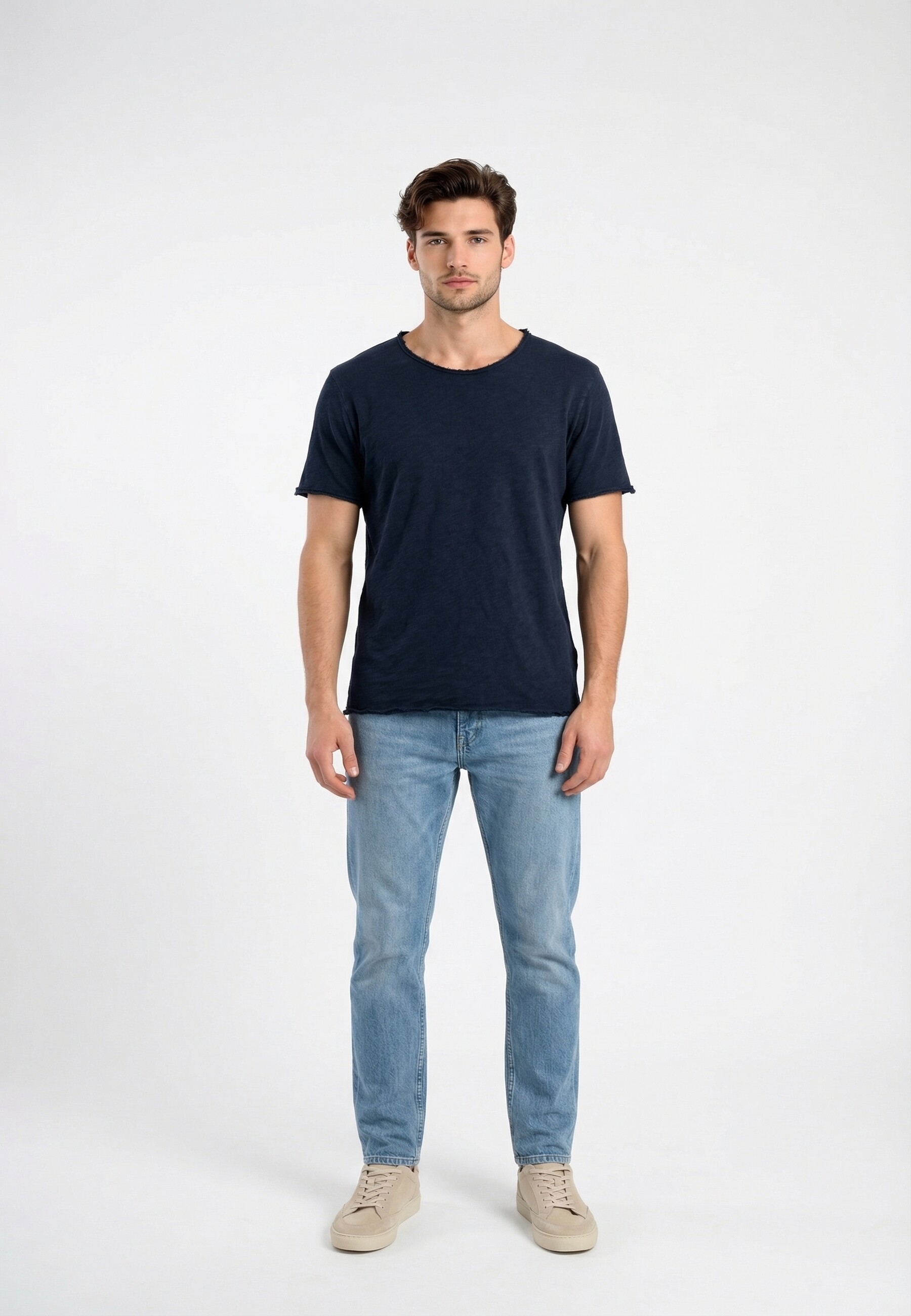 Avec sa coupe droite et ses bords à vifs, il se porte facilement et se décline dans des couleurs intemporelles.