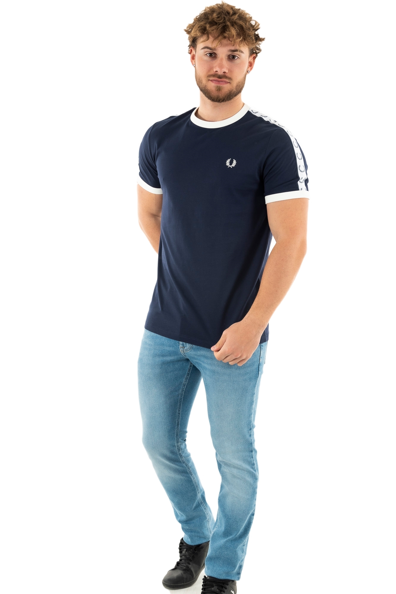 Tee shirt fred perry taped ringer 266 carbon blue