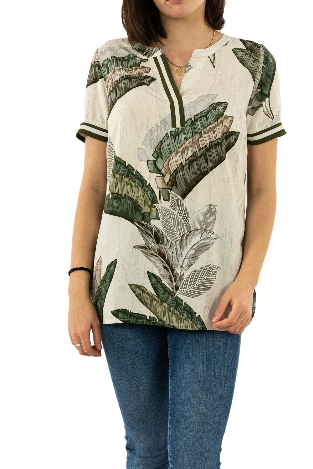 tee shirt geisha 03216-20 000010 - off-white/green combi
