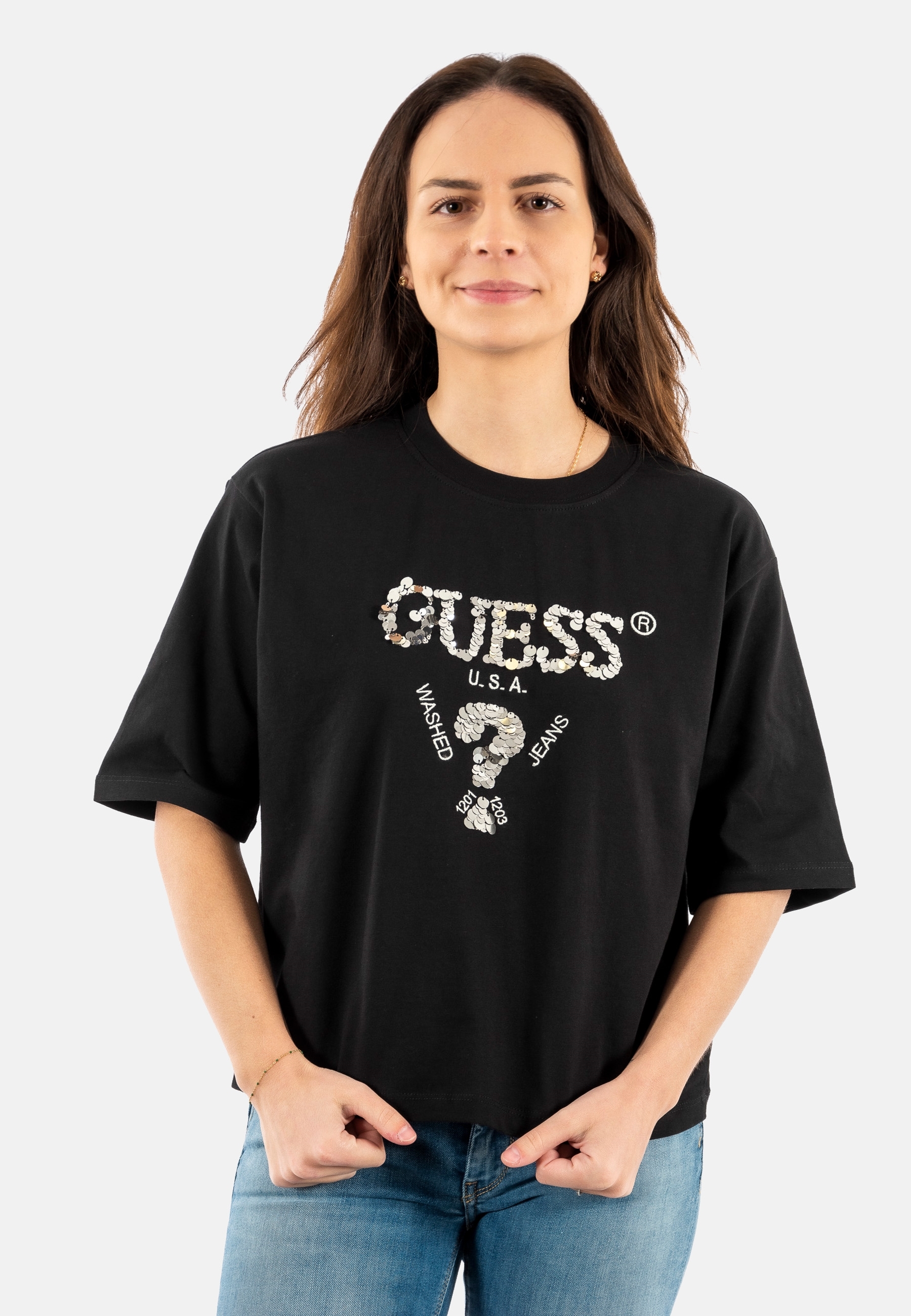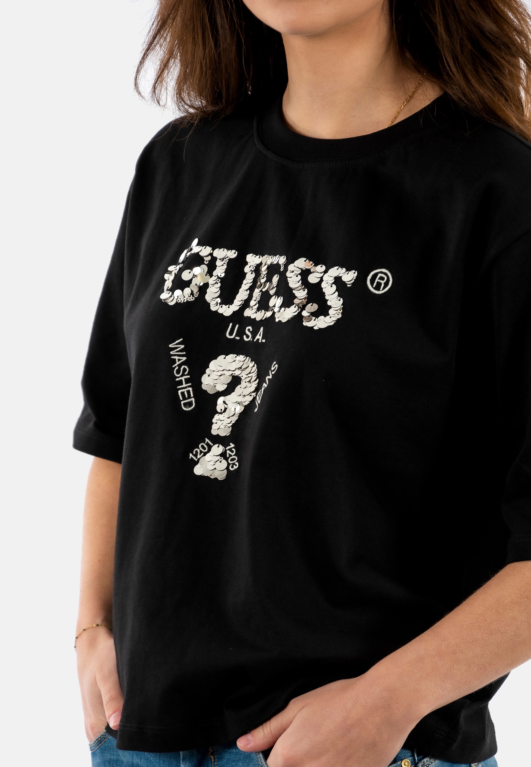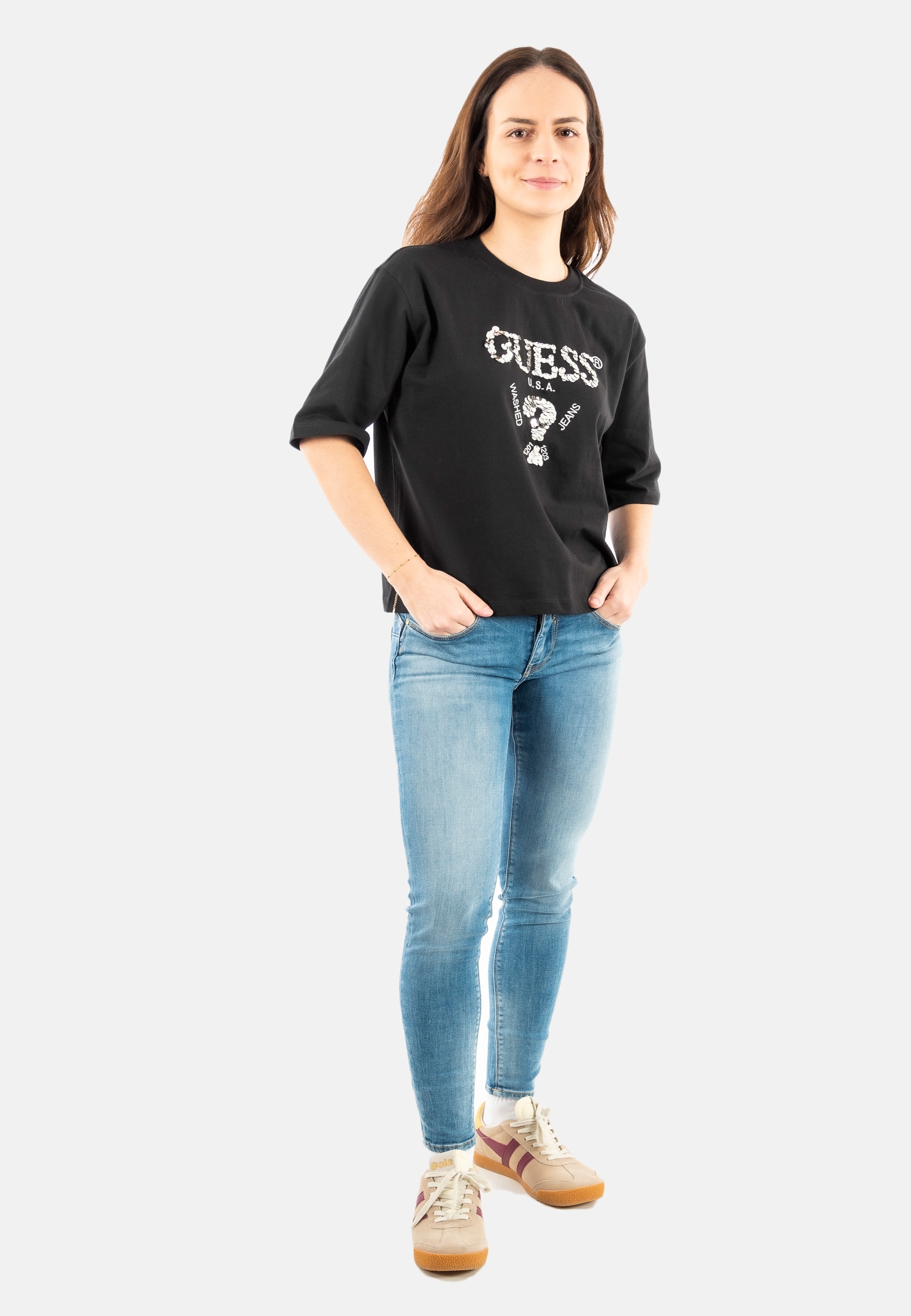Tee shirt guess jeans aurelie fj8n black and salt multi