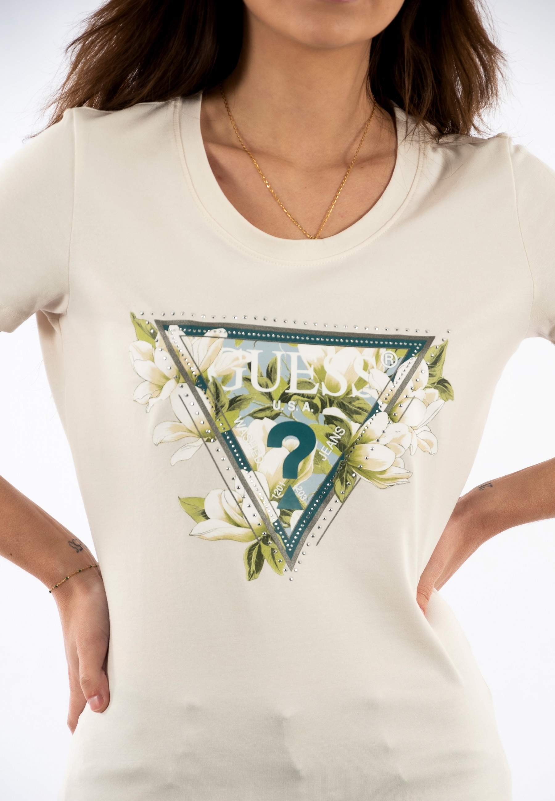 Tee shirt guess jeans camelia g012 cream white