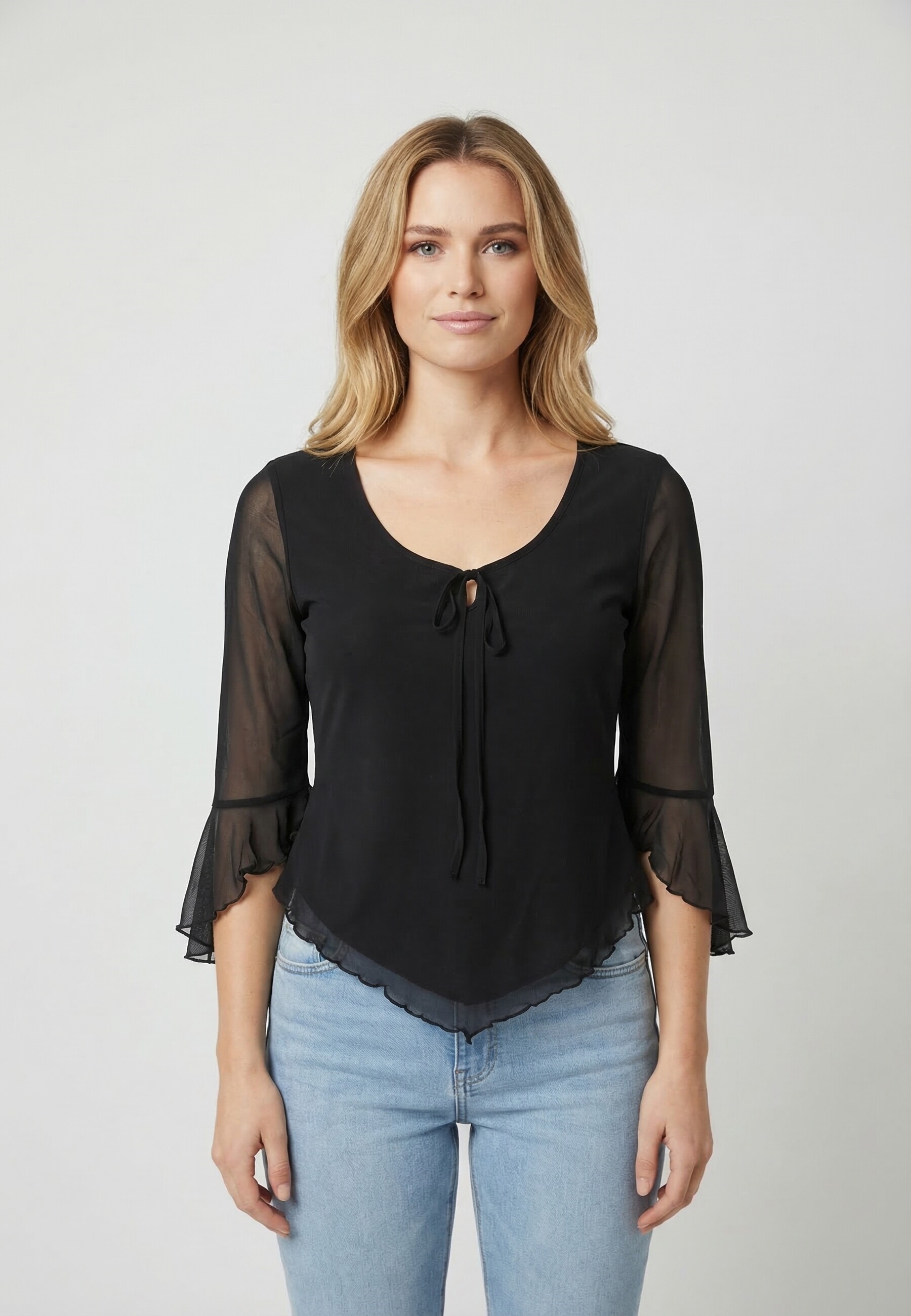 Tee shirt guess jeans serafina mesh jblk jet black a996