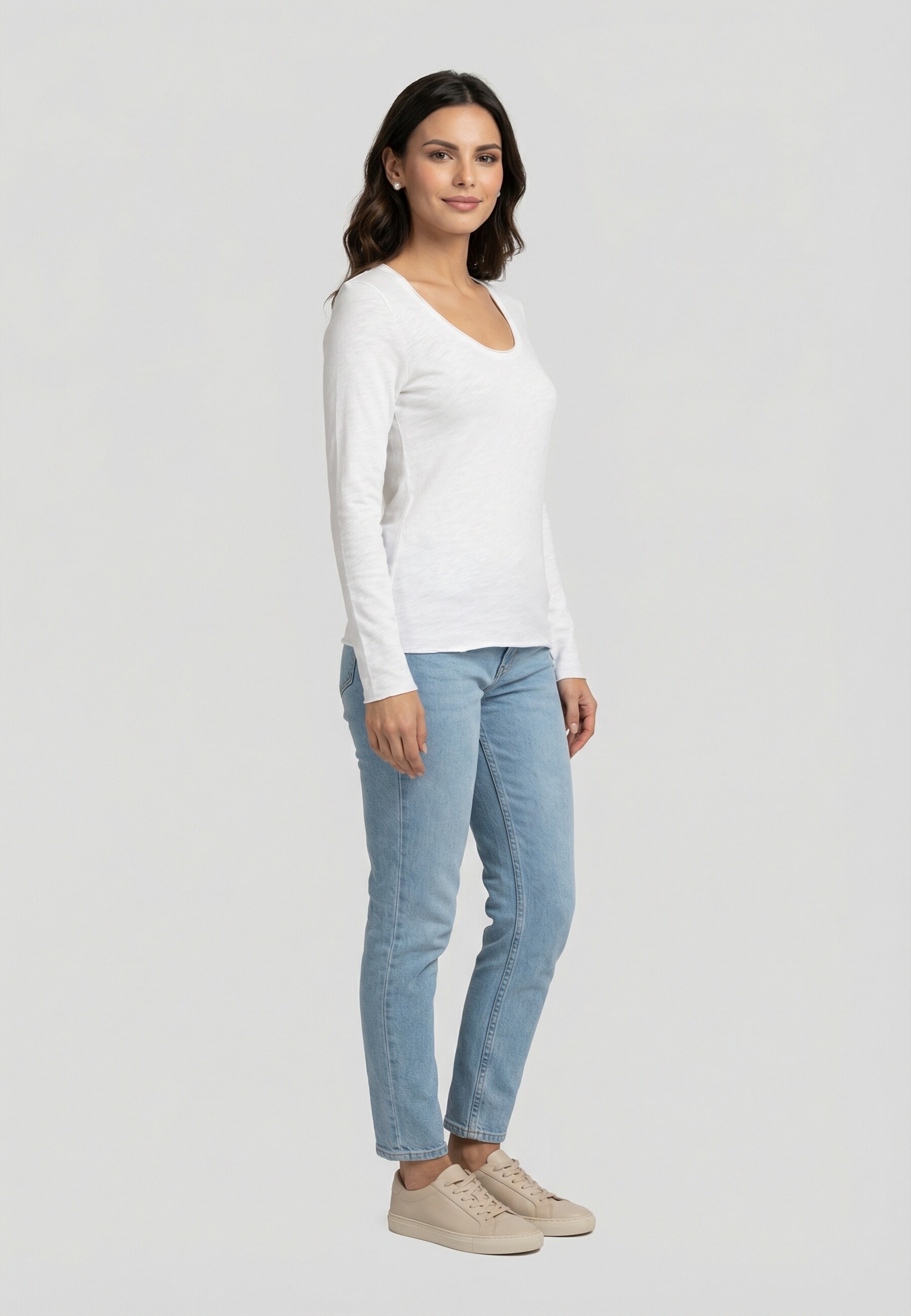 Le t-shirt manches longues col U pour femme de la ligne Sonoma est un indispensable du vestiaire. Confectionné dans un coton flammé doux, épais et texturé, il offre un confort enveloppant grâce à son intérieur gratté.