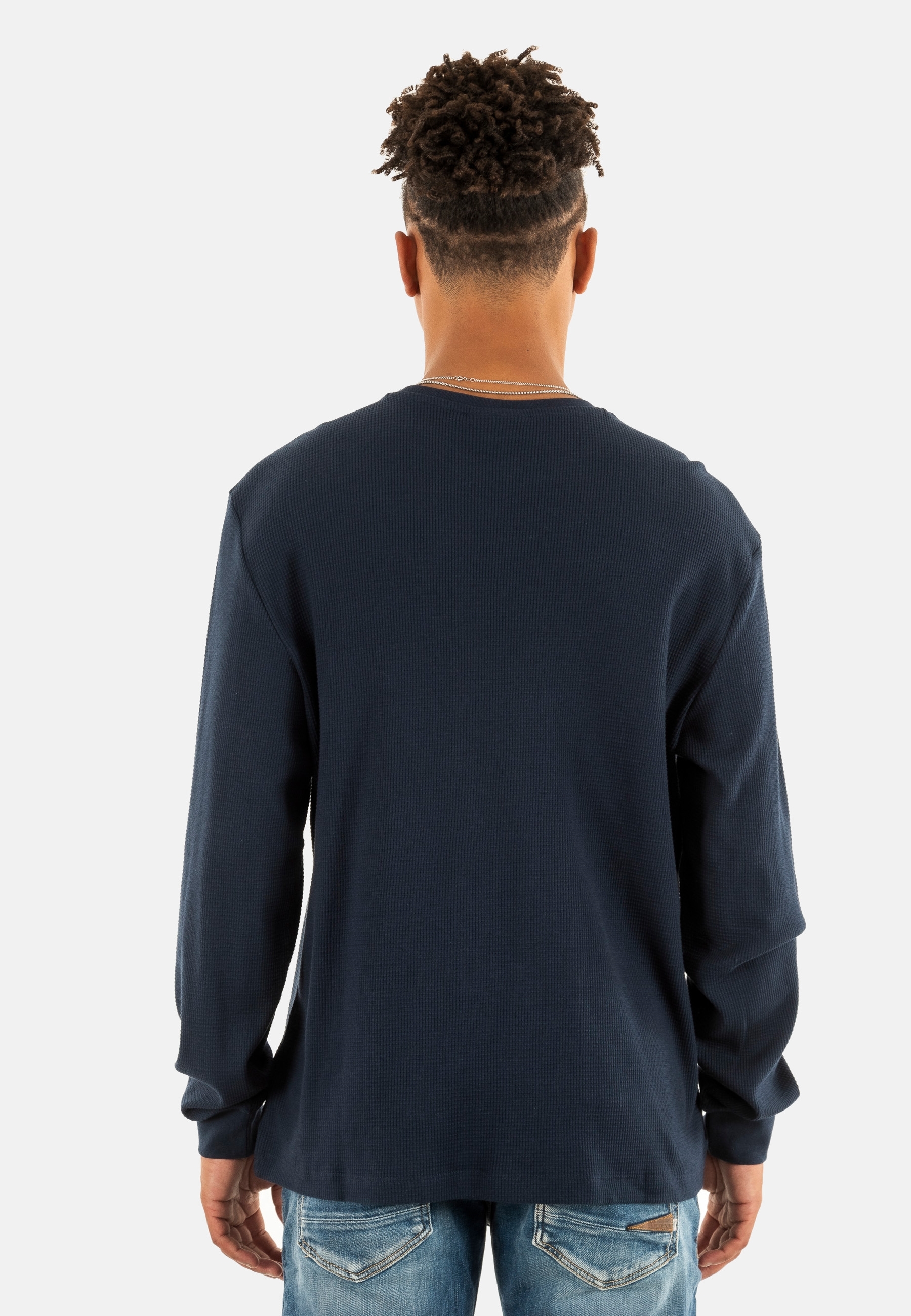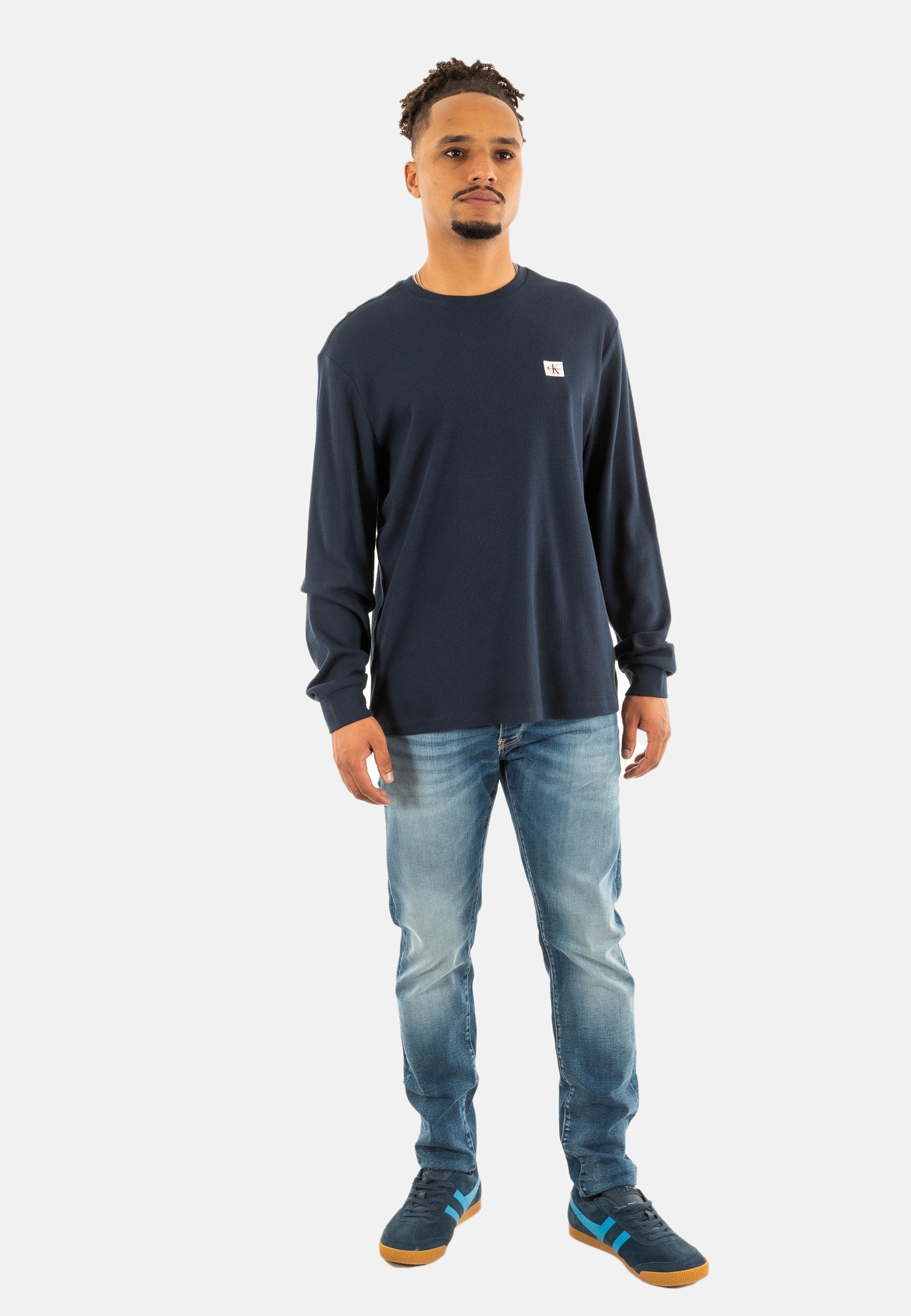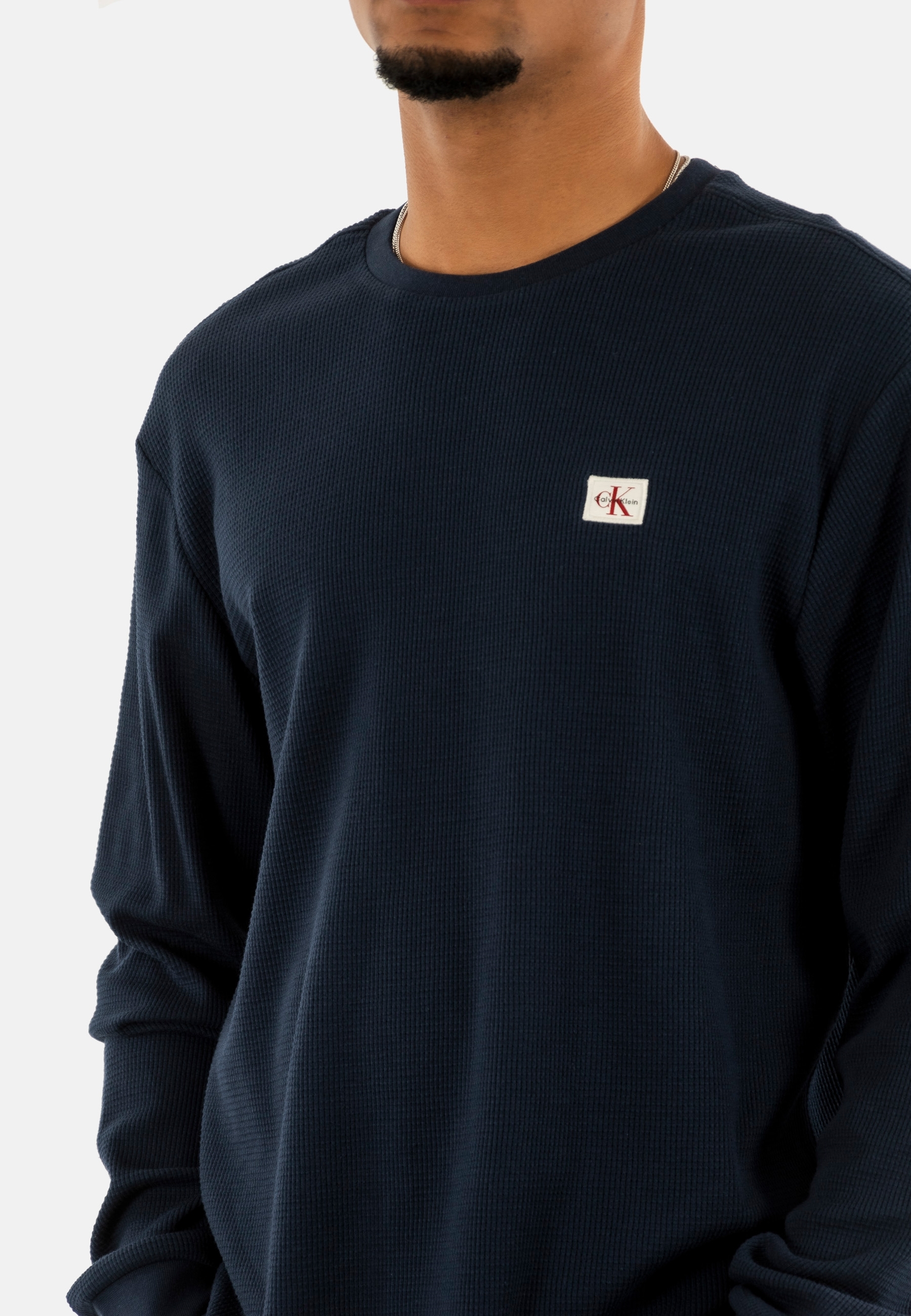 Tee shirt manches longues calvin klein jeans waffle badge crew cef dark sapphire