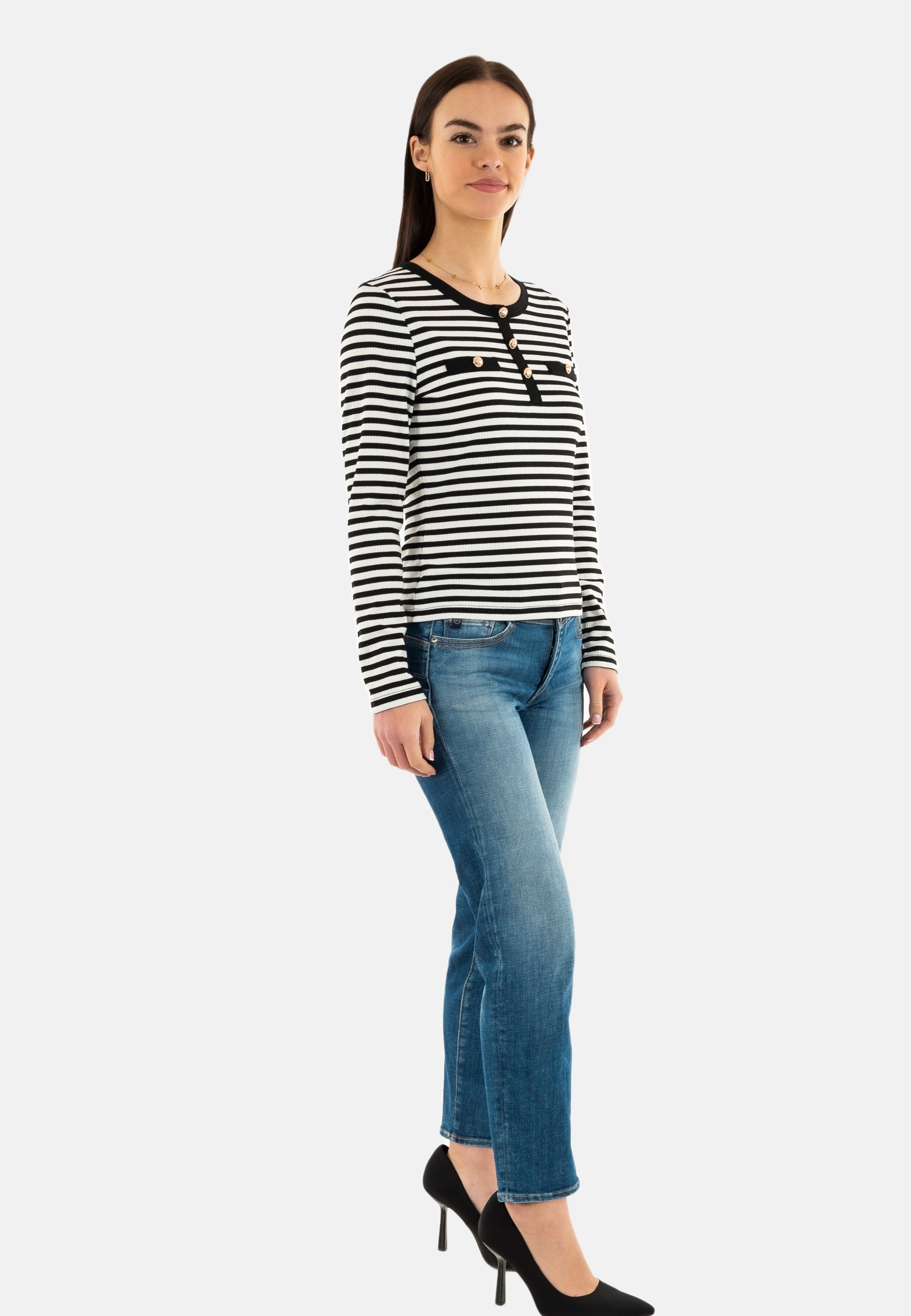 Tee shirt manches longues morgan 251-tscoop off white/noir