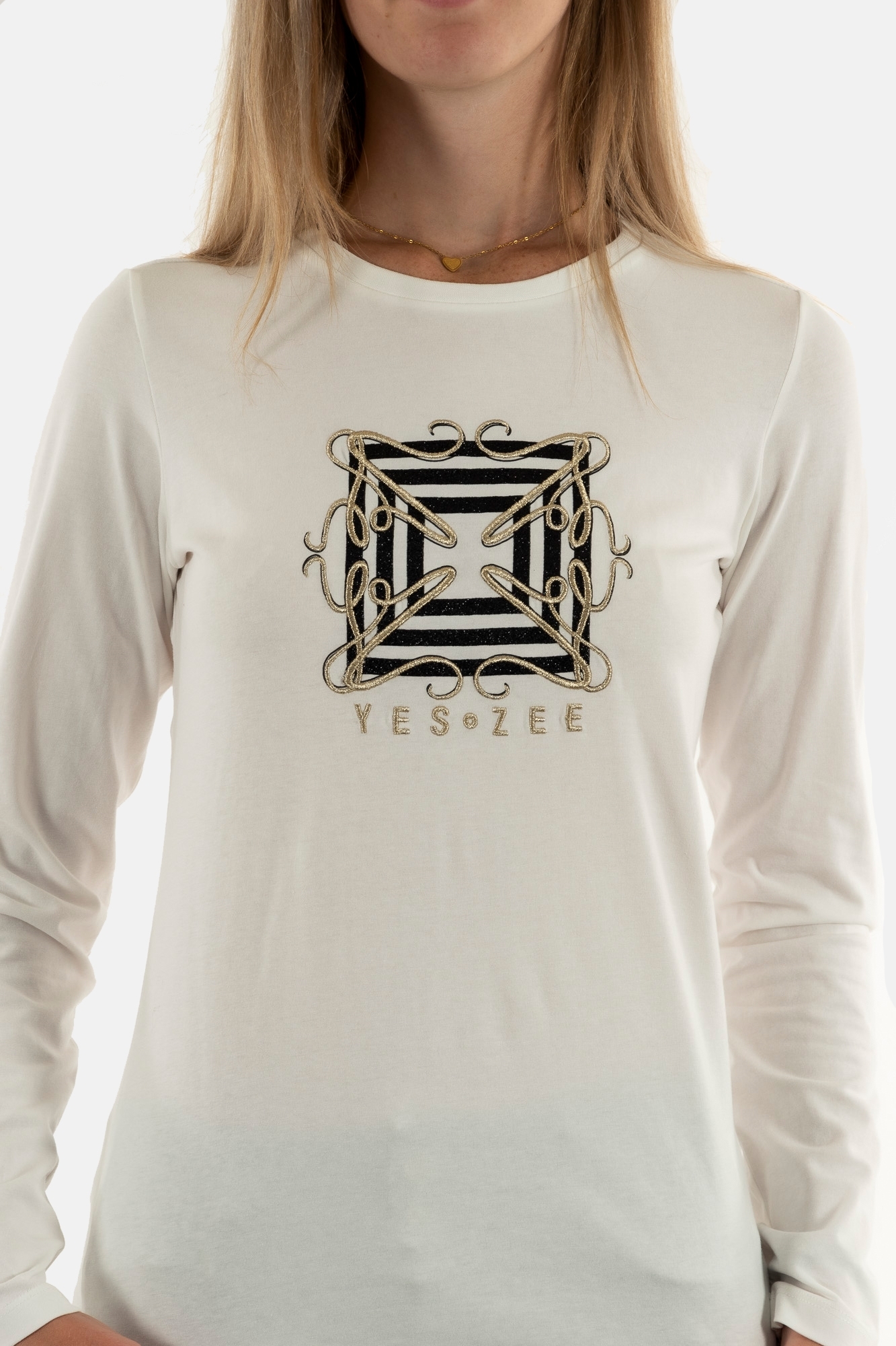Tee shirt manches longues yes zee t034 s702 0157 avorio