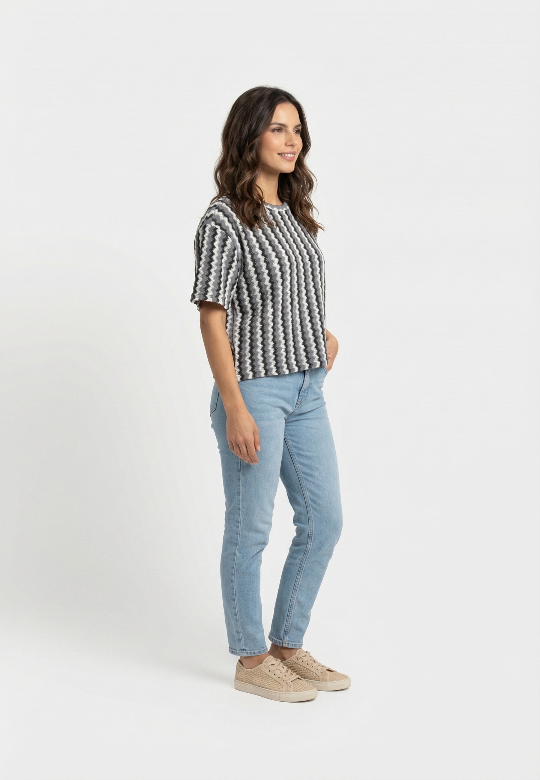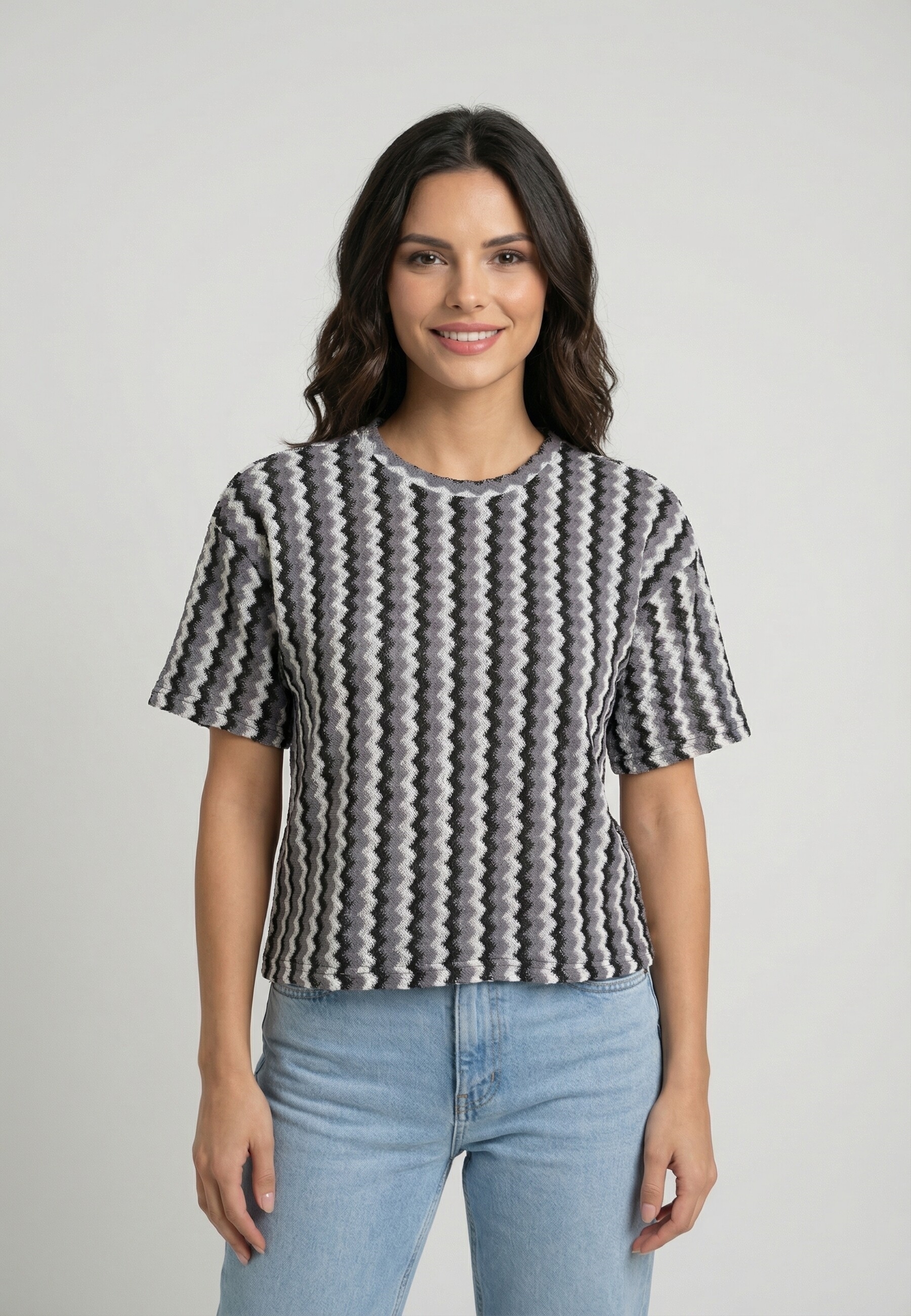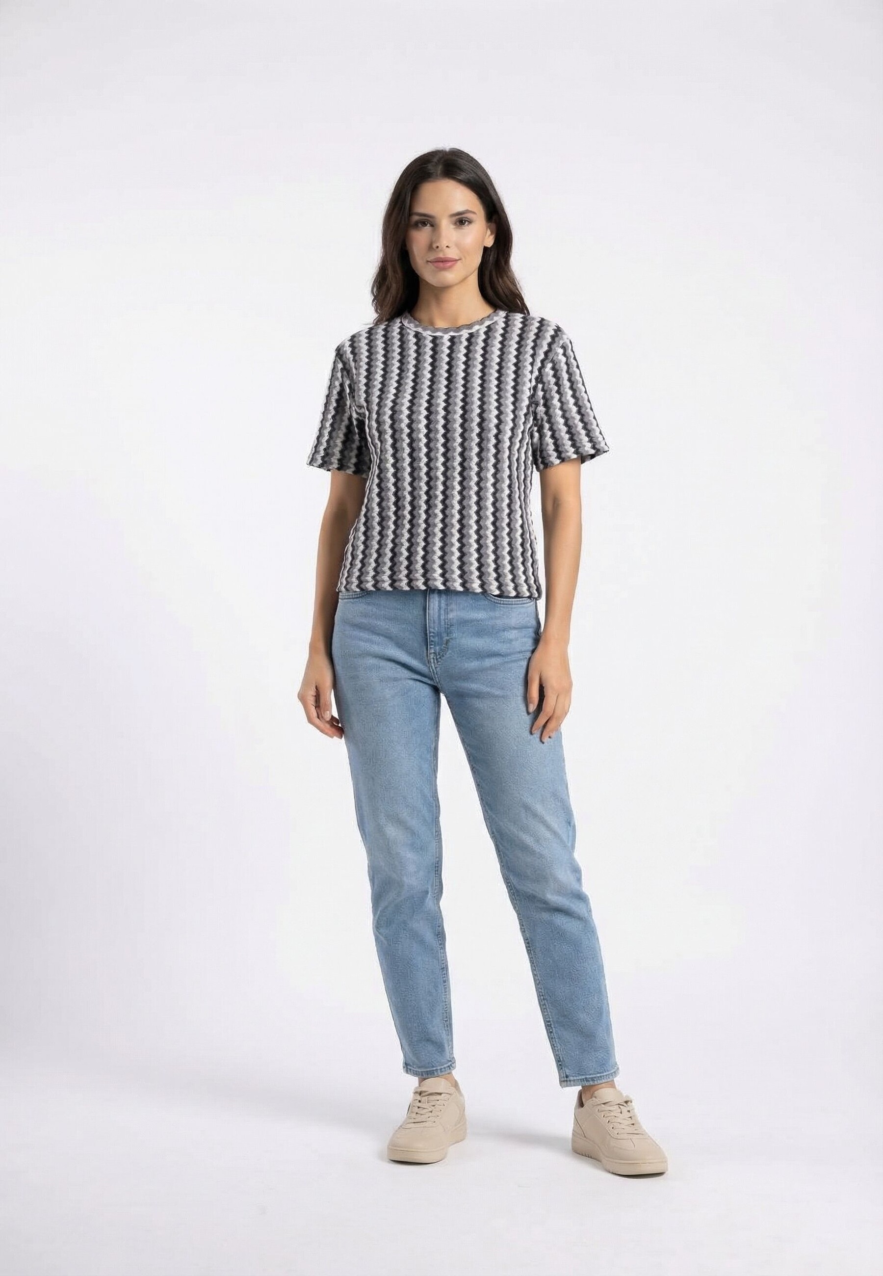 Tee shirt only bailey cloud dancer (zigzag) black + medium grey melang