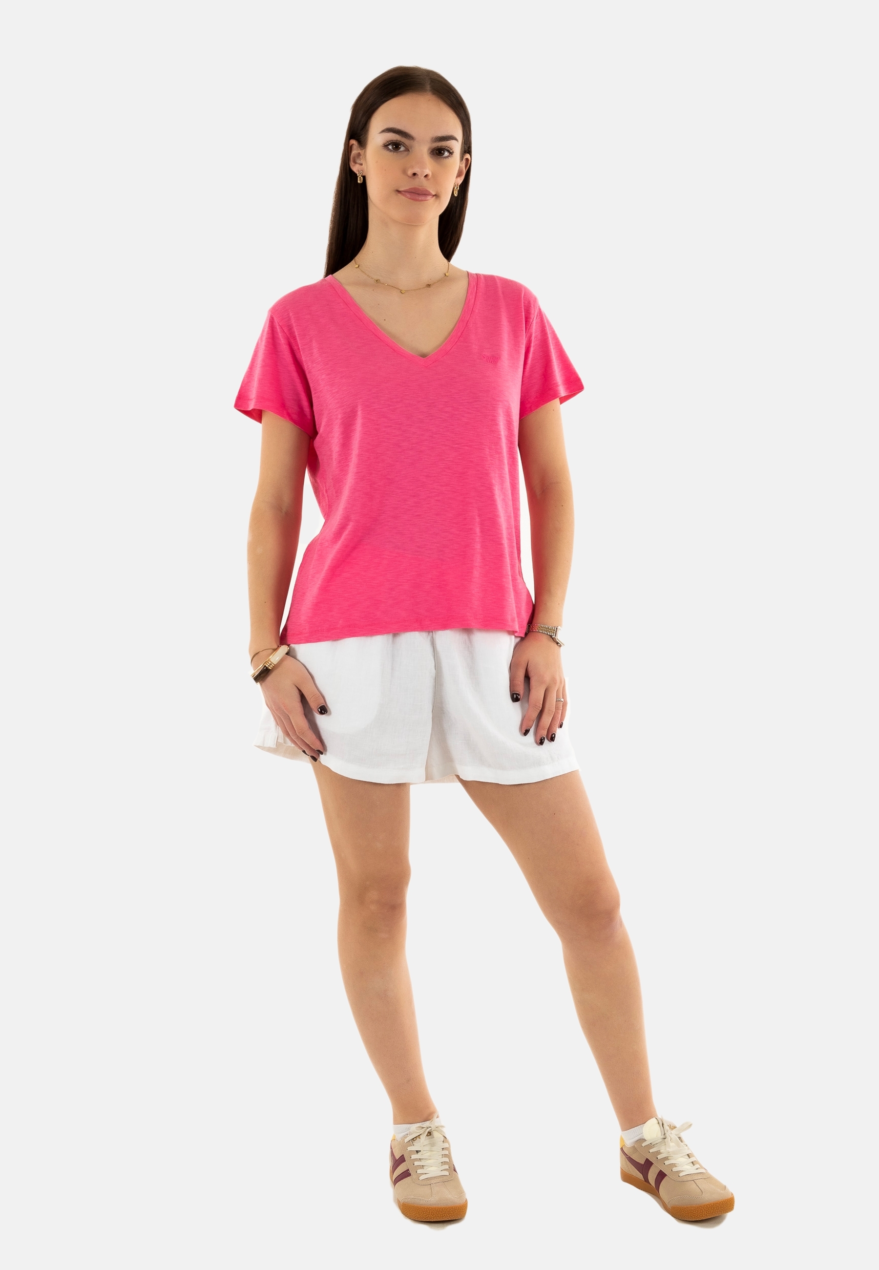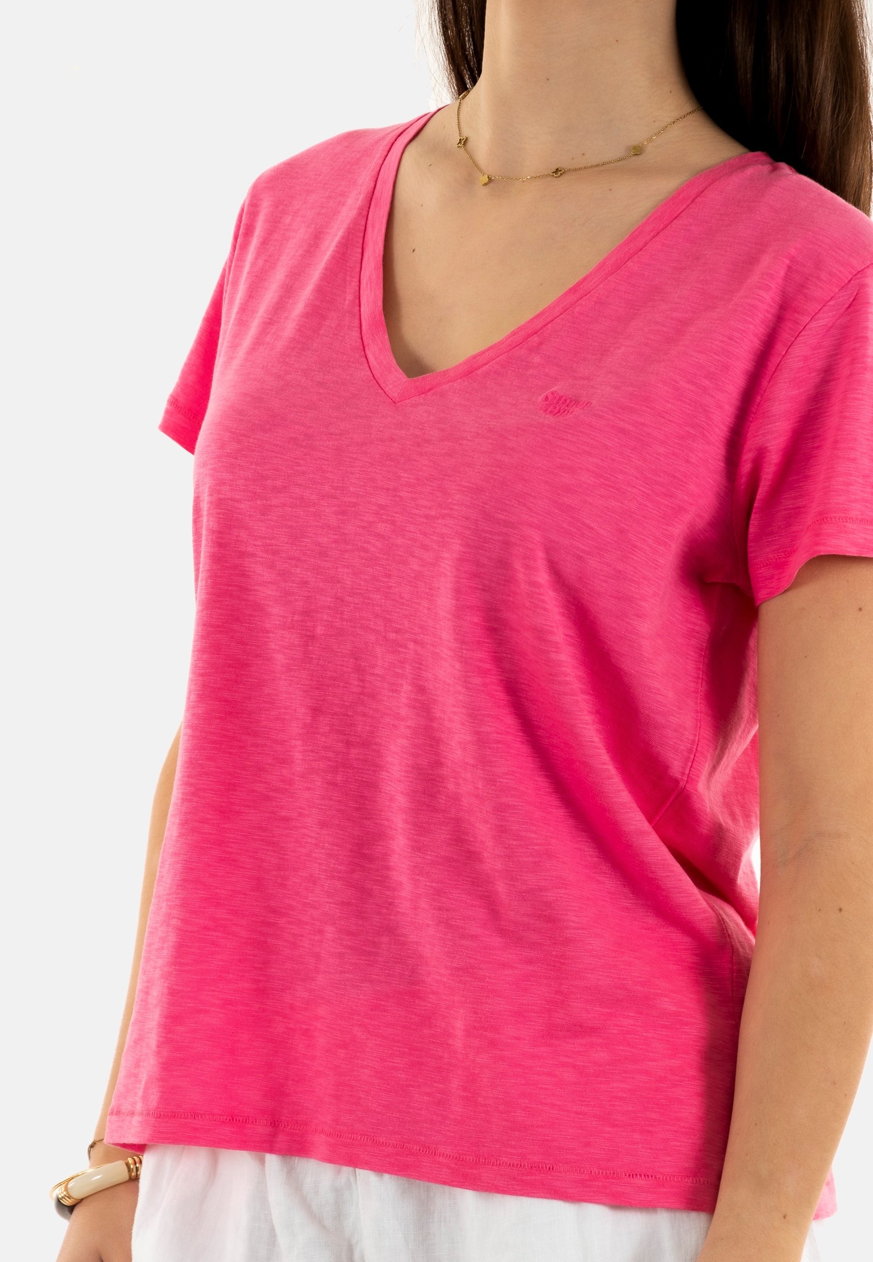 Tee shirt superdry studios slub emb vee 3lu azalea pink