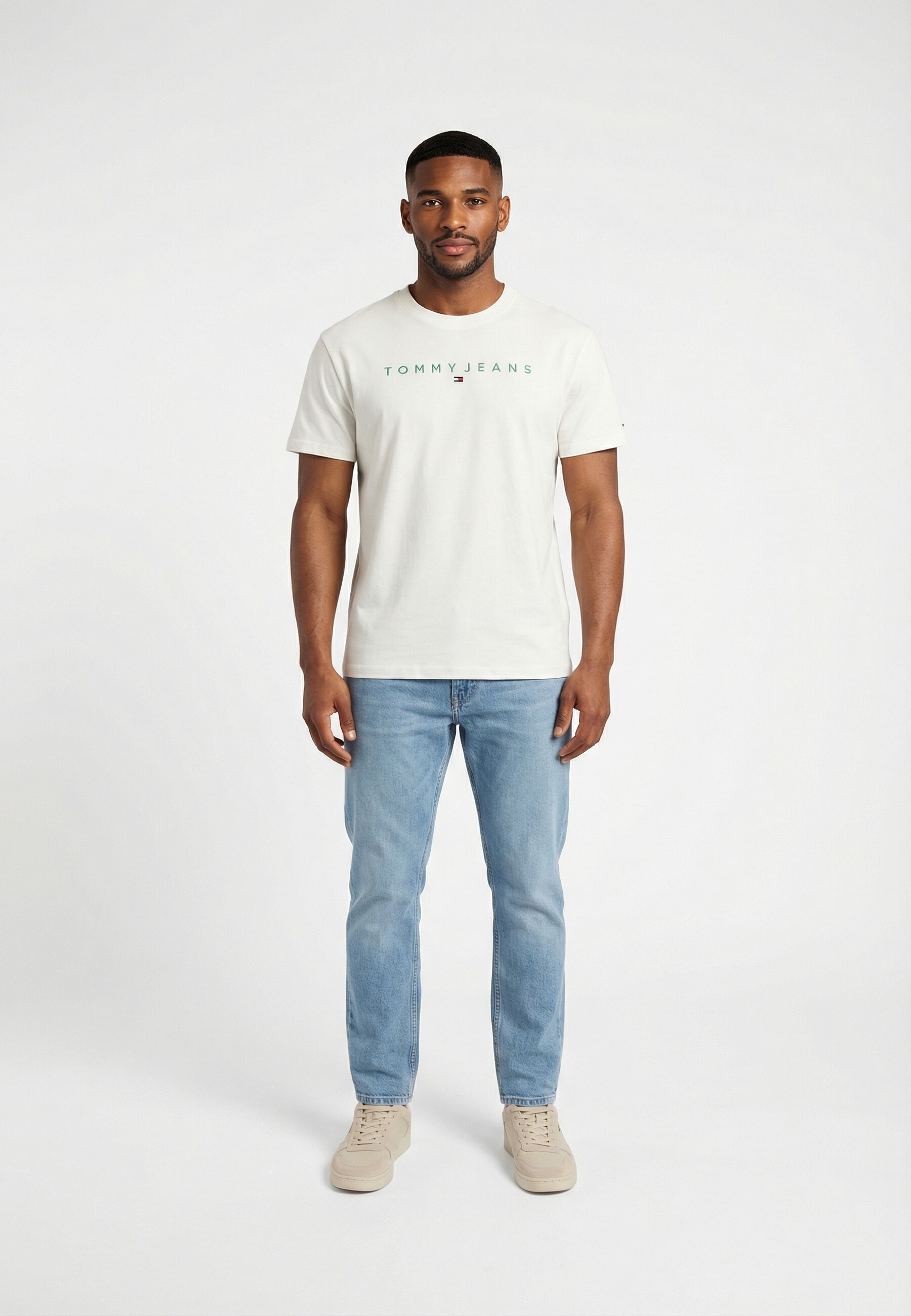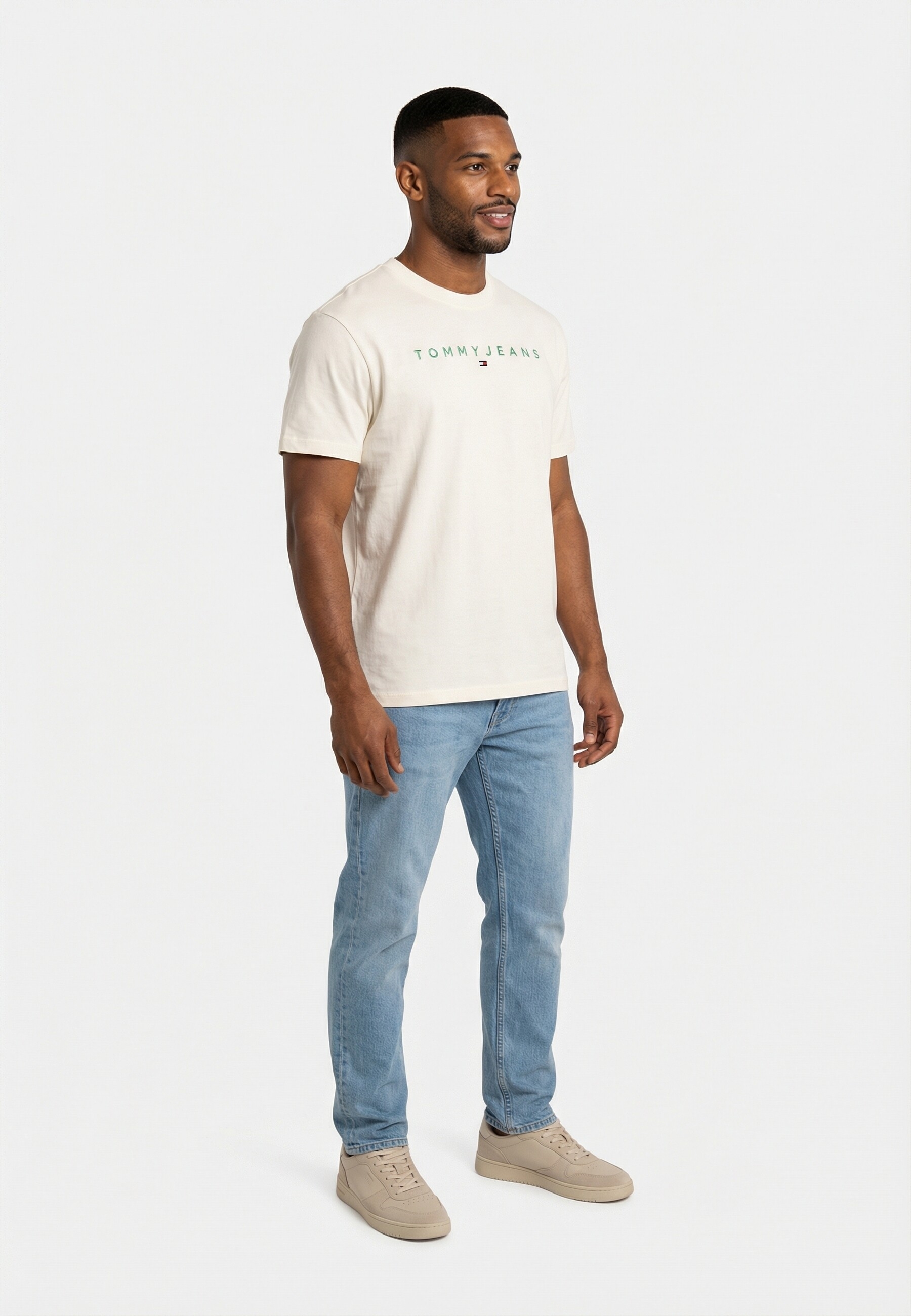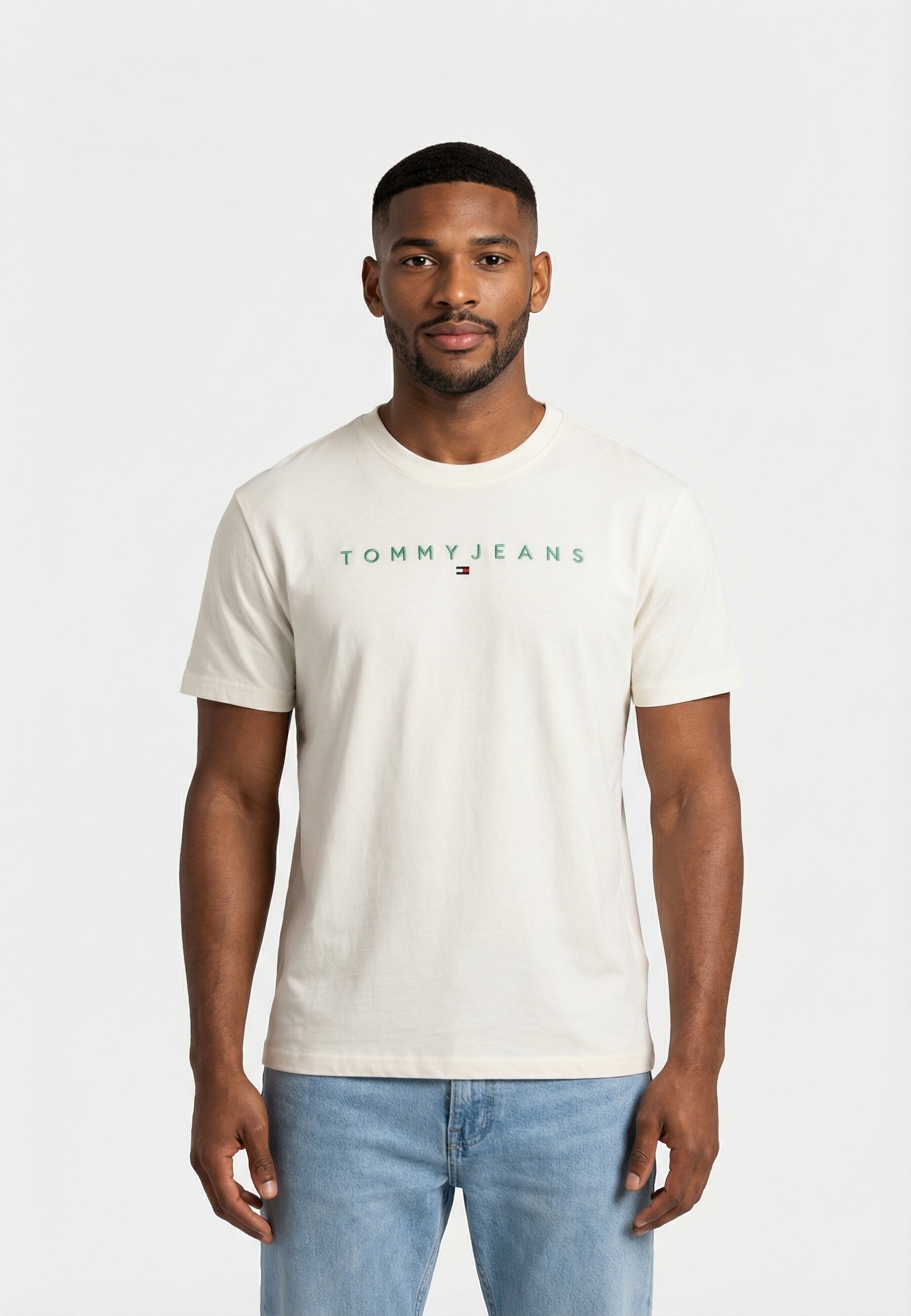 Tee shirt tommy jeans reg linear logo l5y ecru / bahama green