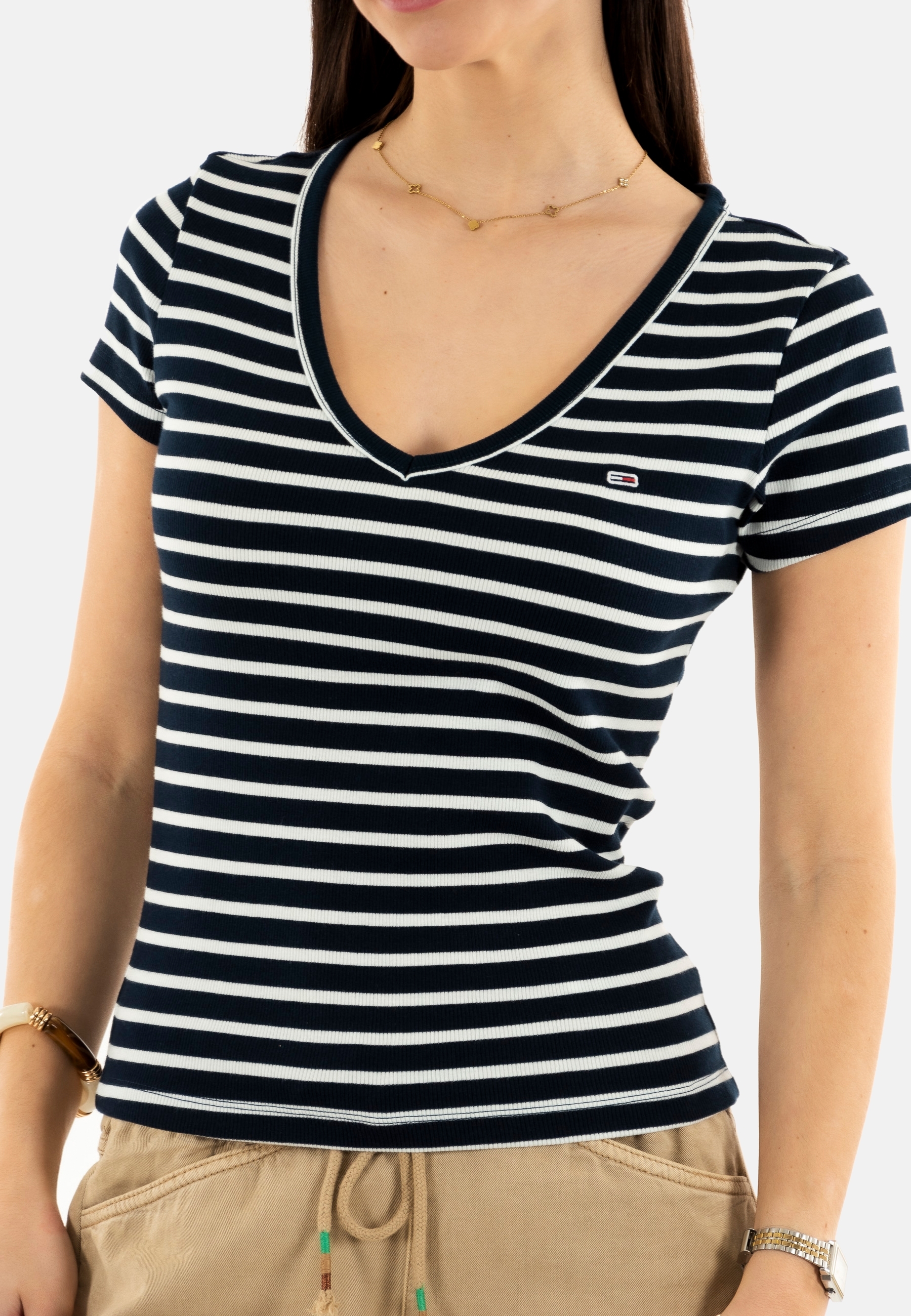 Tee shirt tommy jeans slim essential r 0a6 dark night navy / stripe